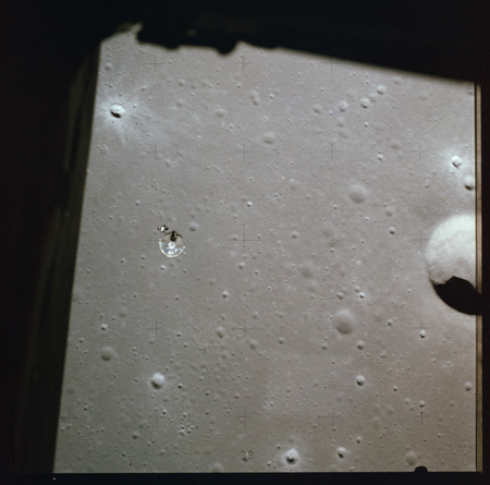 Landmark tracking by the Command Module of the landing site is an essential part of obtaining accurate guidance information needed by the Lunar Module. The delay in the undocking and separation maneuver has made tracking of the landing site impossible on this pass. Other tasks, such as the critical LM inspection and a platform alignment are more pressing. The tracking procedure will be performed on the next orbit.