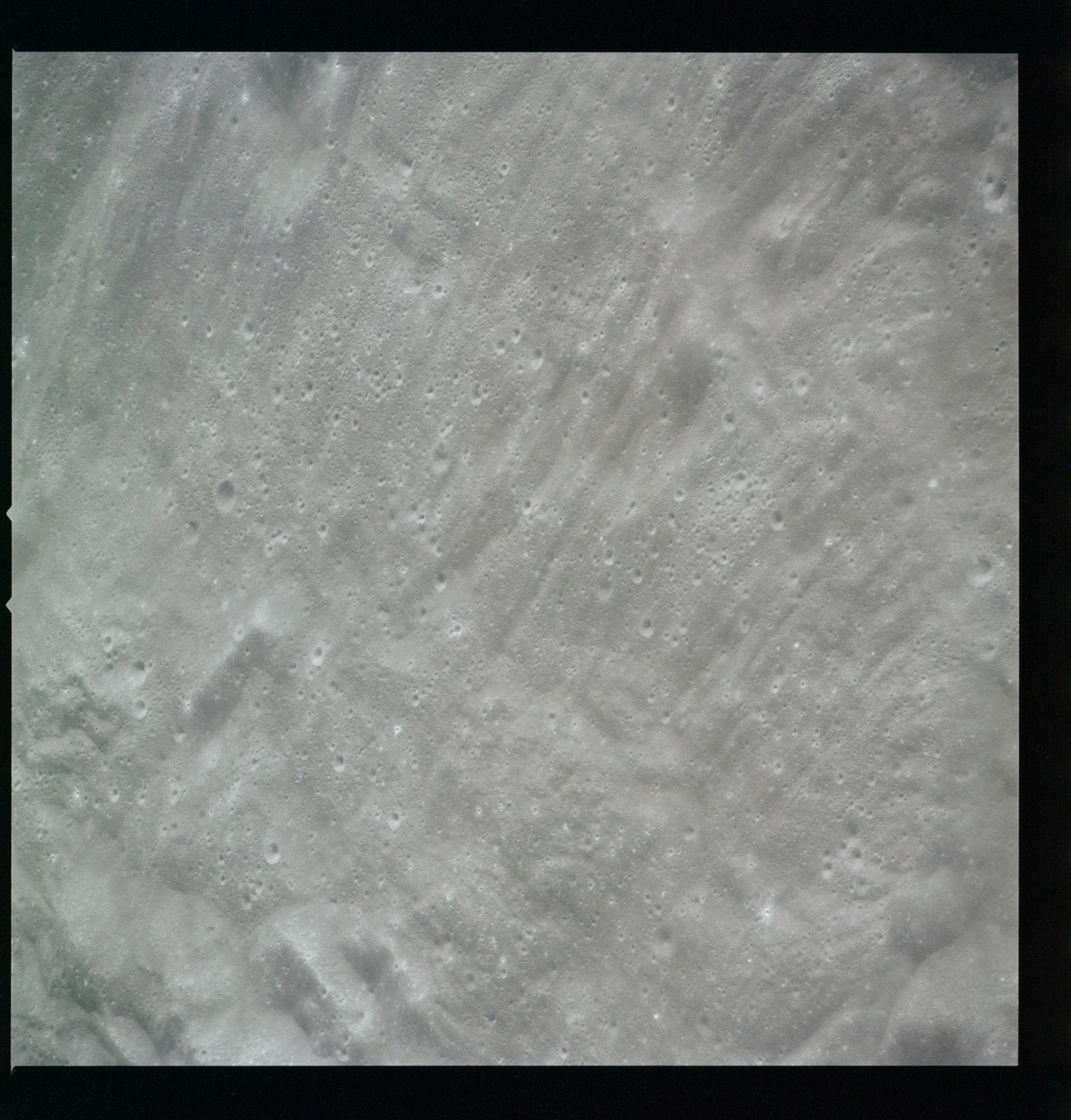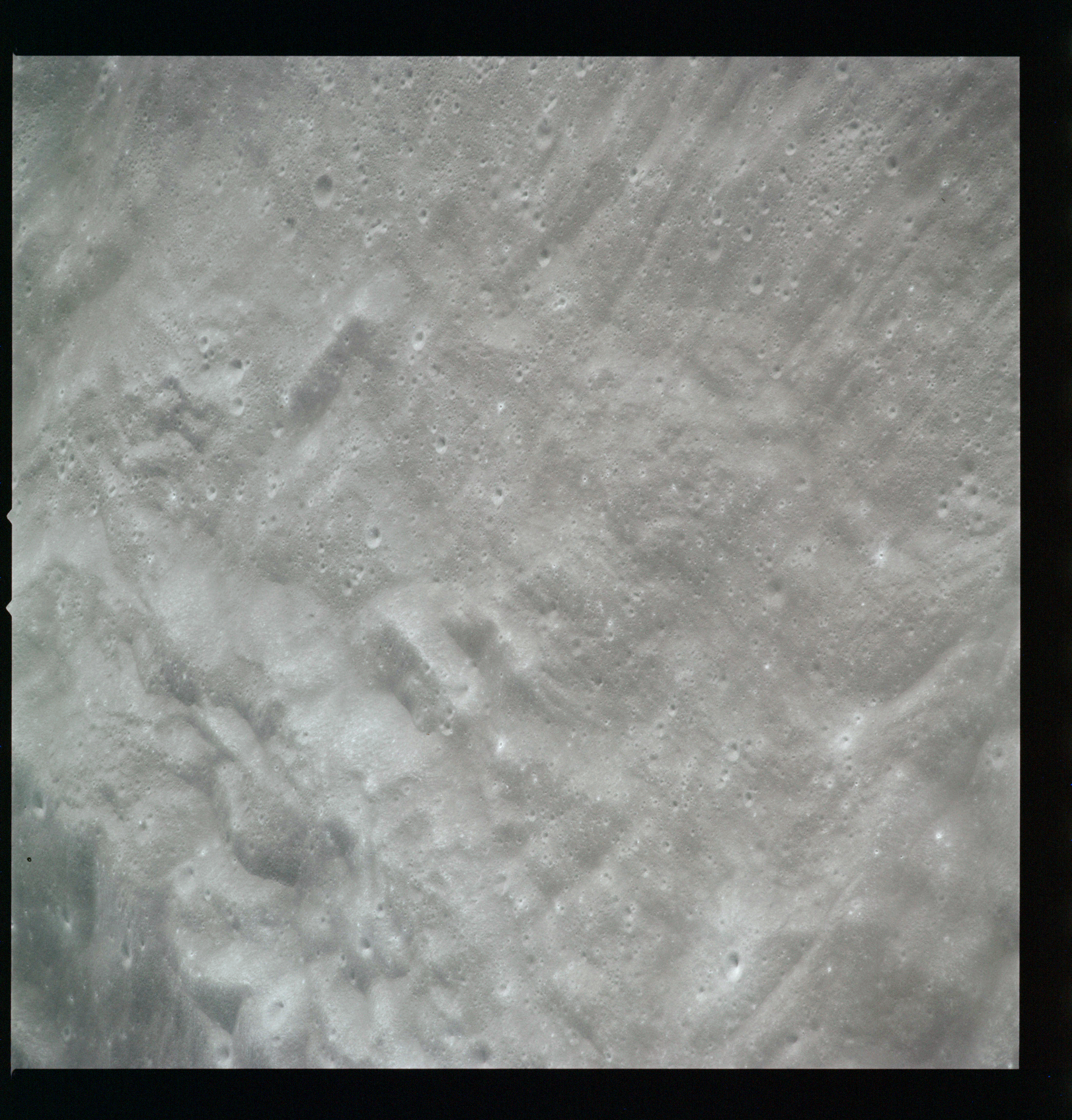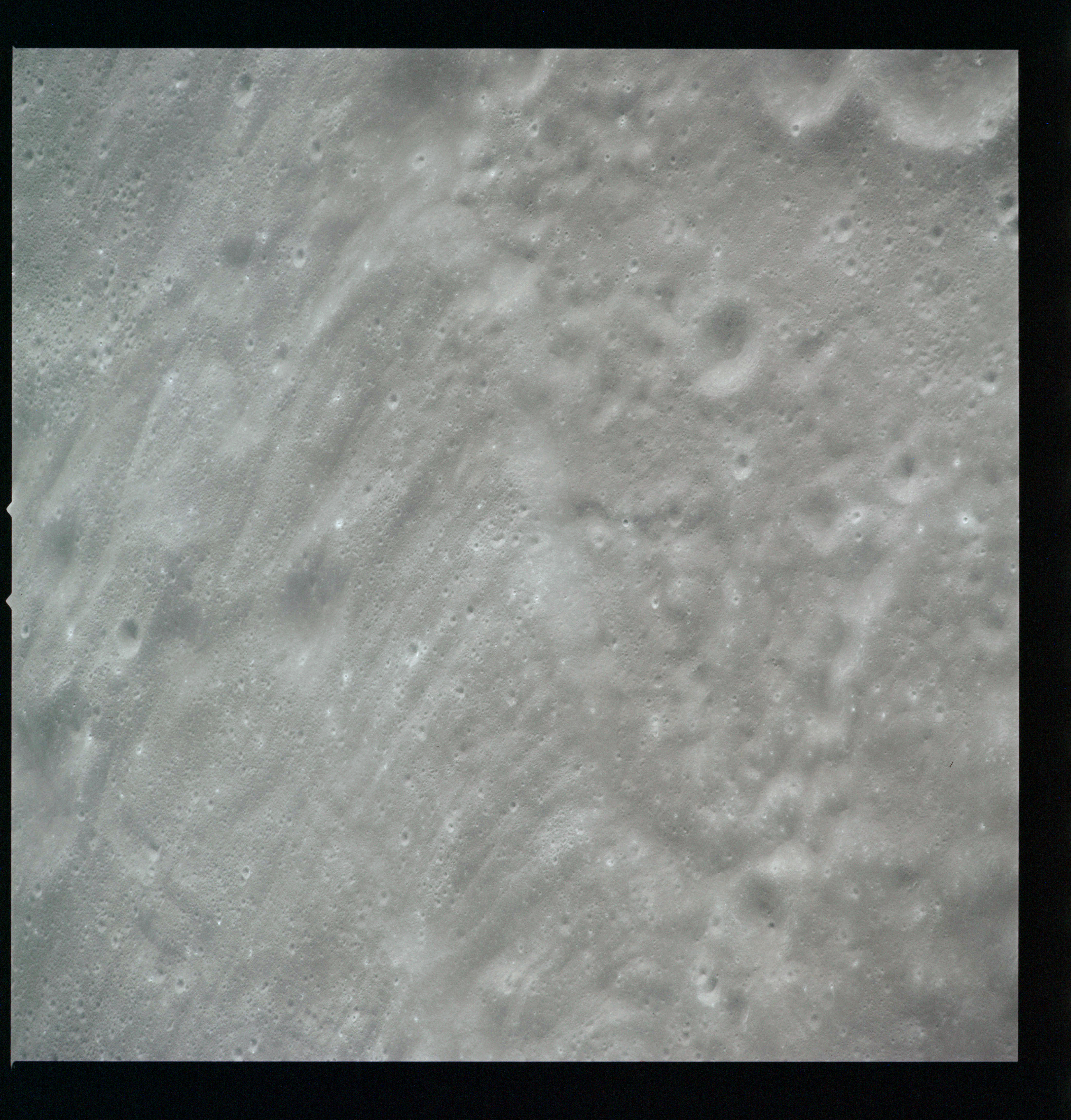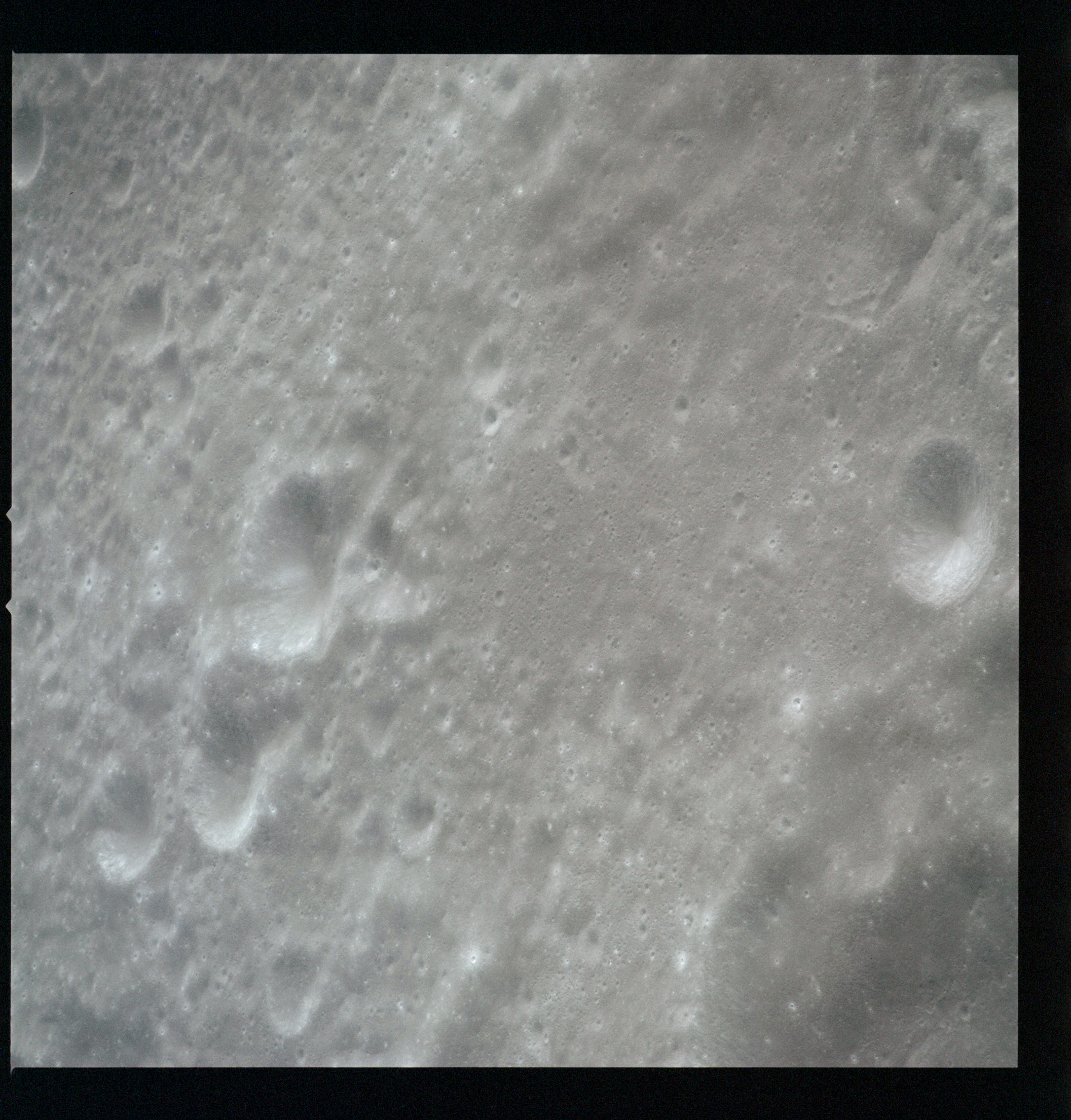 Compensation for the motion of the spacecraft is provided by the V over H sensor which detects the rate at which surface detail moves across the camera's field of view, generating a signal that controls the compensating movement of the film. This allows the camera to achieve a resolution of better than 2 metres from the nominal orbital height of 110 km. On this, its first flight to the Moon, this sensor will not operate properly, degrading the quality of the imaging by introducing a small degree of smearing. The camera is used during 11 orbits and 1,529 usable photographs are obtained on the 2-km roll of Kodak EK-3414 film contained in a cassette of 25-kilograms mass which Al will retrieve later in the mission. Journal Contributor Brian Lawrence has more to add on the camera's pedigree.