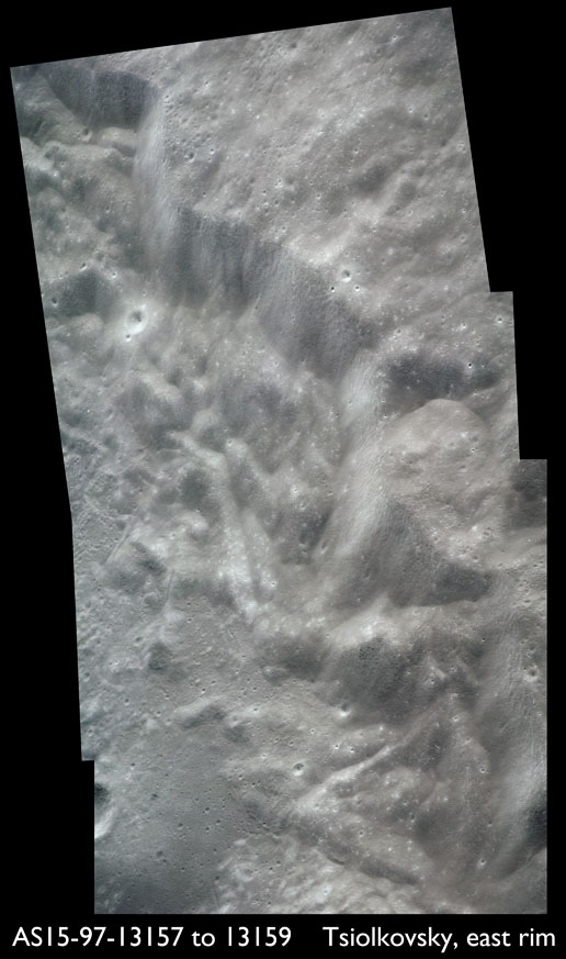 13157 to 13159 composited - Tsiolkovsky's eastern rim - Source images by NASA/Johnson Space Center.