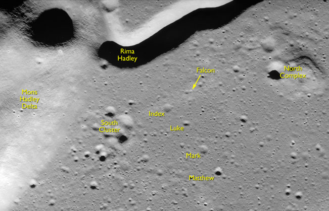 On Al's first pass over Falcon, now sitting on the plain between Hadley Delta and Mount Hadley, he will attempt to pinpoint its position. Mission Control are going to read up timings to aid him in tracking the LM as he manoeuvres Endeavour in P24.