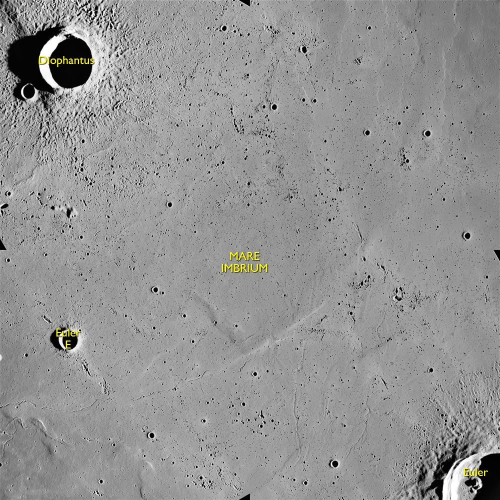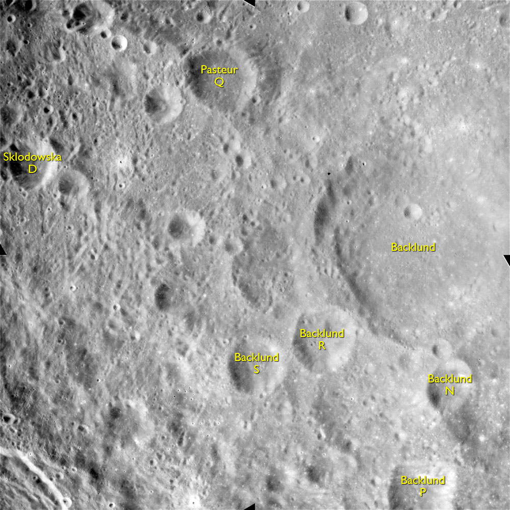Alden is about 600 km west of Tsiolkovsky and just beyond the Moon's limb.