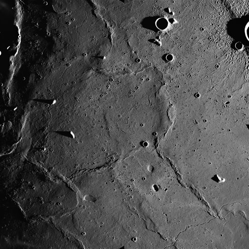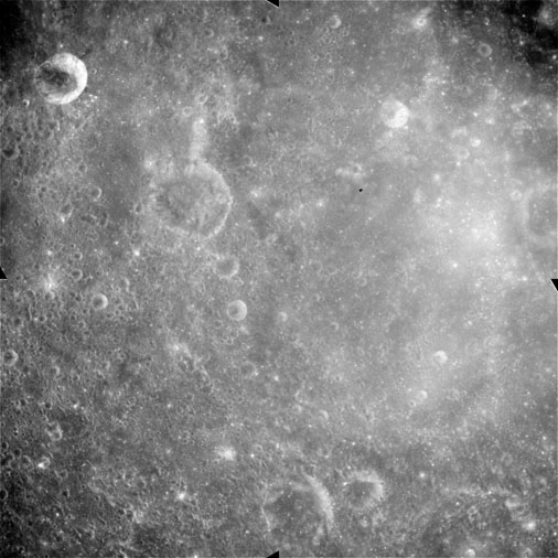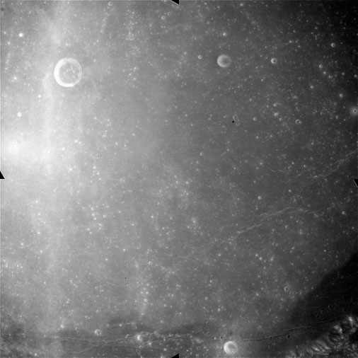 Al's first task is to flip the CSM around from flying with the SPS engine facing forward, to flying with the apex of the Command Module facing forward. As always with these turnaround maneuvers in lunar orbit, he has to roll the CSM clockwise by 40° first. This avoids the computer taking the spacecraft's attitude through one which would cause gimbal lock. With the SIM bay restored to looking down, he can begin his breakfast. Then, as Endeavour approaches the sunset terminator, an hour-long period of photography by the Mapping Camera begins, which will last until it reaches the sunrise terminator over the western side of Mare Imbrium. During that pass, the Metric section of the camera will take 148 images, AS15-M-1704 to 1851. The start time of the photography was read up at 162:04:41 as being 162:59:30.