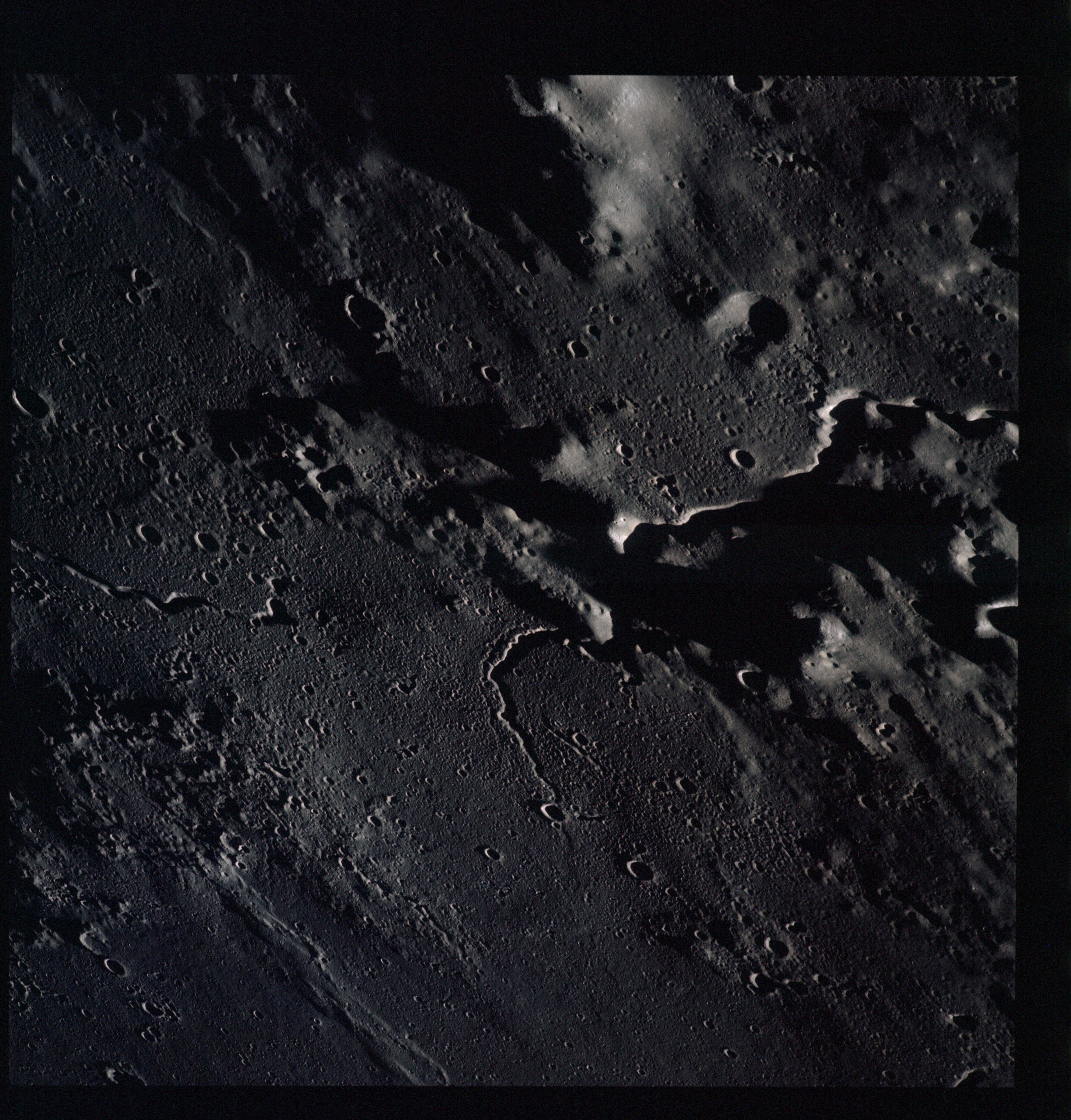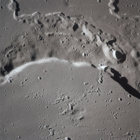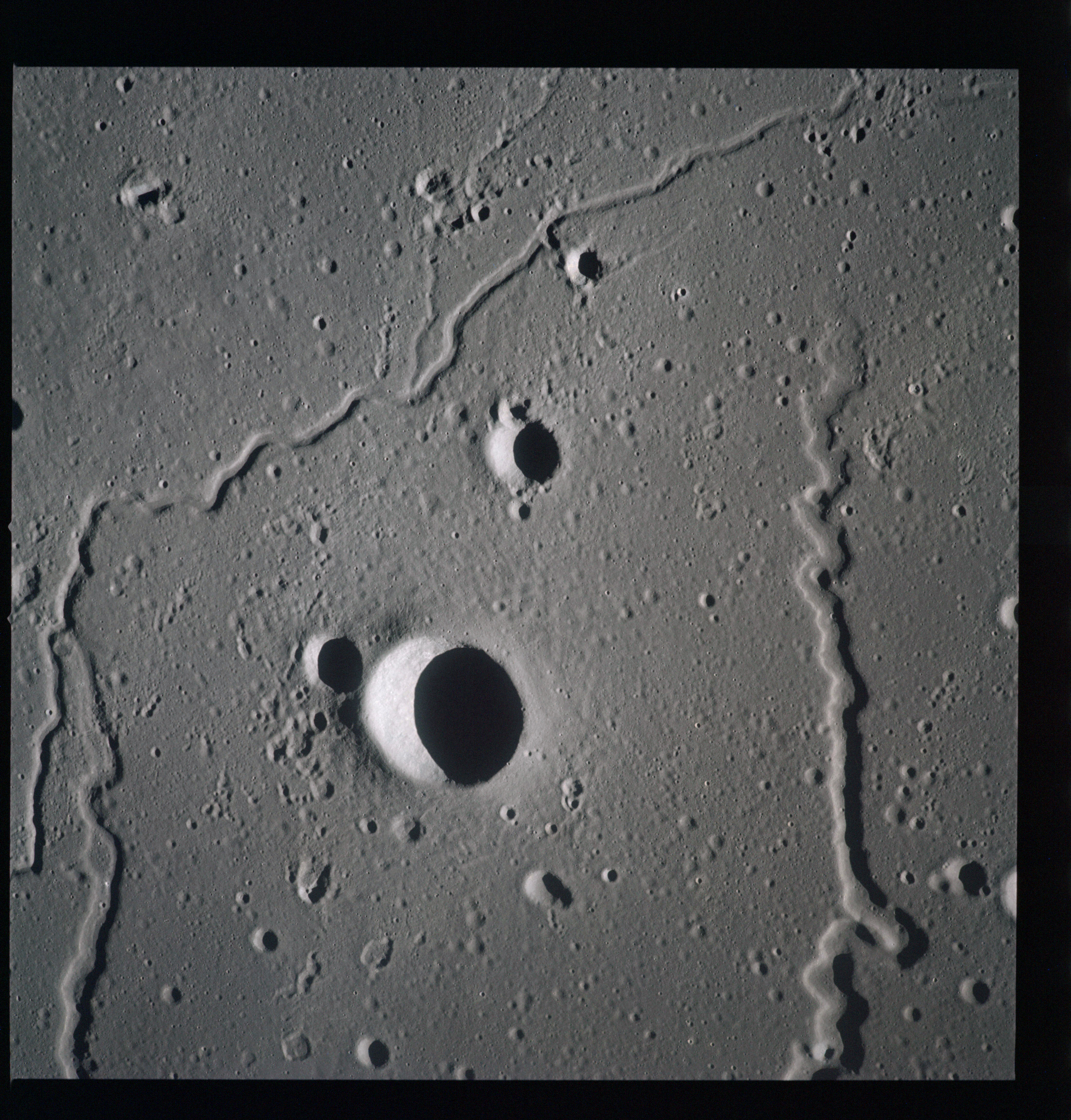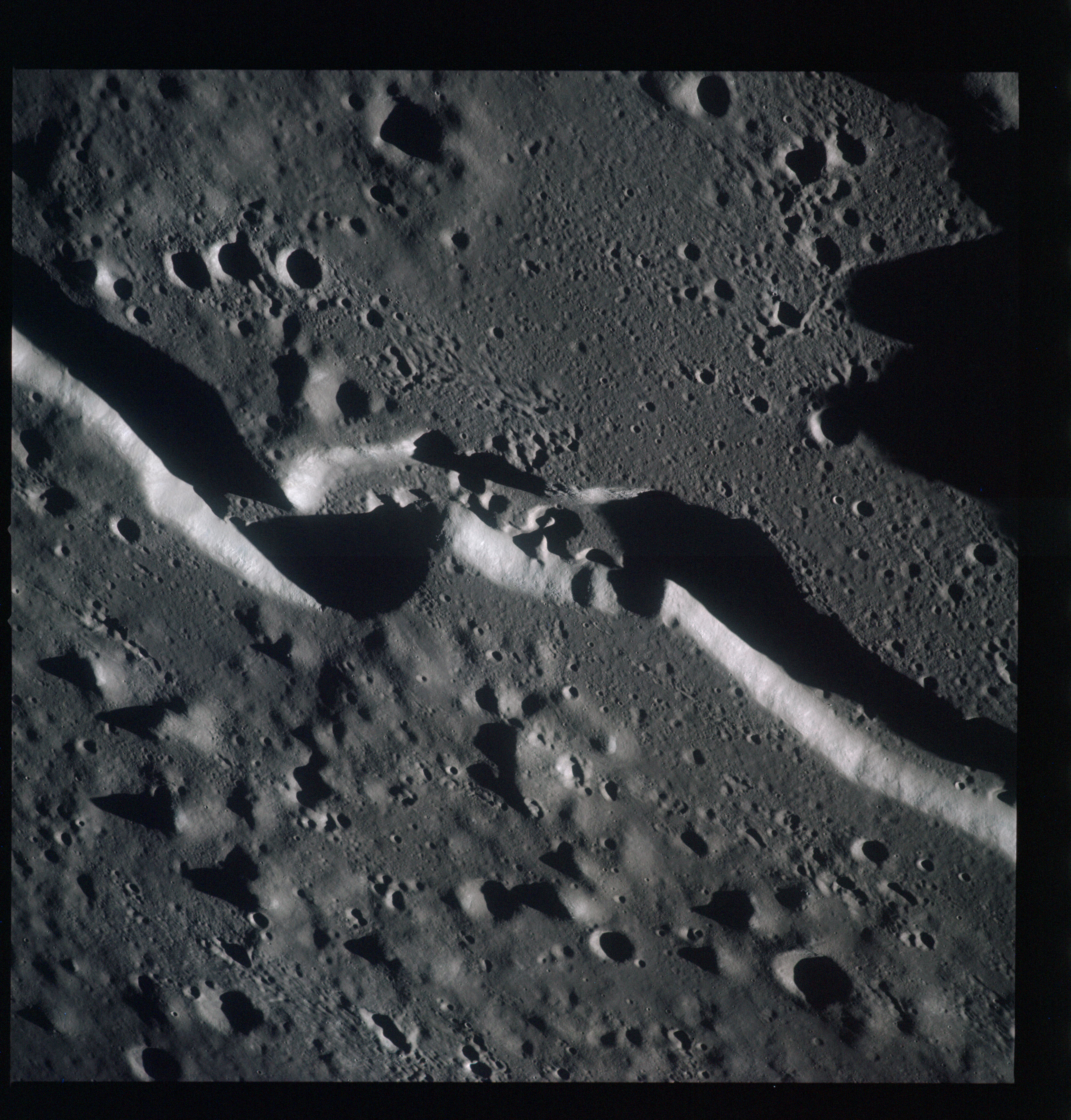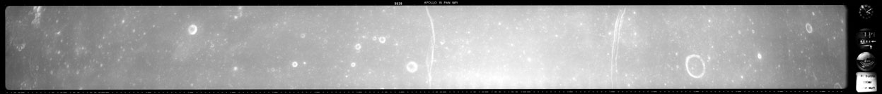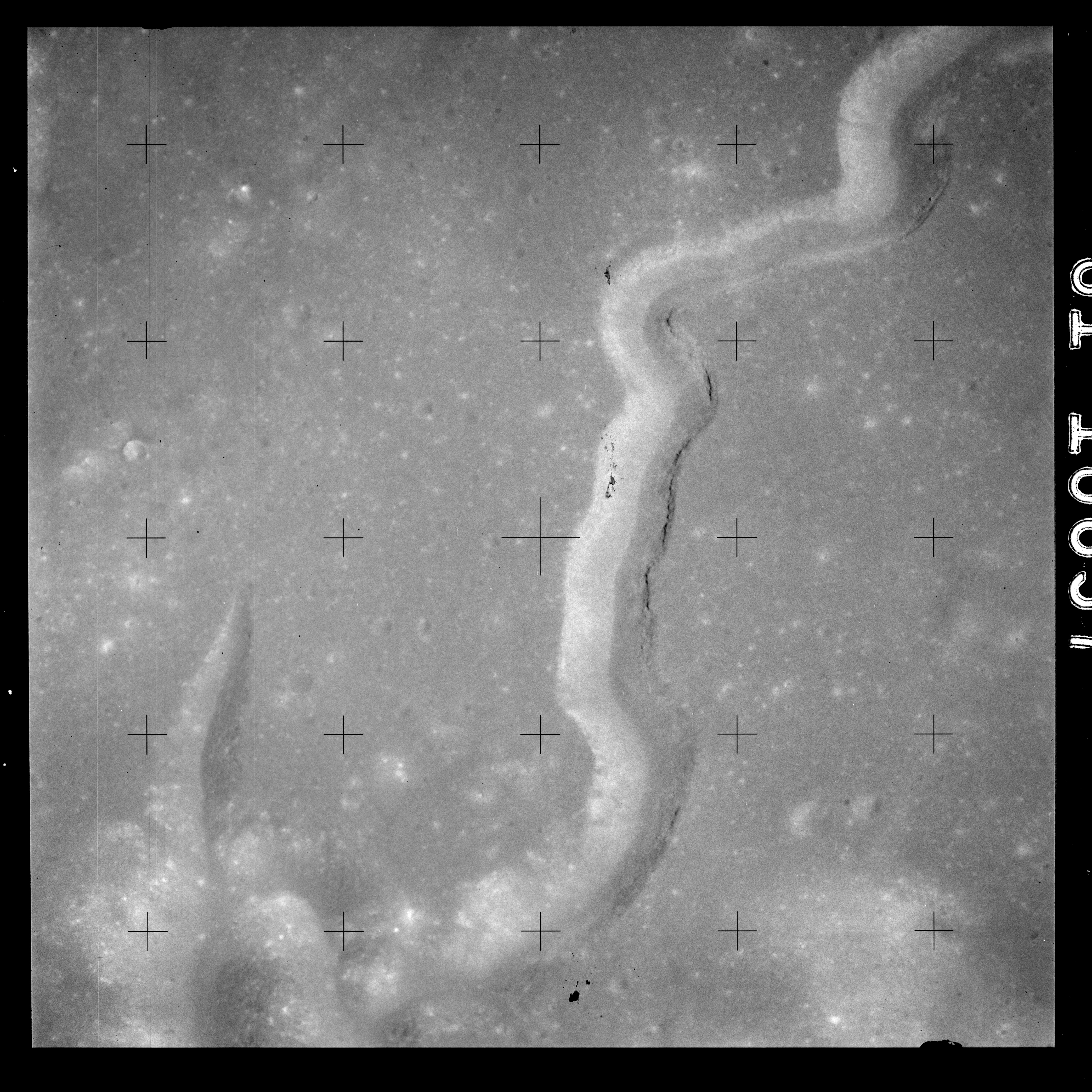 A wider context of these features is shown in one of the frames, AS15-M-2195, taken by the Mapping Camera on the spacecraft's next orbit.