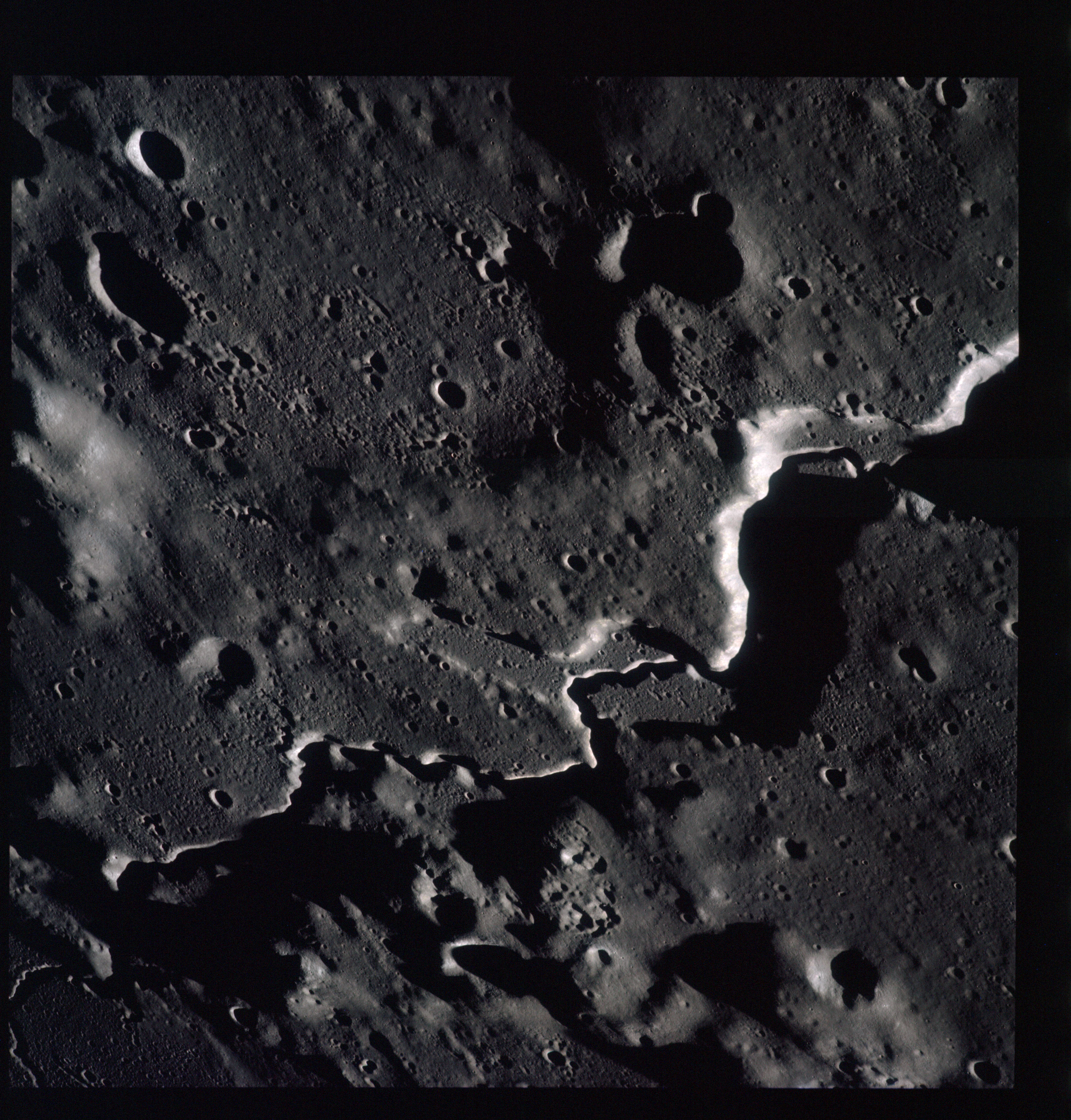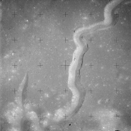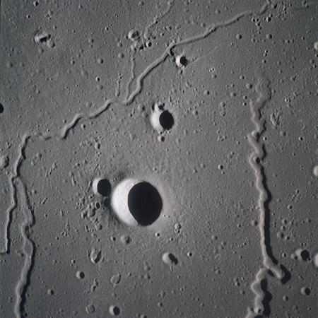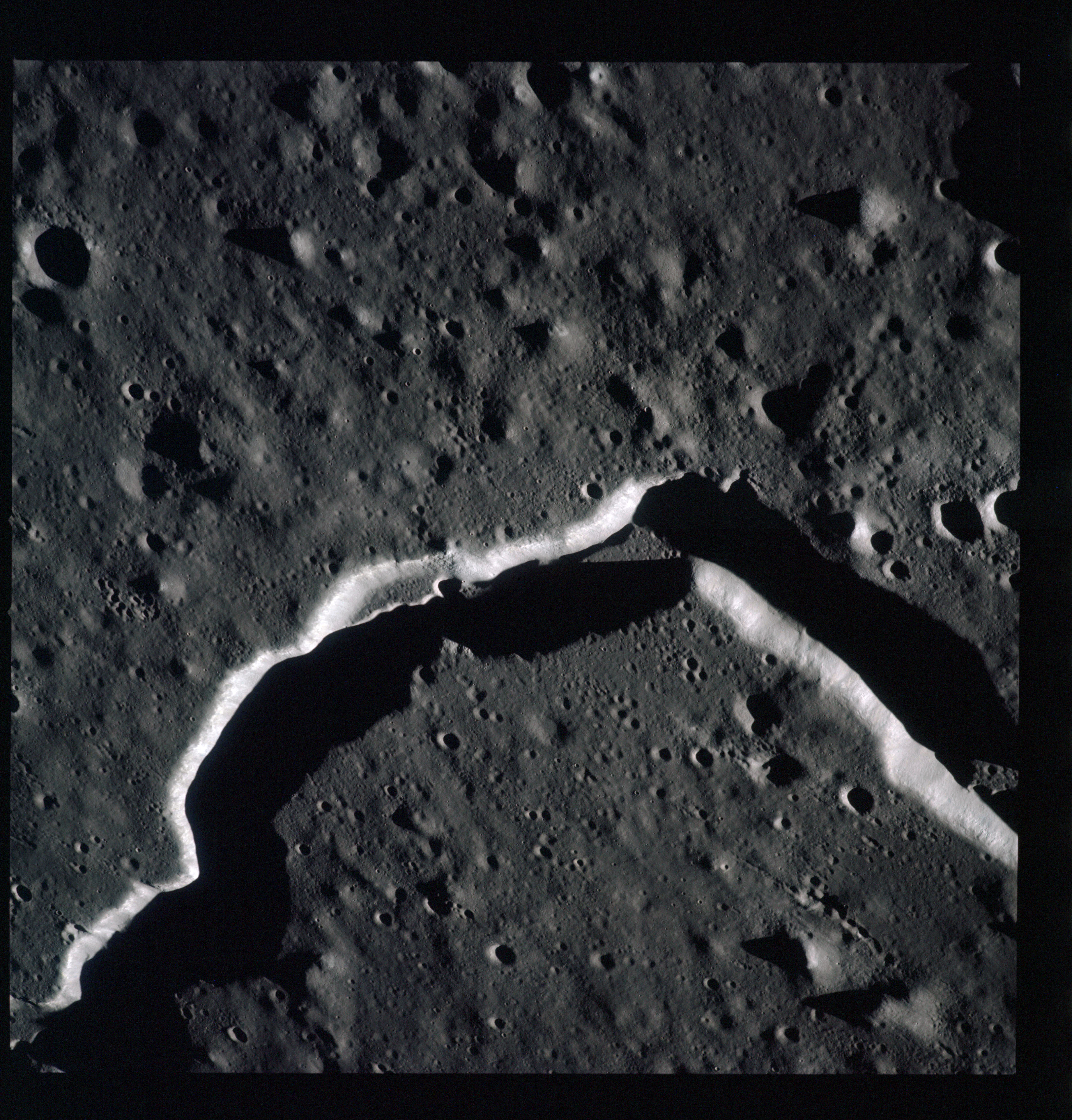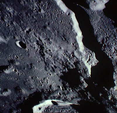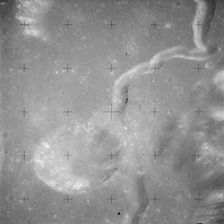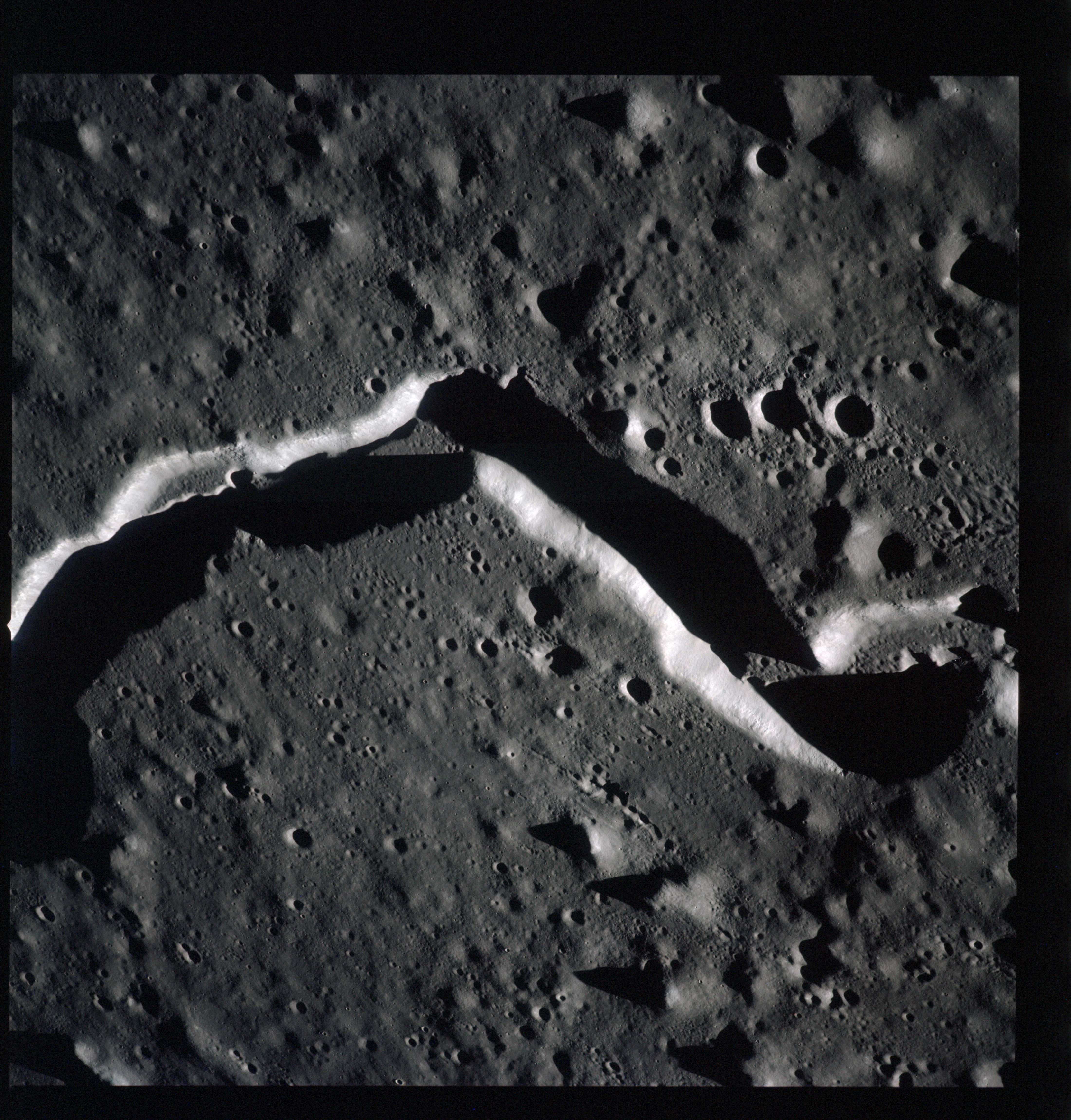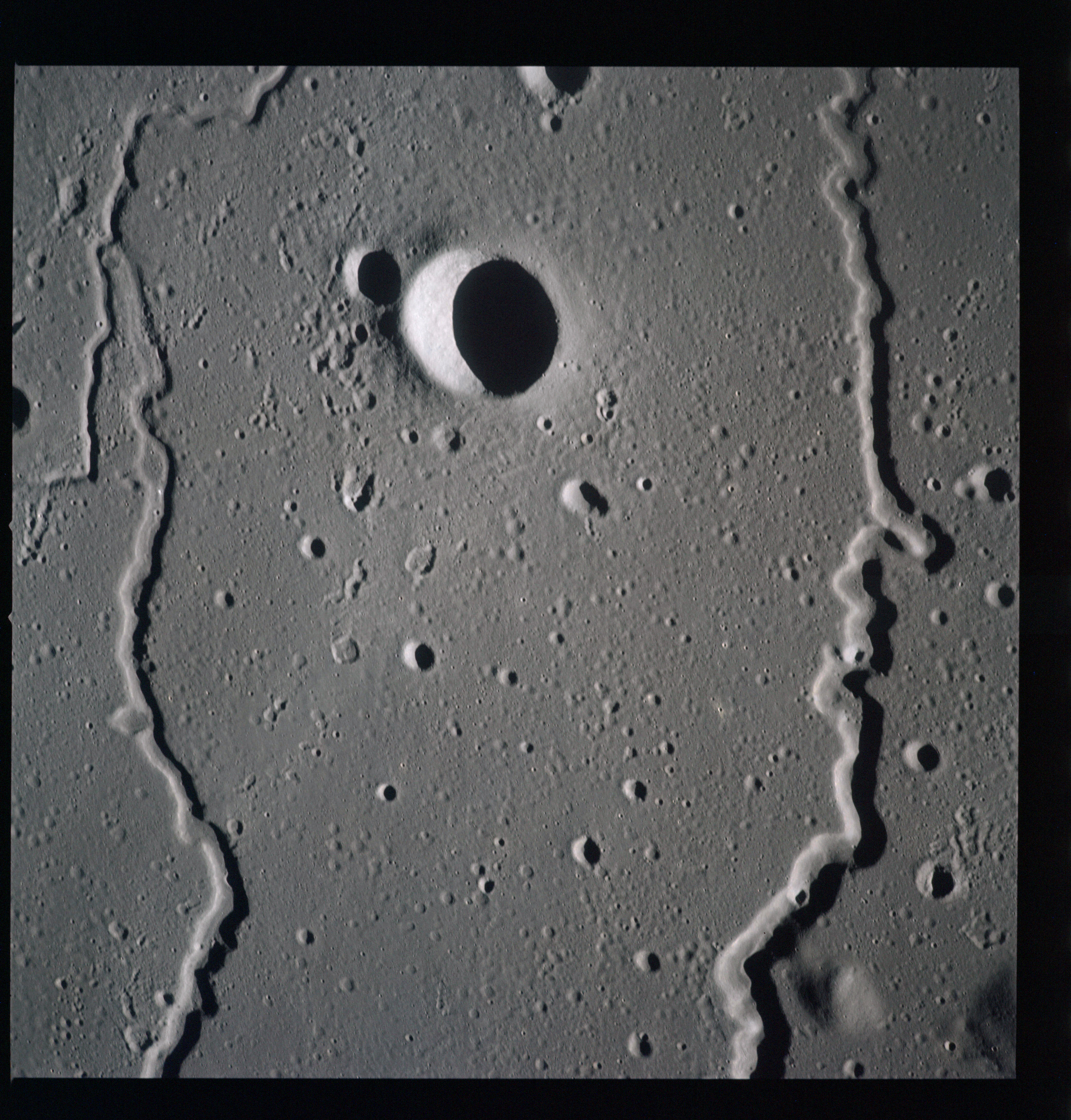 A wider context of these features is shown in one of the frames, AS15-M-2195, taken by the Mapping Camera on the spacecraft's next orbit.