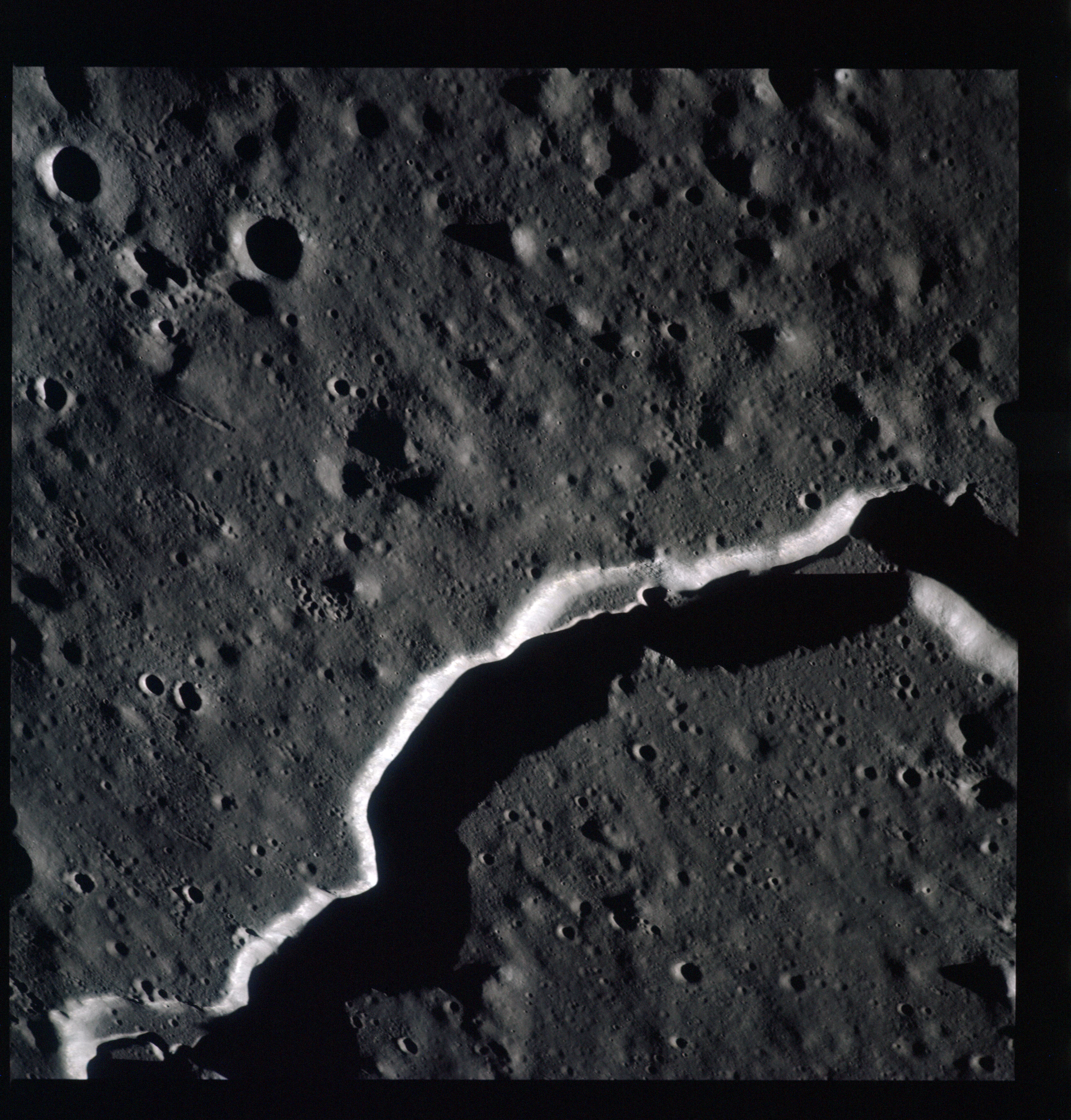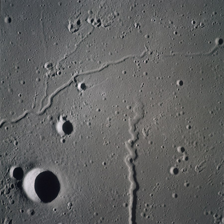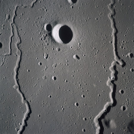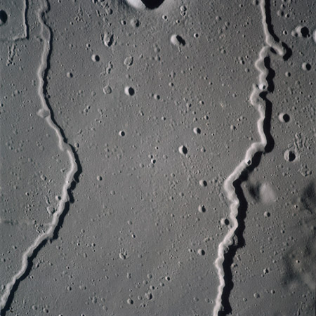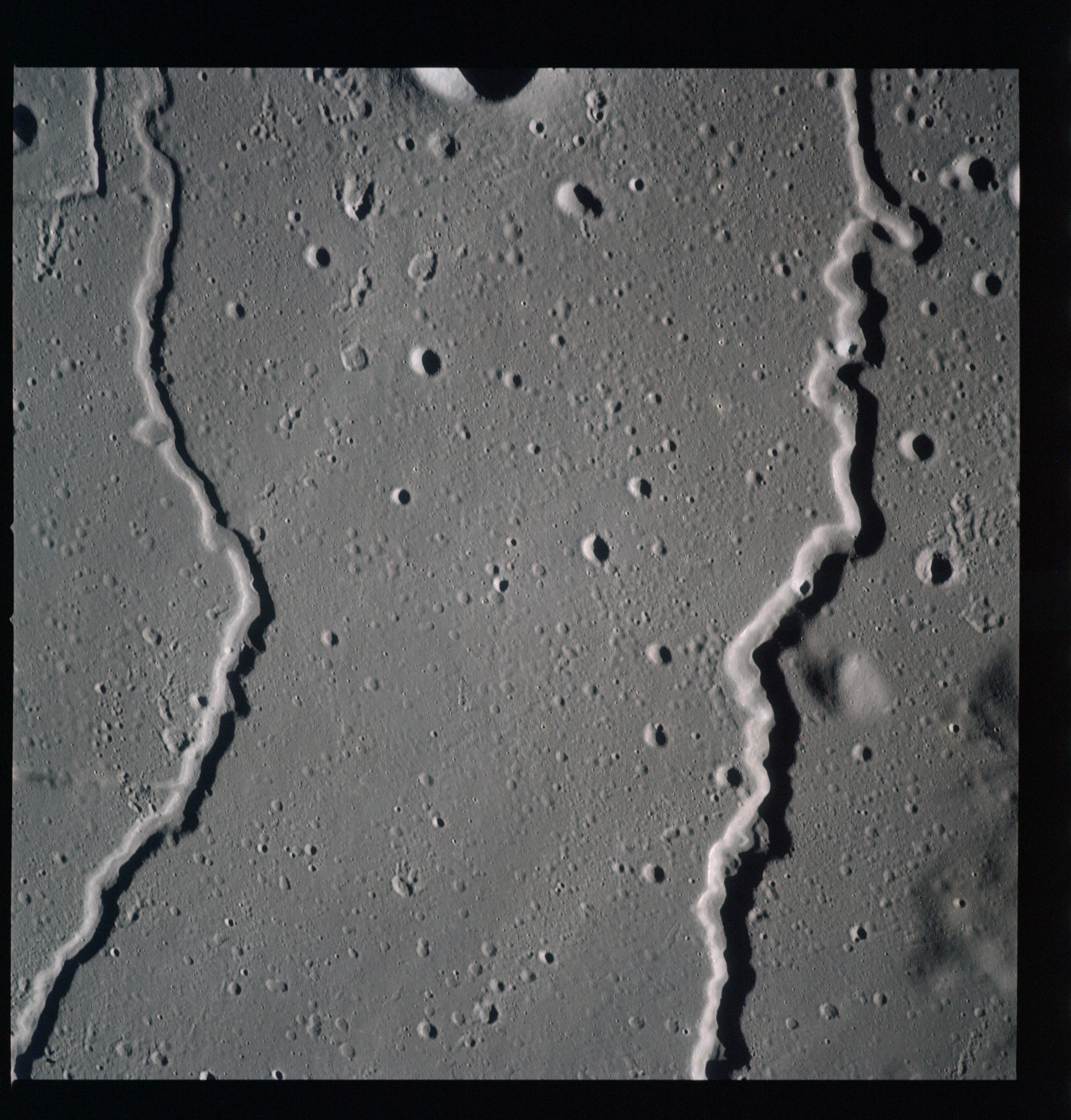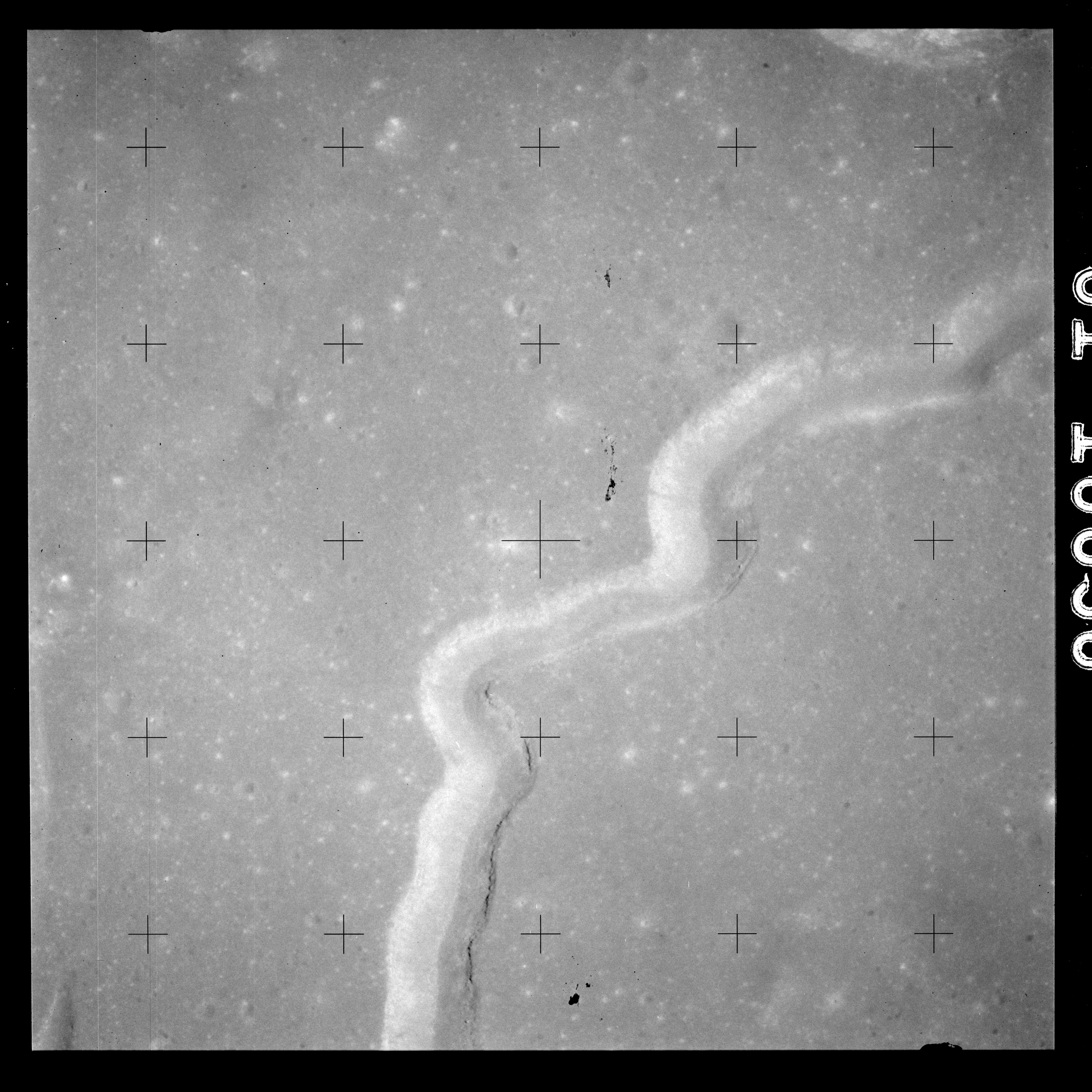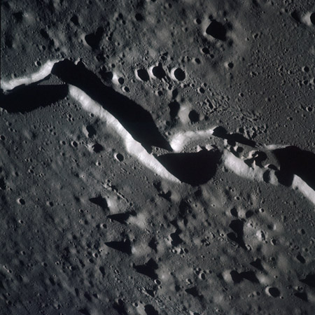 A wider context of these features is shown in one of the frames, AS15-M-2195, taken by the Mapping Camera on the spacecraft's next orbit.