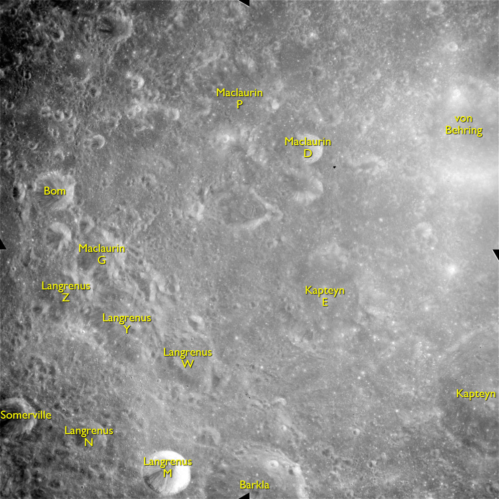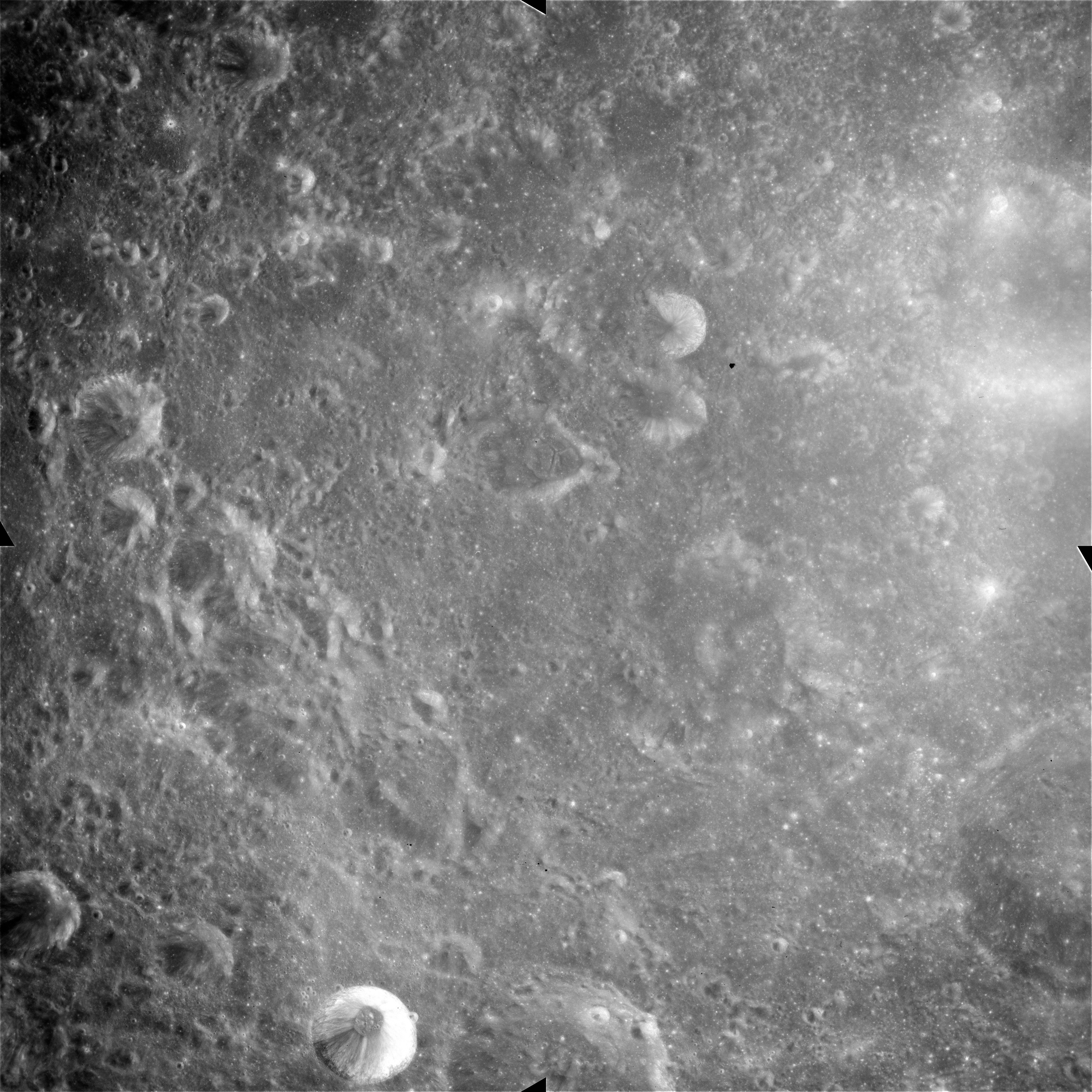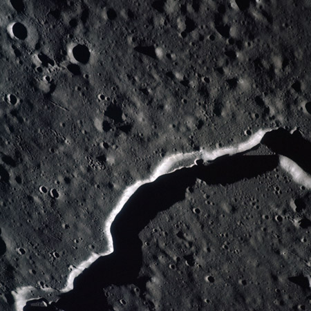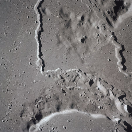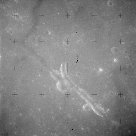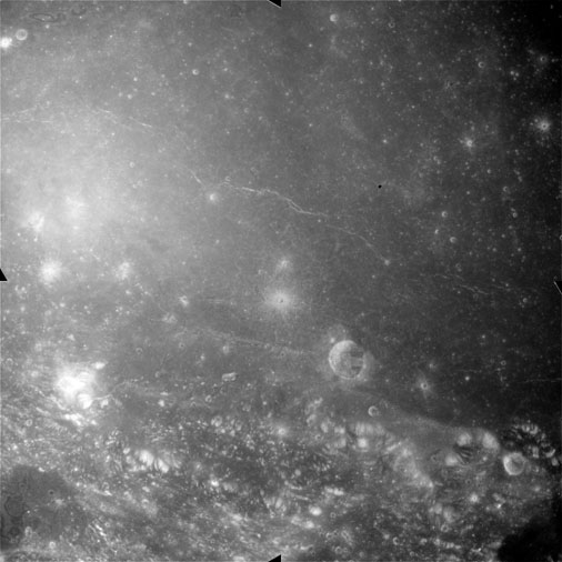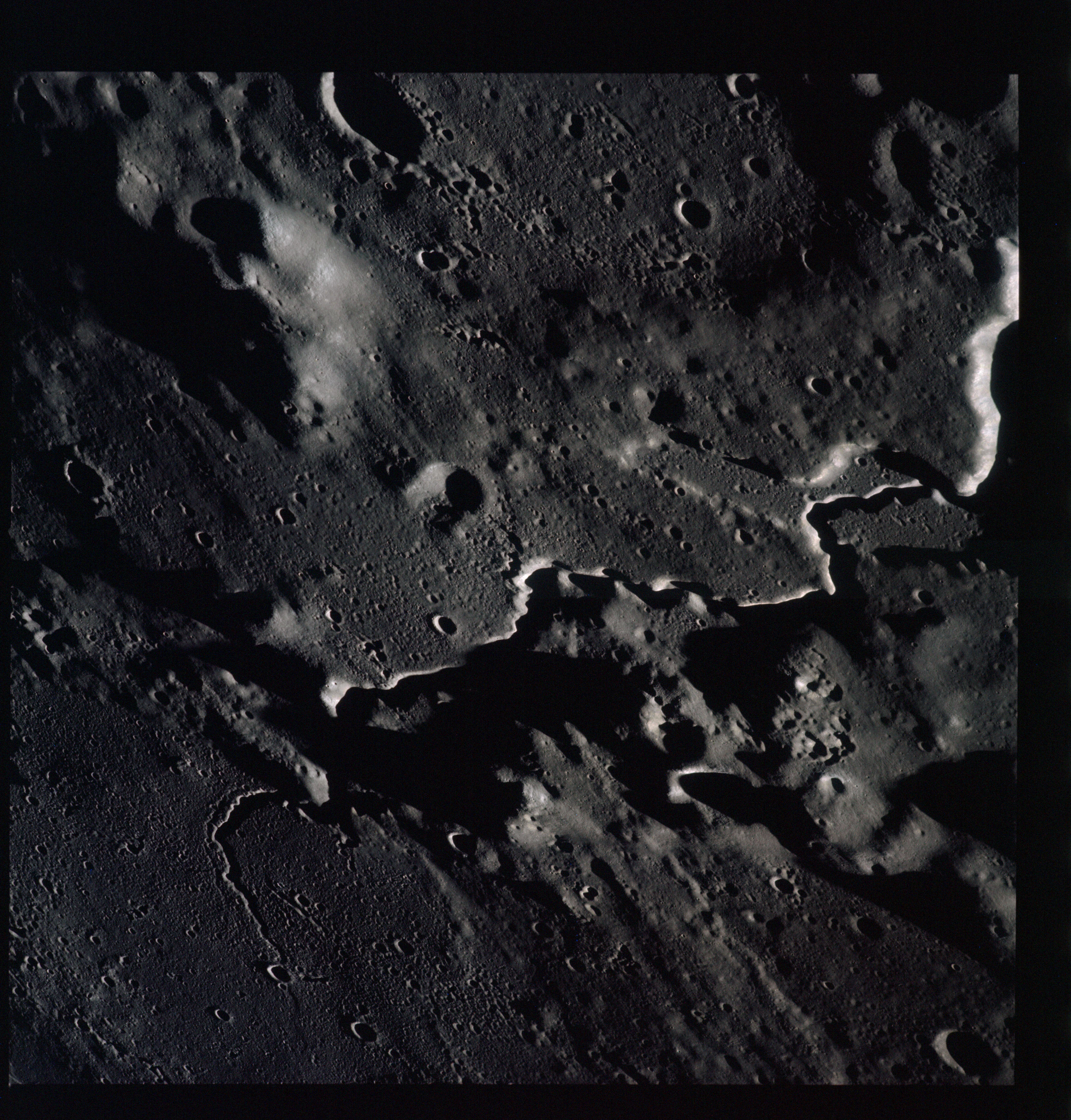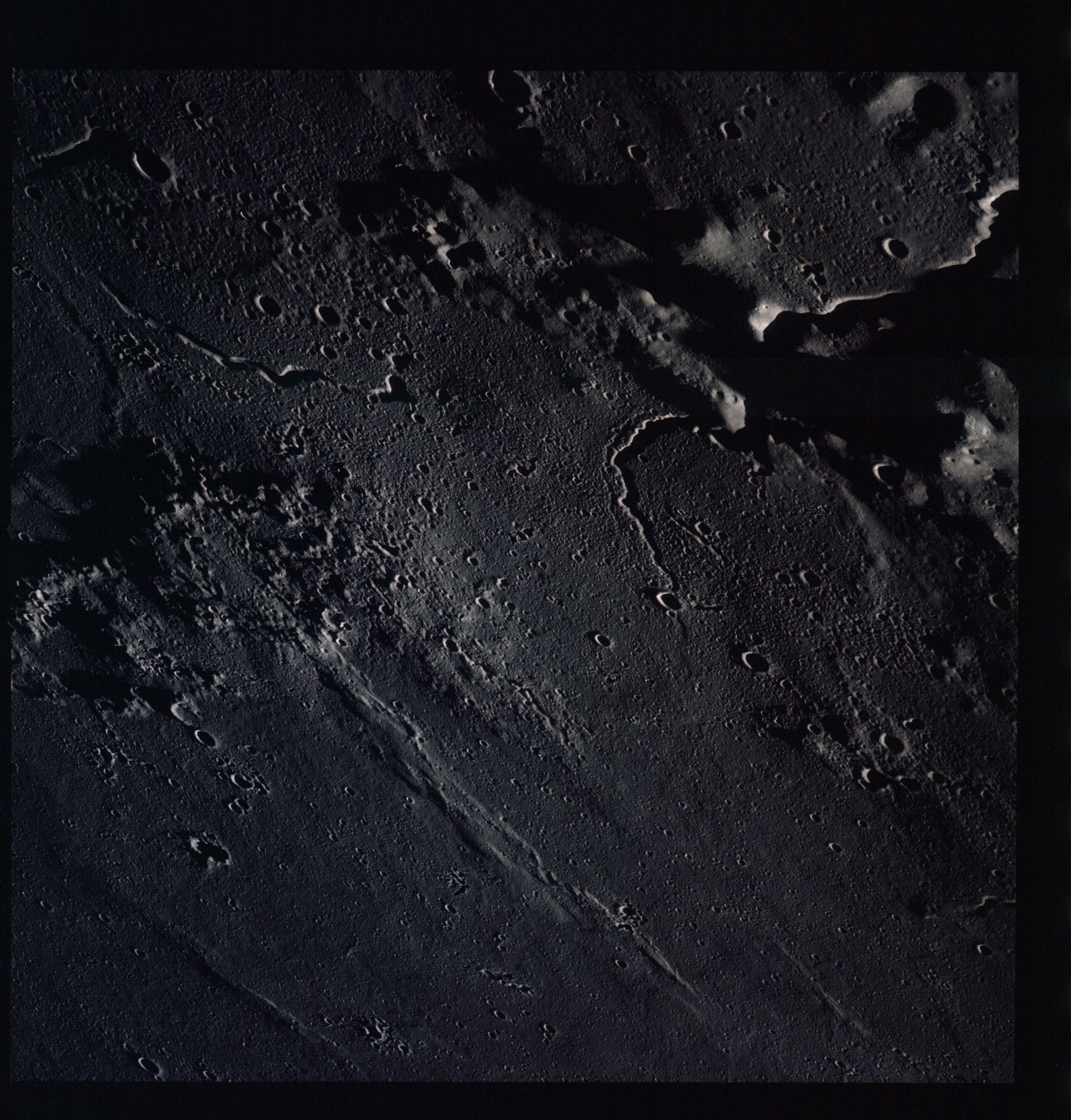 A wider context of these features is shown in one of the frames, AS15-M-2195, taken by the Mapping Camera on the spacecraft's next orbit.
