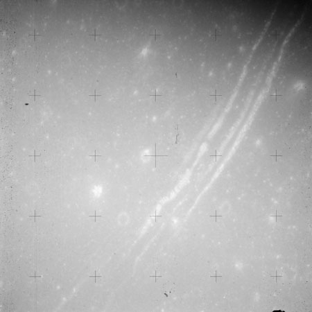 Northwest of Aristarchus, the mighty Vallis Schröteri meanders towards Oceanus Procellarum. The lighting is still too oblique to show much detail although its entire length is photographed in AS15-96-13051 to 13062. The first of this sequence, 13051, shows the source of the rille, the "Cobra's Head".