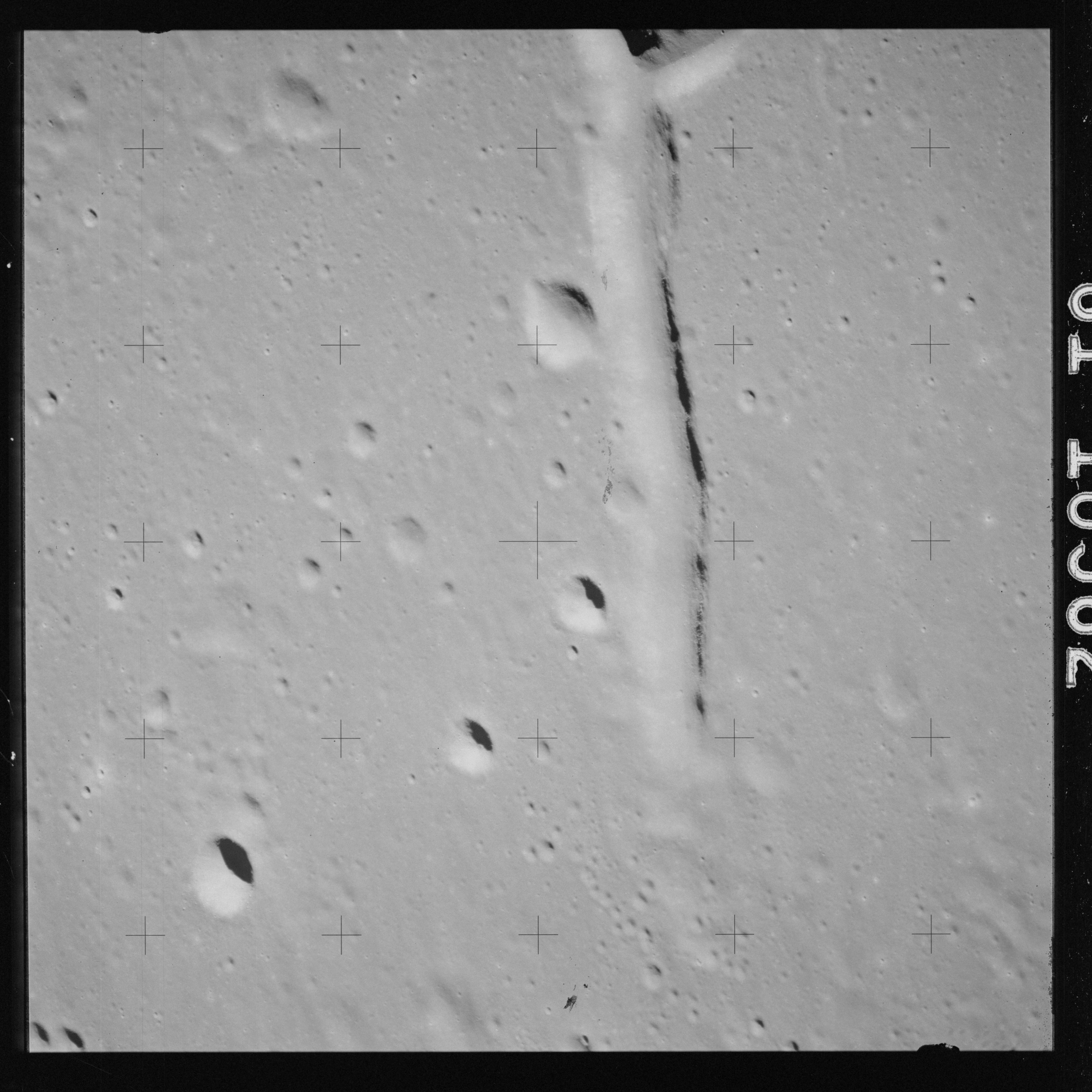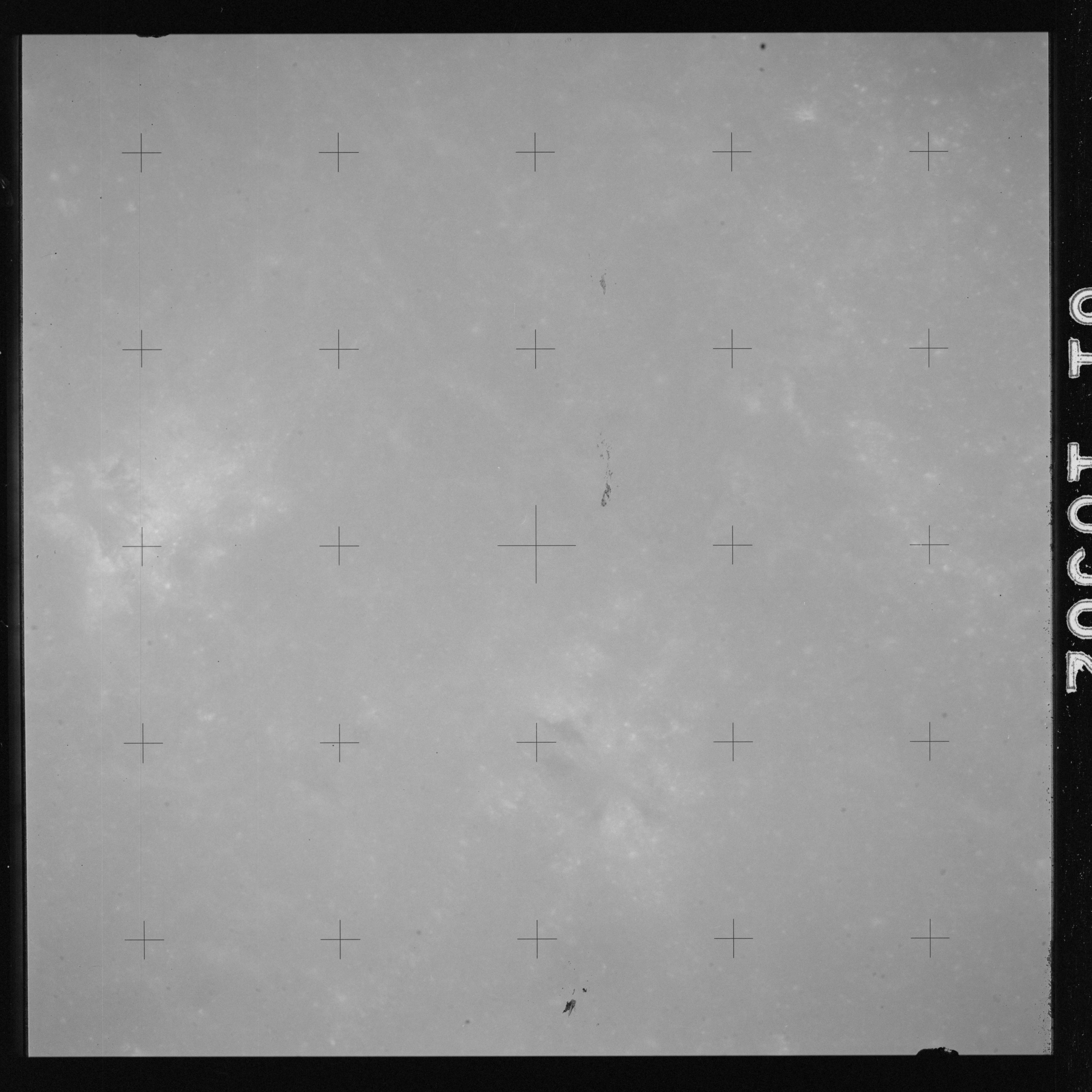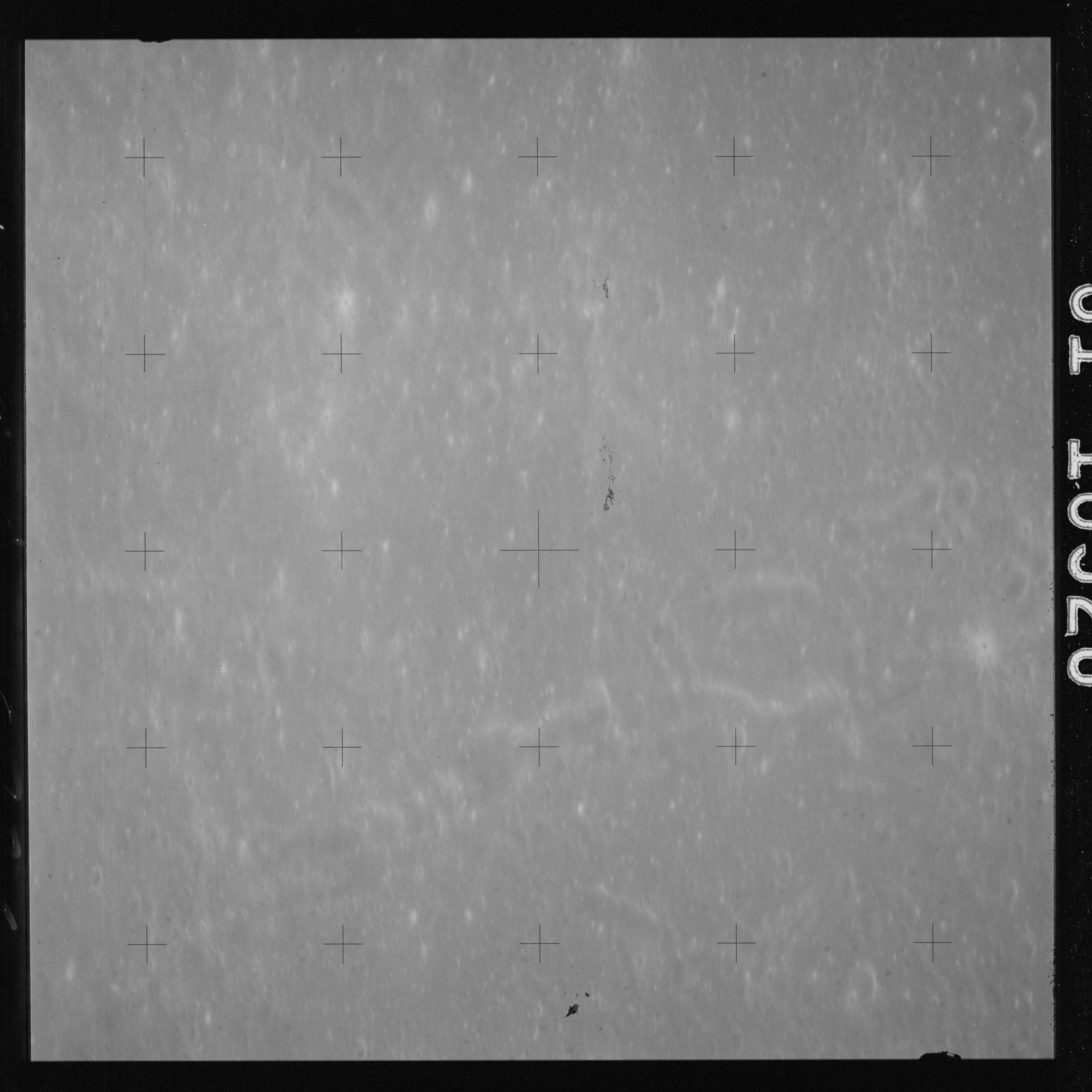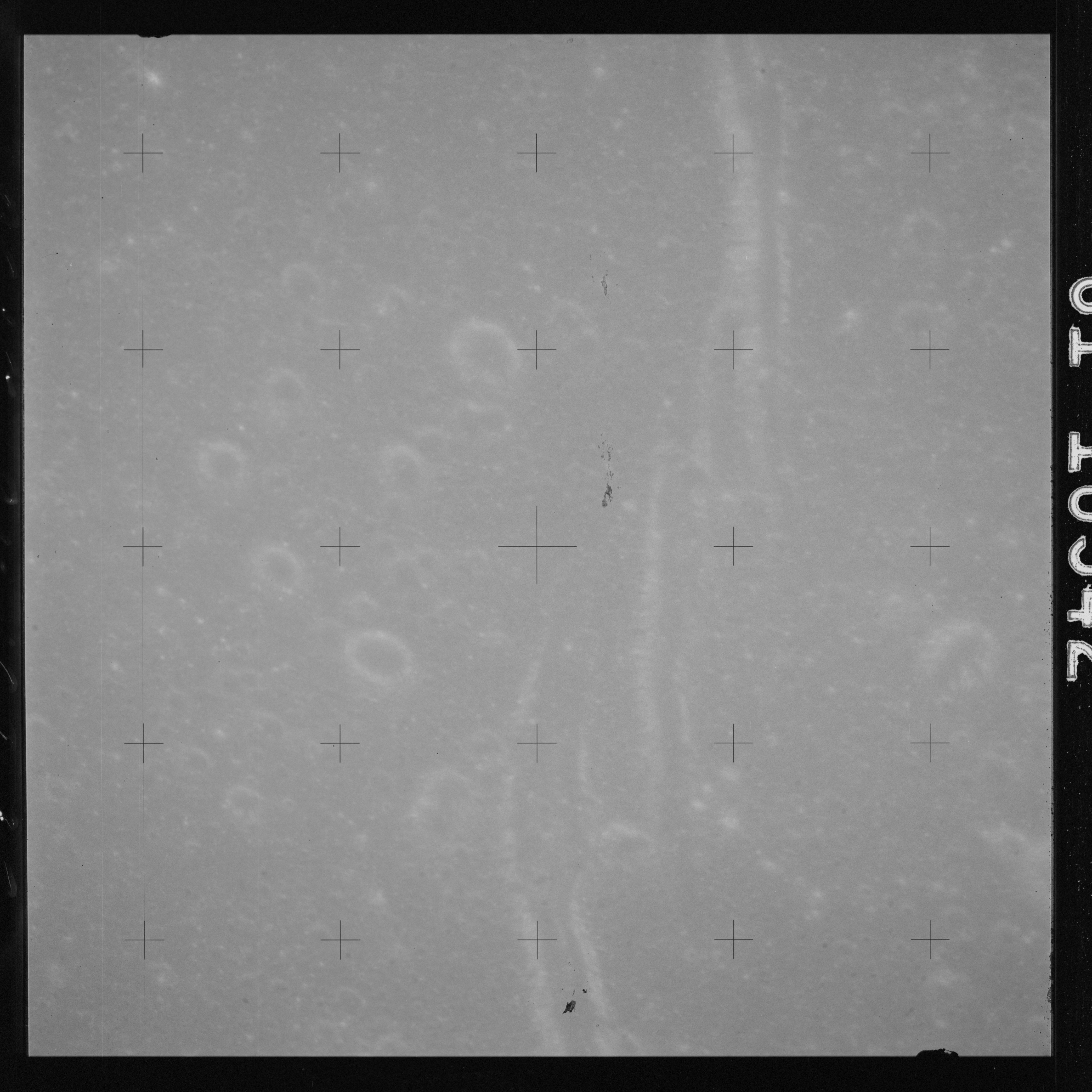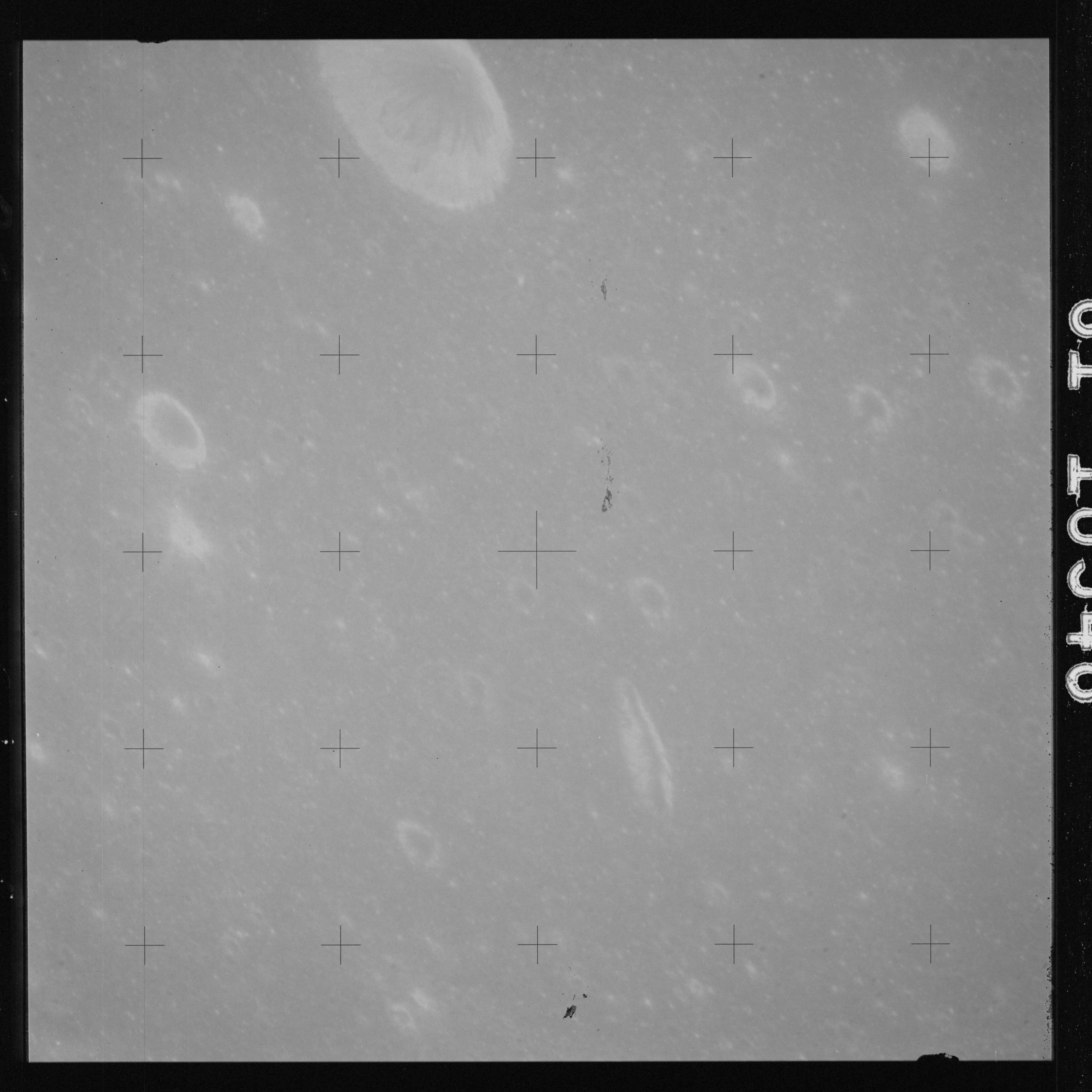 They have two Hasselblad cameras in use. One has a Réseau glass plate fitted which imprints crosses on the photographs for photogrammetry purposes. It has magazine QQ attached loaded with black and white film adn its current lens is a 500-mm telephoto. The other camera has magazine O with colour film (Ektachrome) and a 250-mm medium telephoto lens. It has no Réseau plate fitted. During a sequence of 19 images taken with the latter combination just before AOS, AS15-97-13175 to 13193, they will photograph target number 10 as given in the Flight Plan, the ancient 130-km crater Sklodowska.