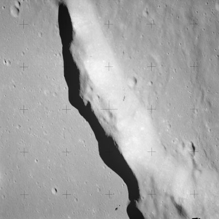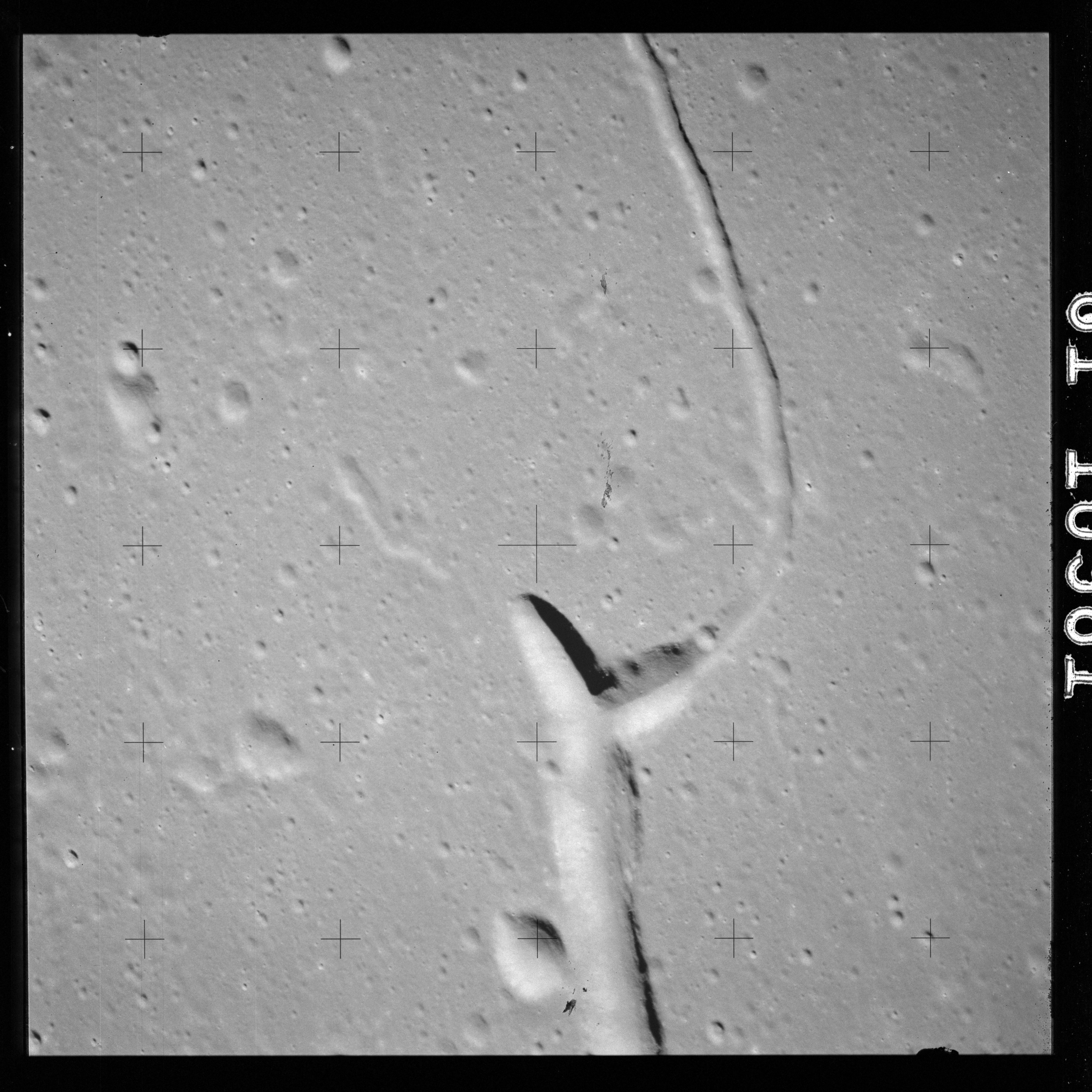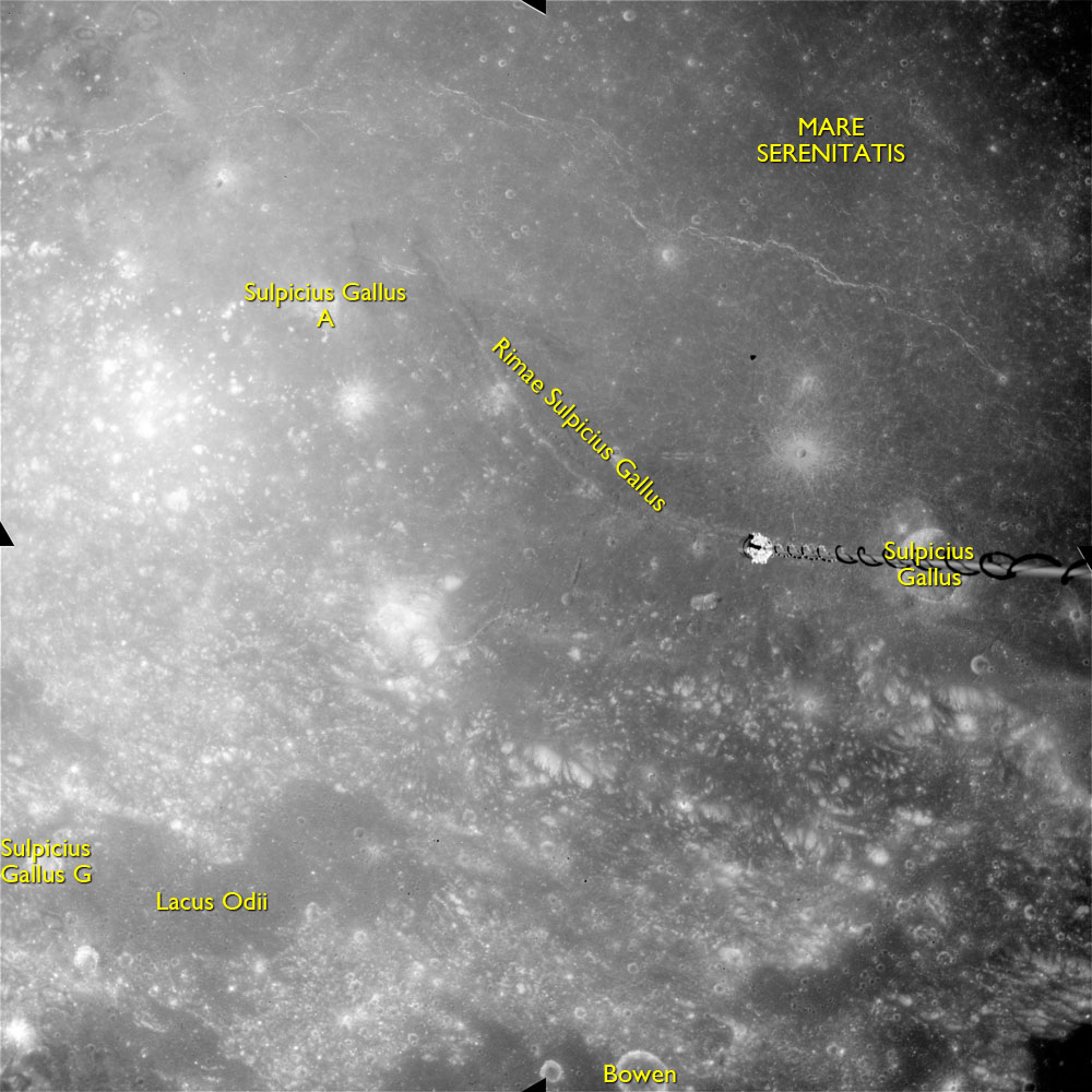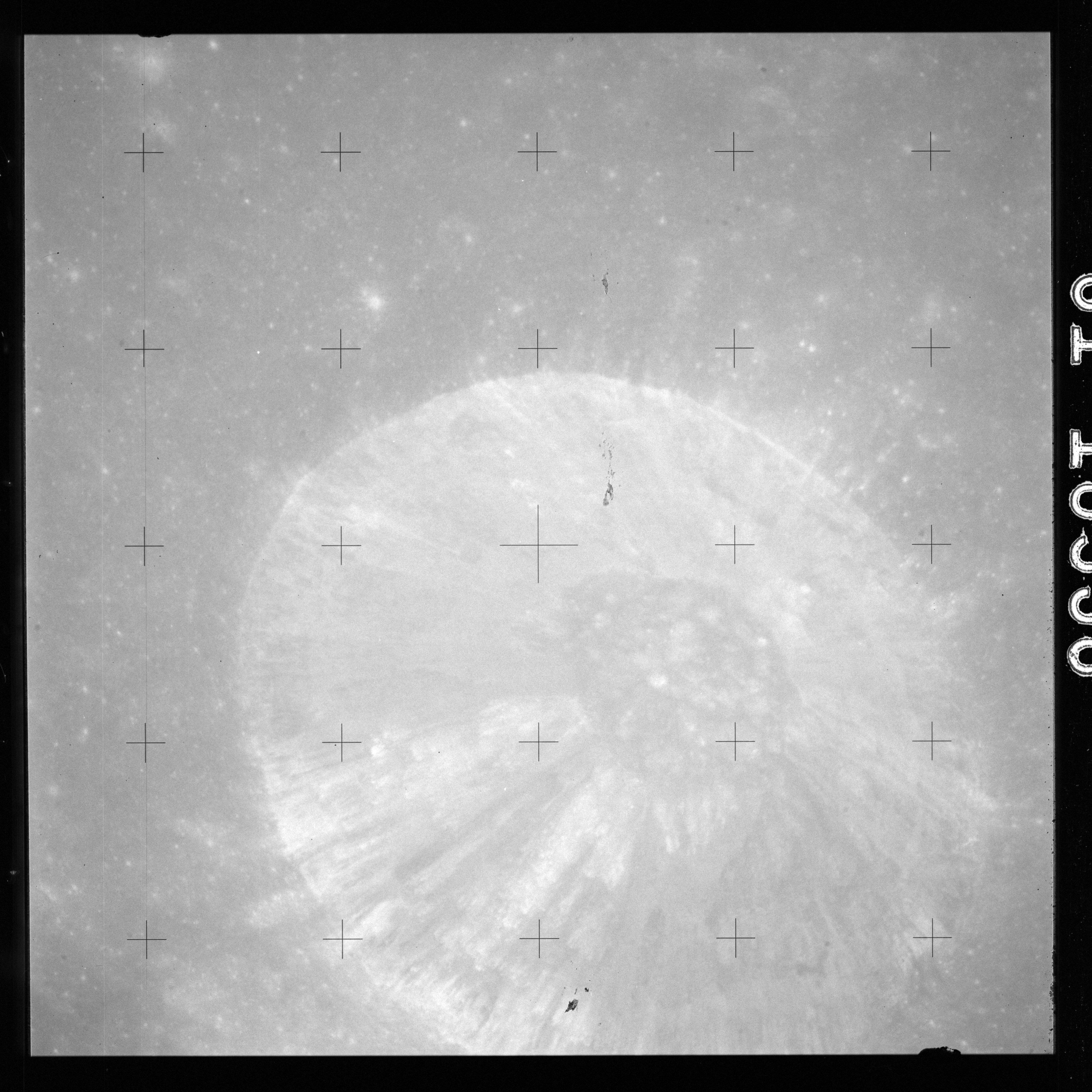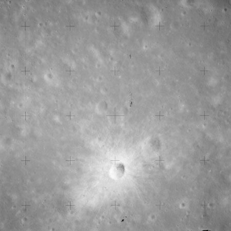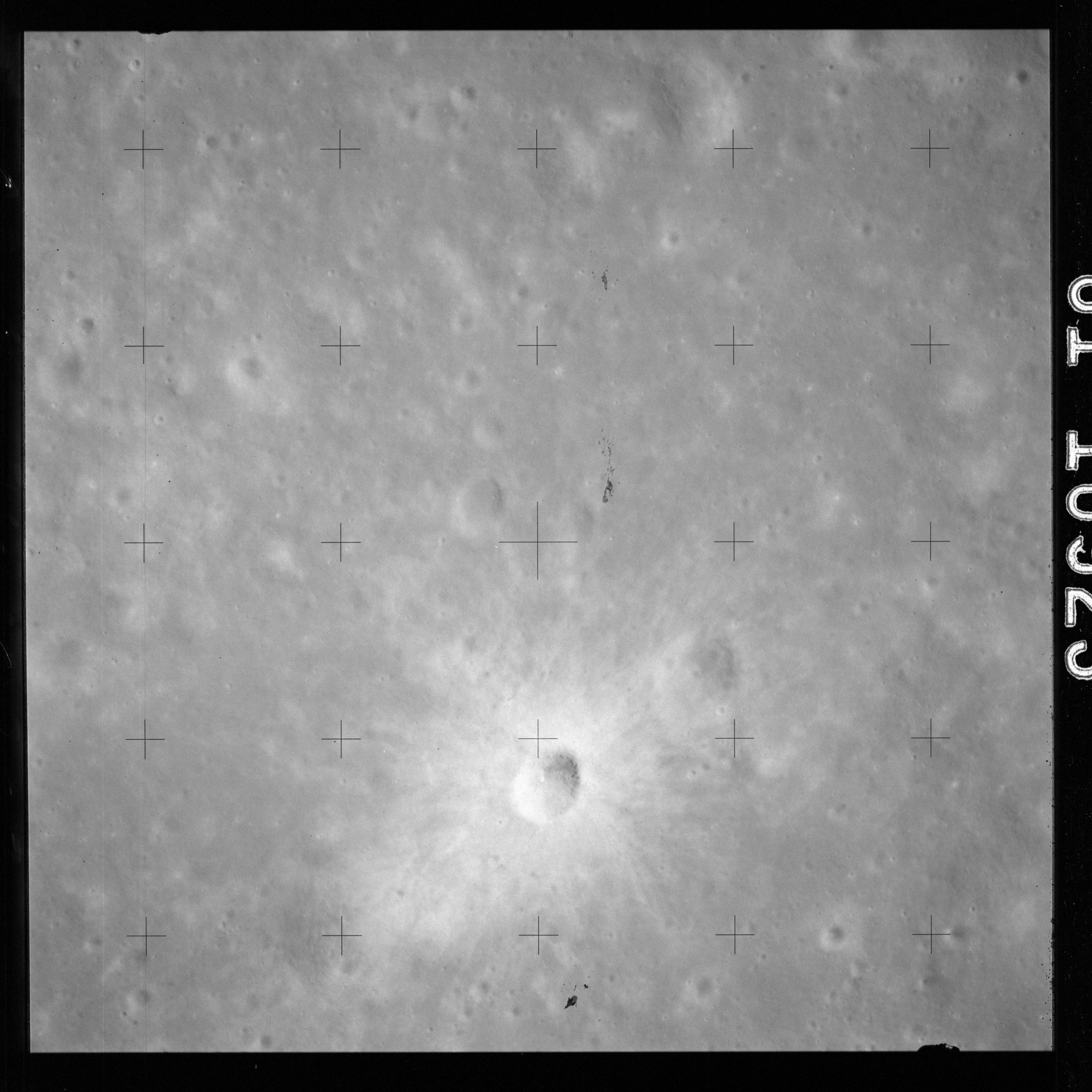 To the right of AS15-90-12283 is the exceptionally bright ray system of Censorinus, a small (3.8 kilometres) but highly visible crater which is considered by Earth observers as a useful landmark for timing the progress of lunar eclipses when Earth's shadow slowly moves across the Moon's disk. It is named after a Roman astronomer, circa 238 AD.