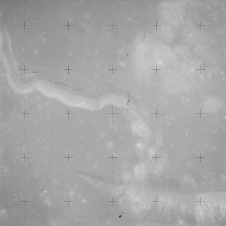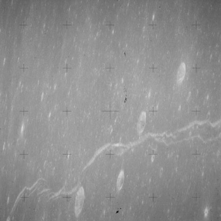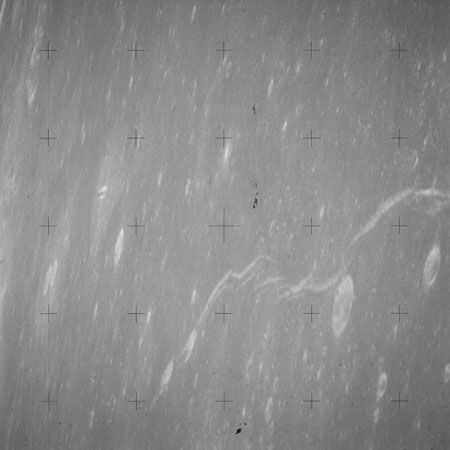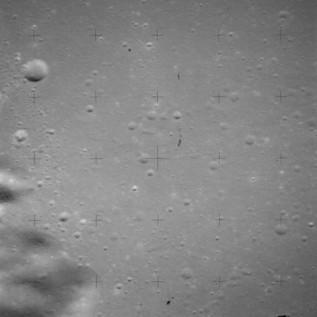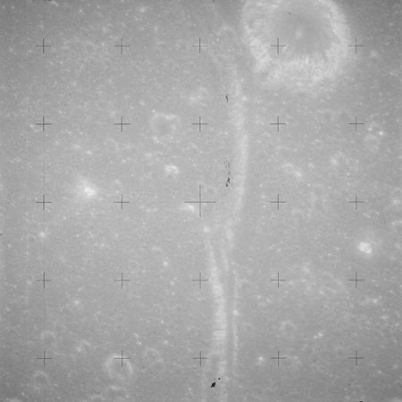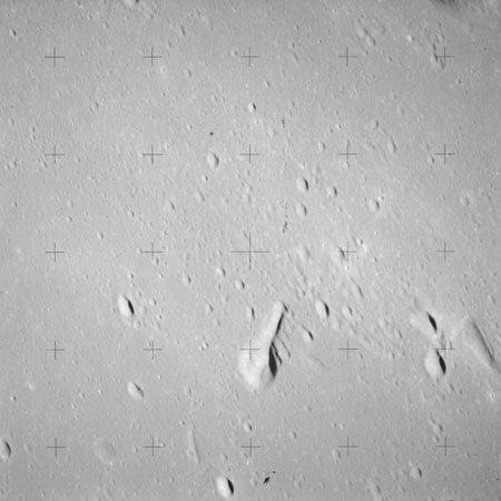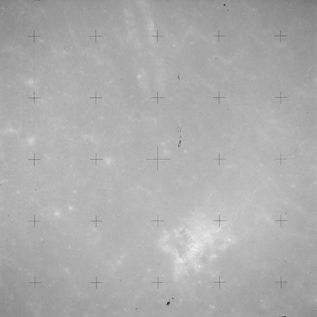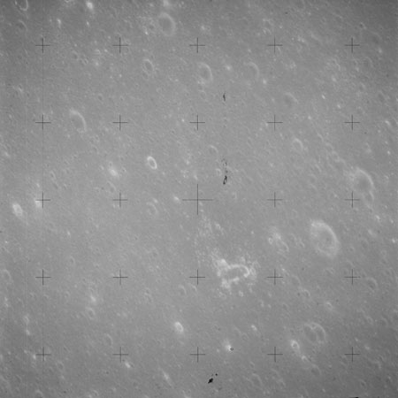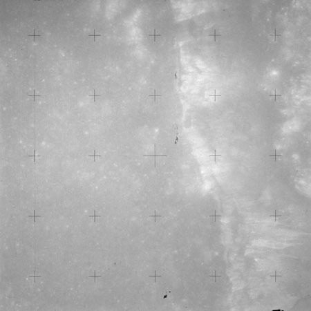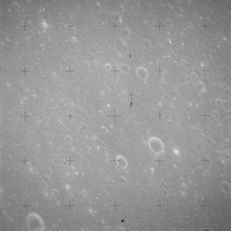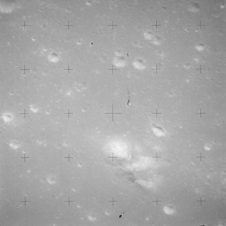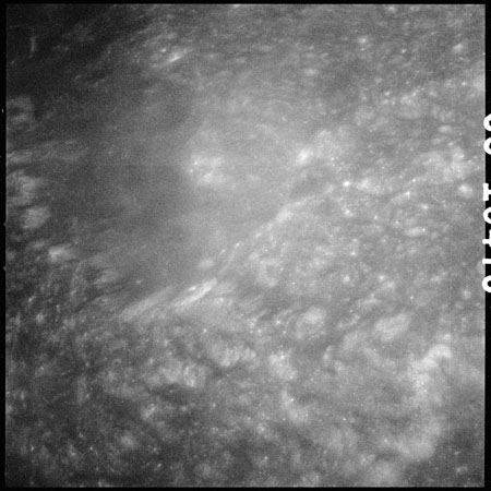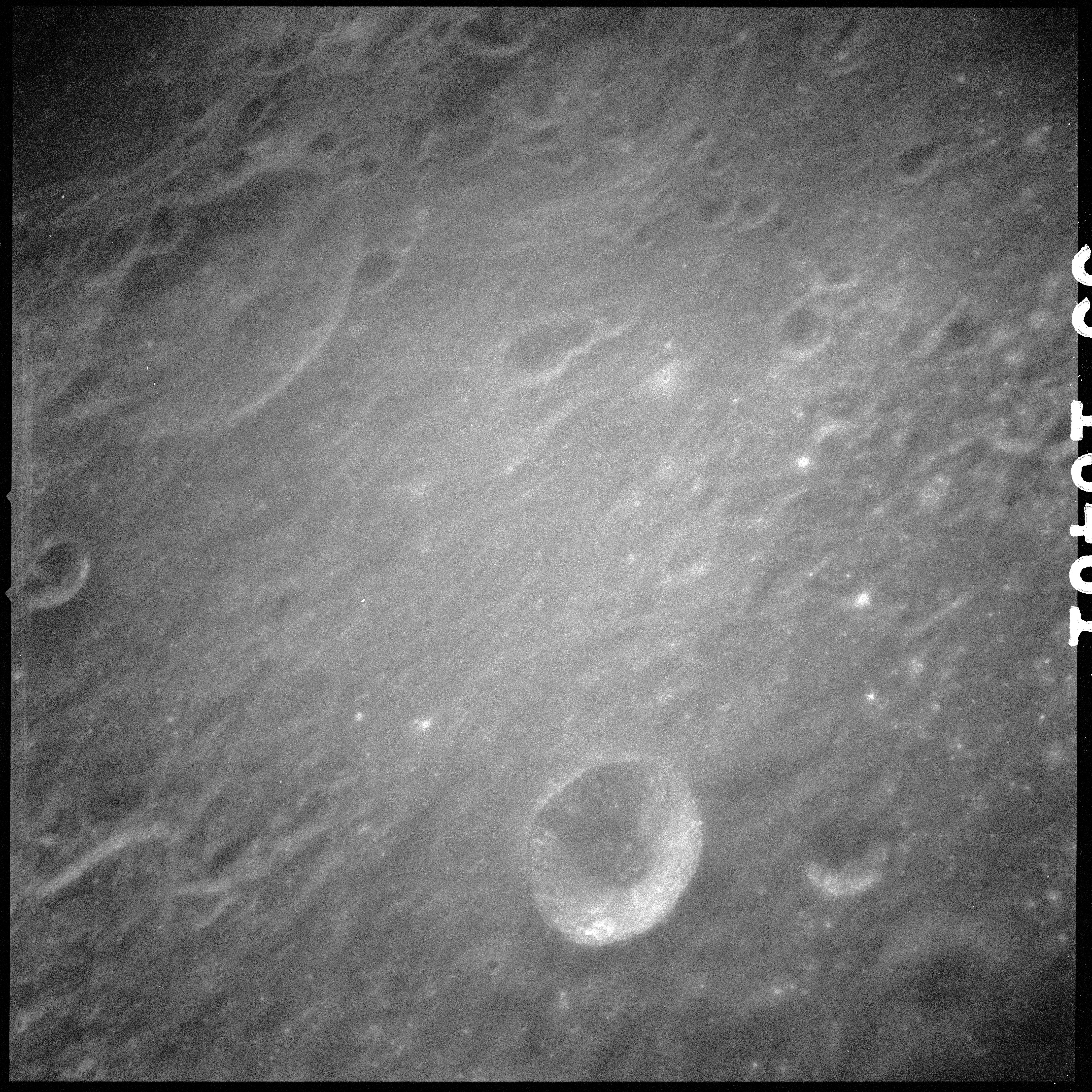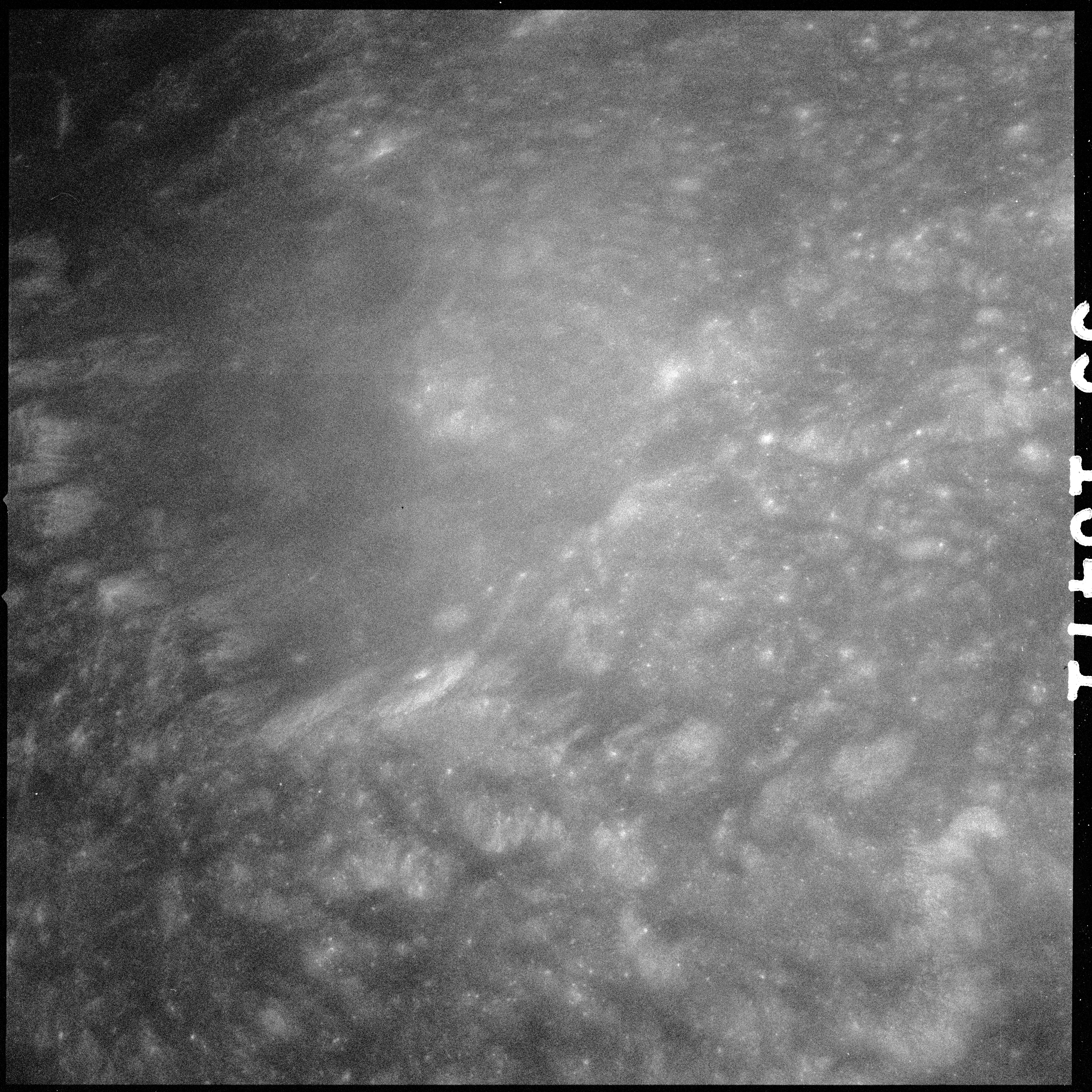 Two shots are taken on magazine PP as the spacecraft approaches Mare Fecunditatis. The Sun is very high and detail is hard to see.