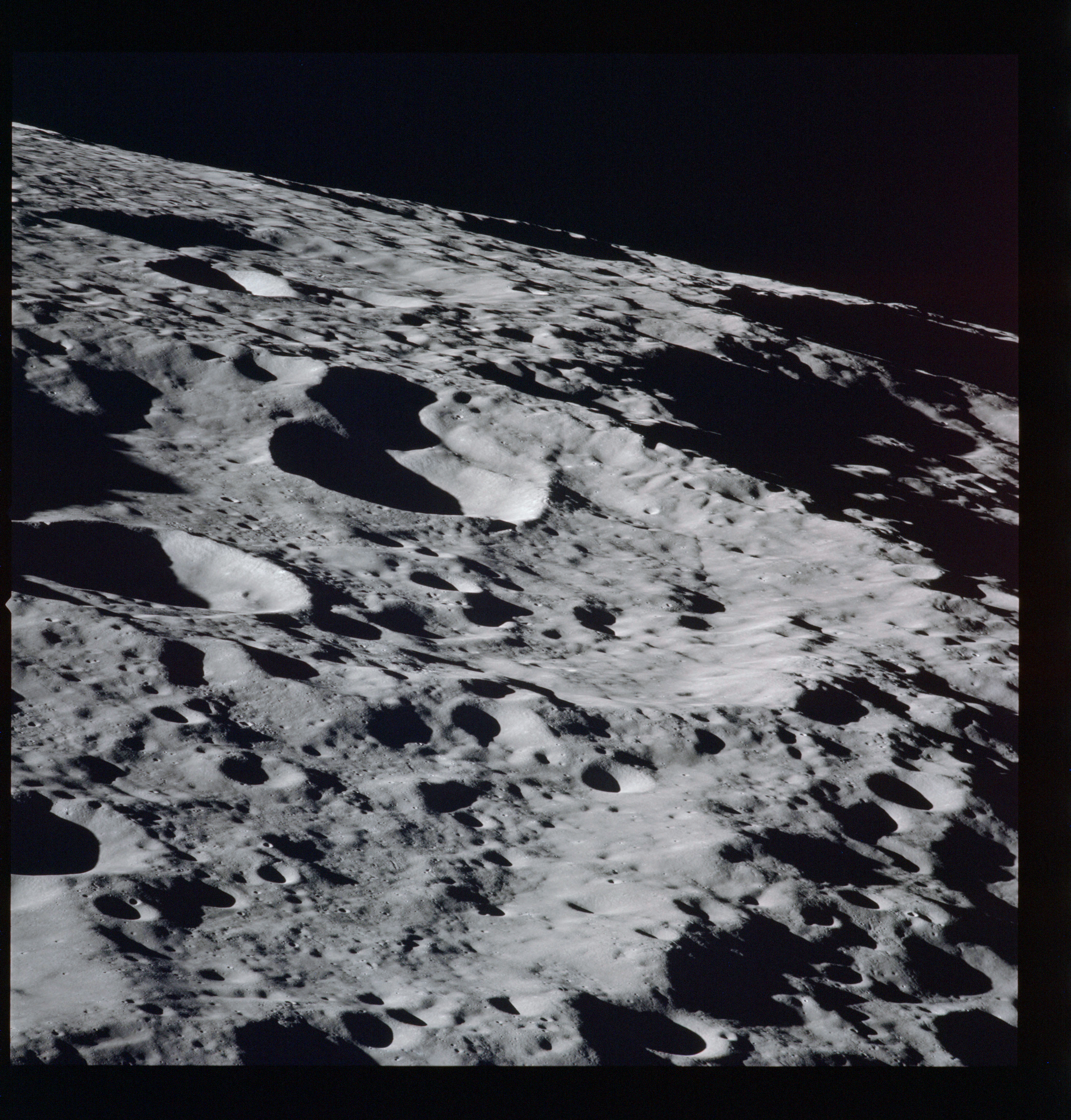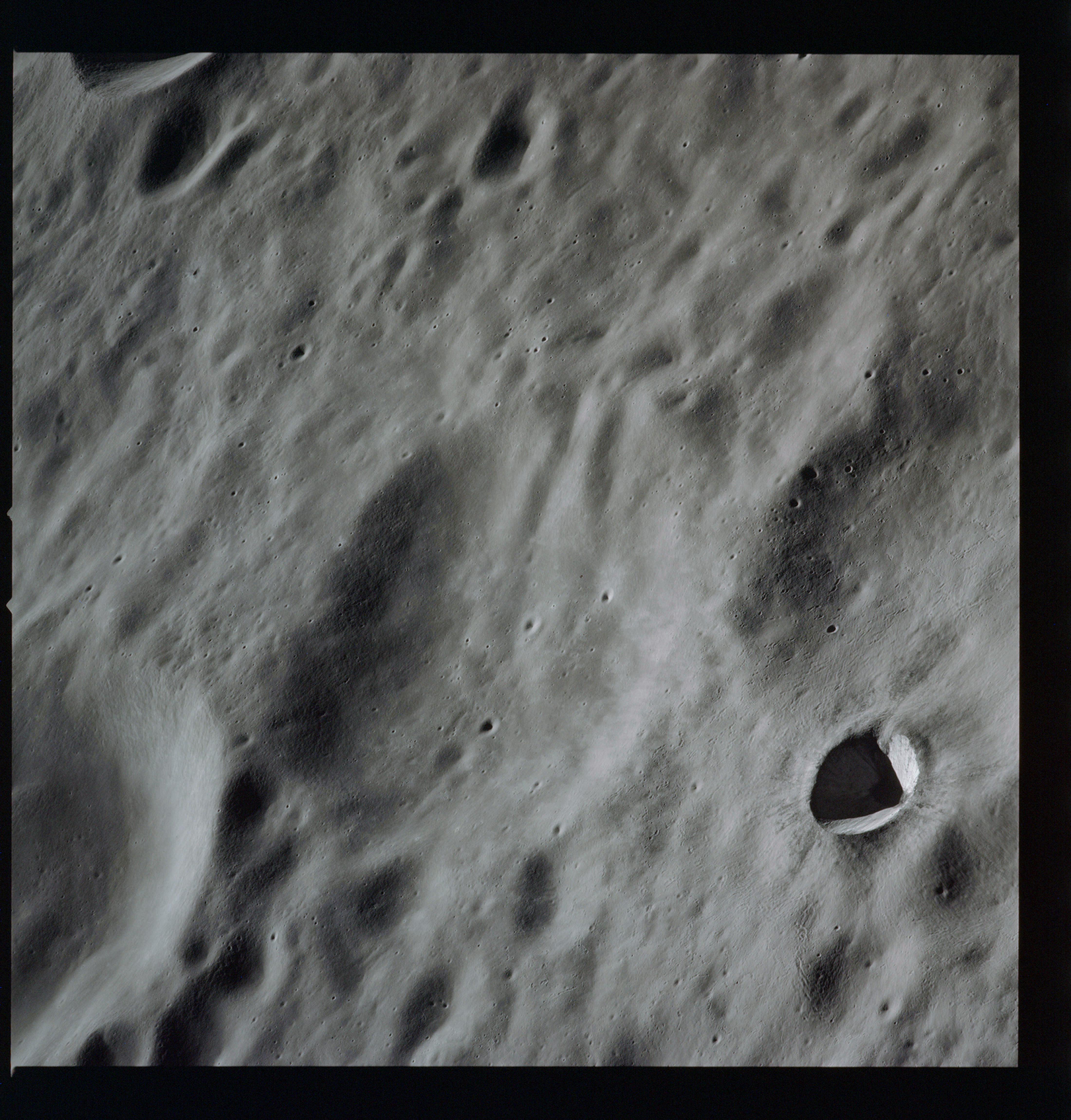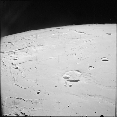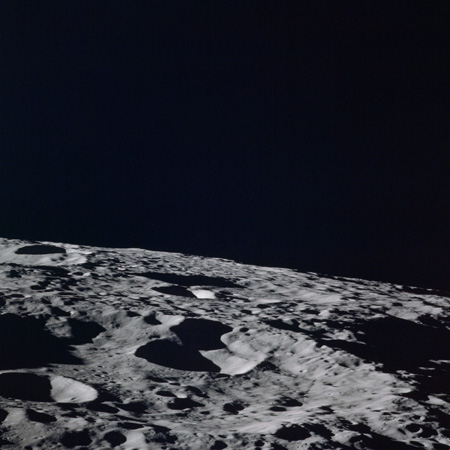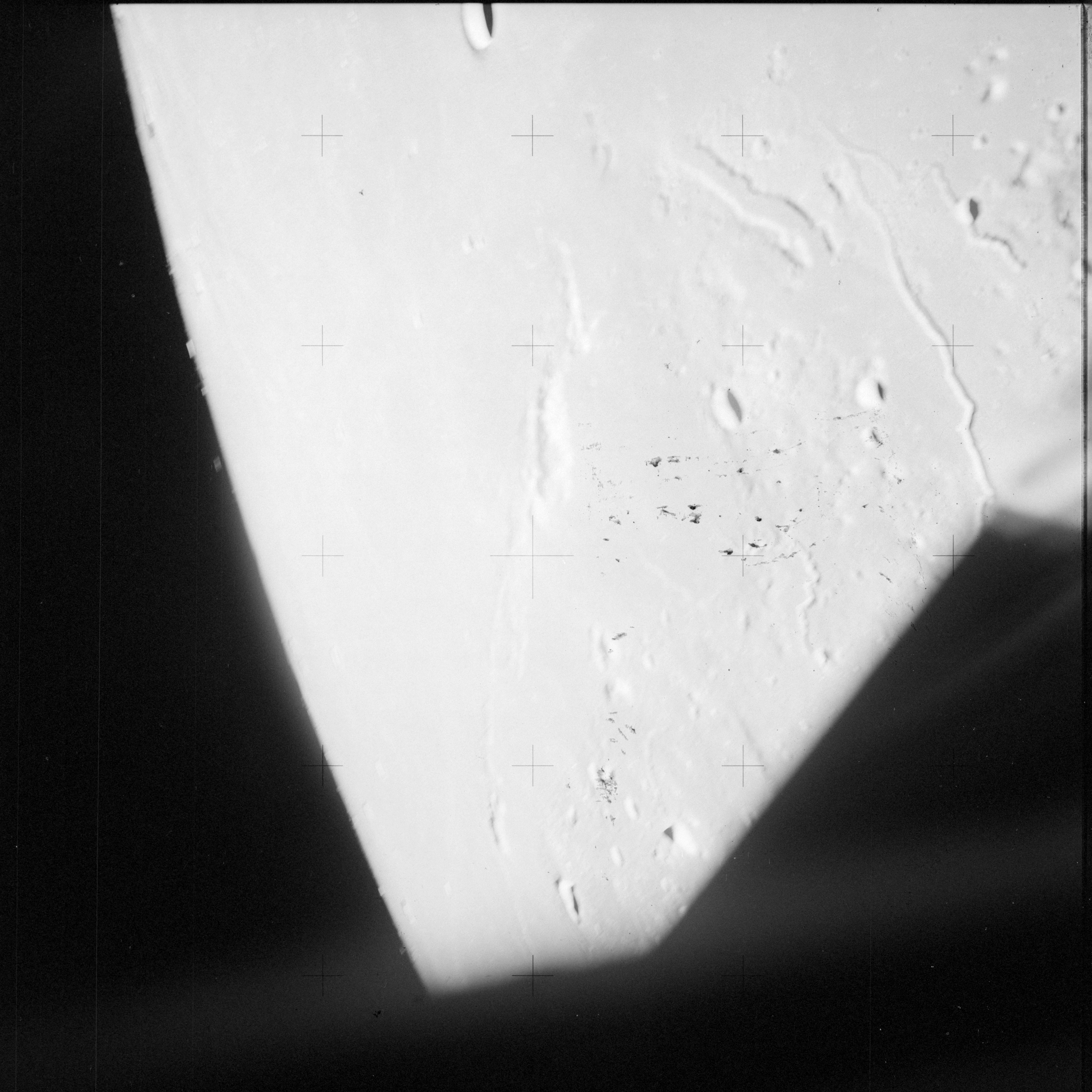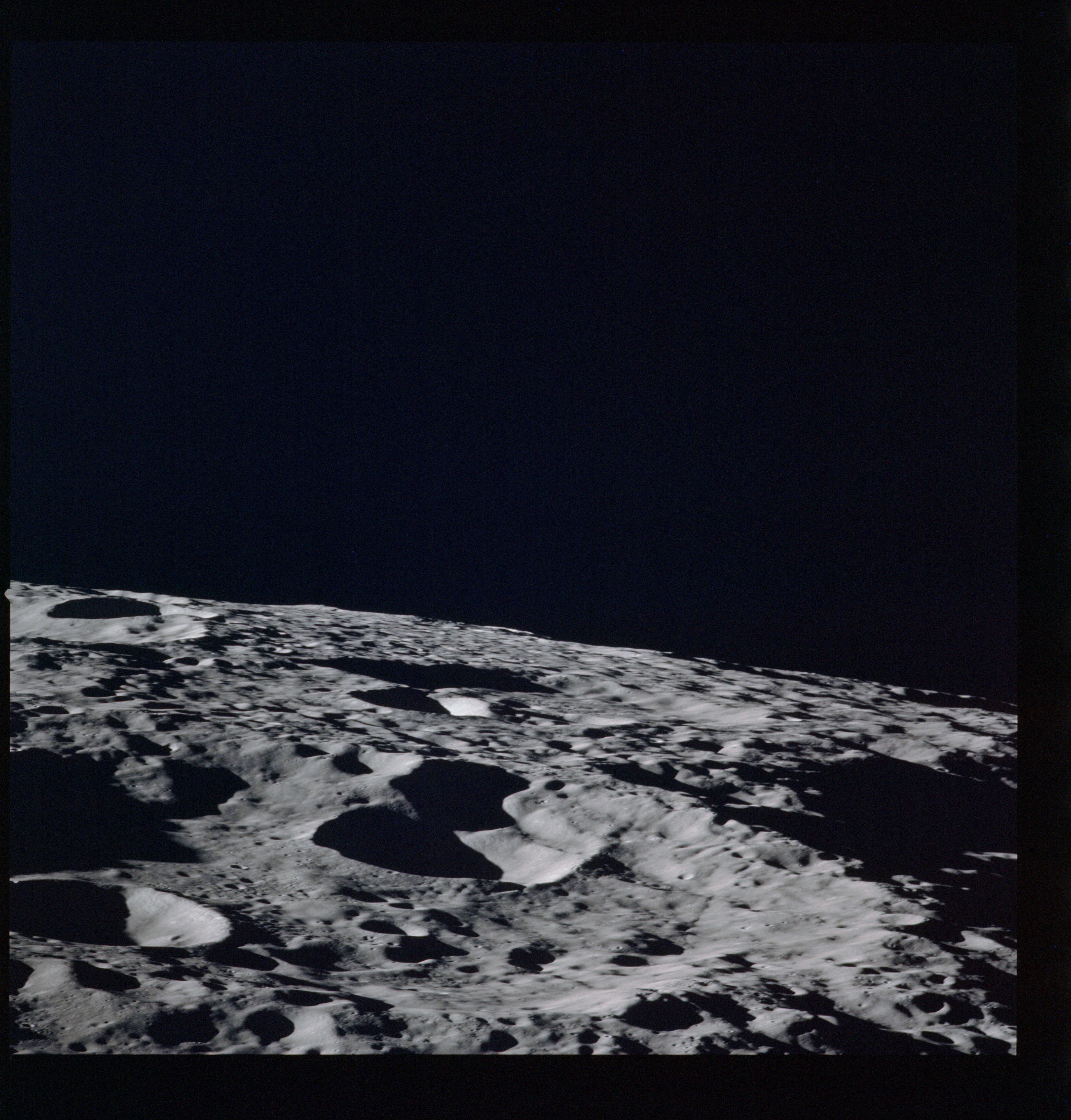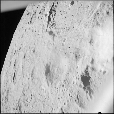 For half an hour, the crew have an exercise period. They then continue with some handheld photography of features on the far side, though rather than following the targets suggested in the Flight Plan, they elect to spread their picture-taking over this and the next orbit.