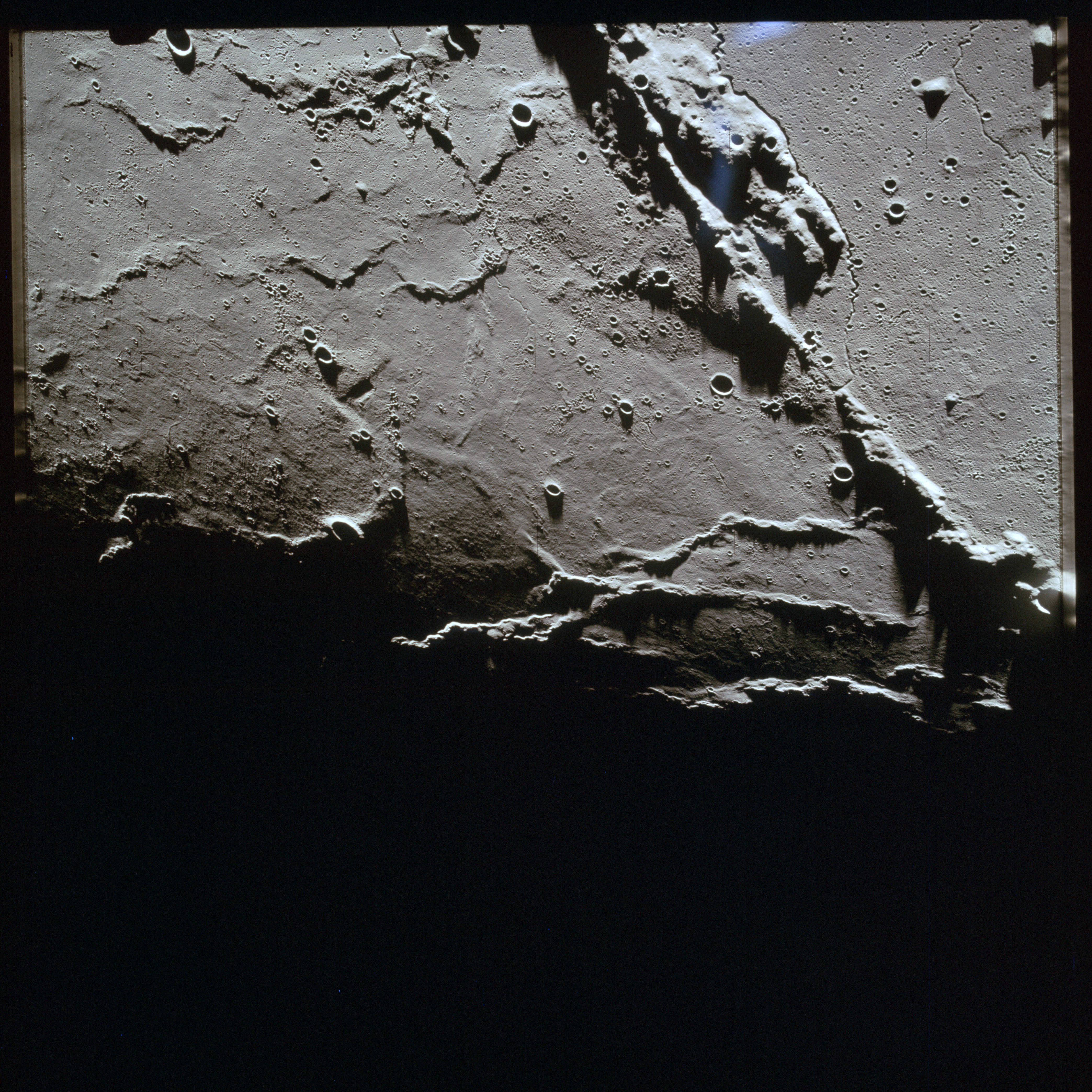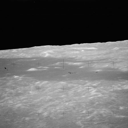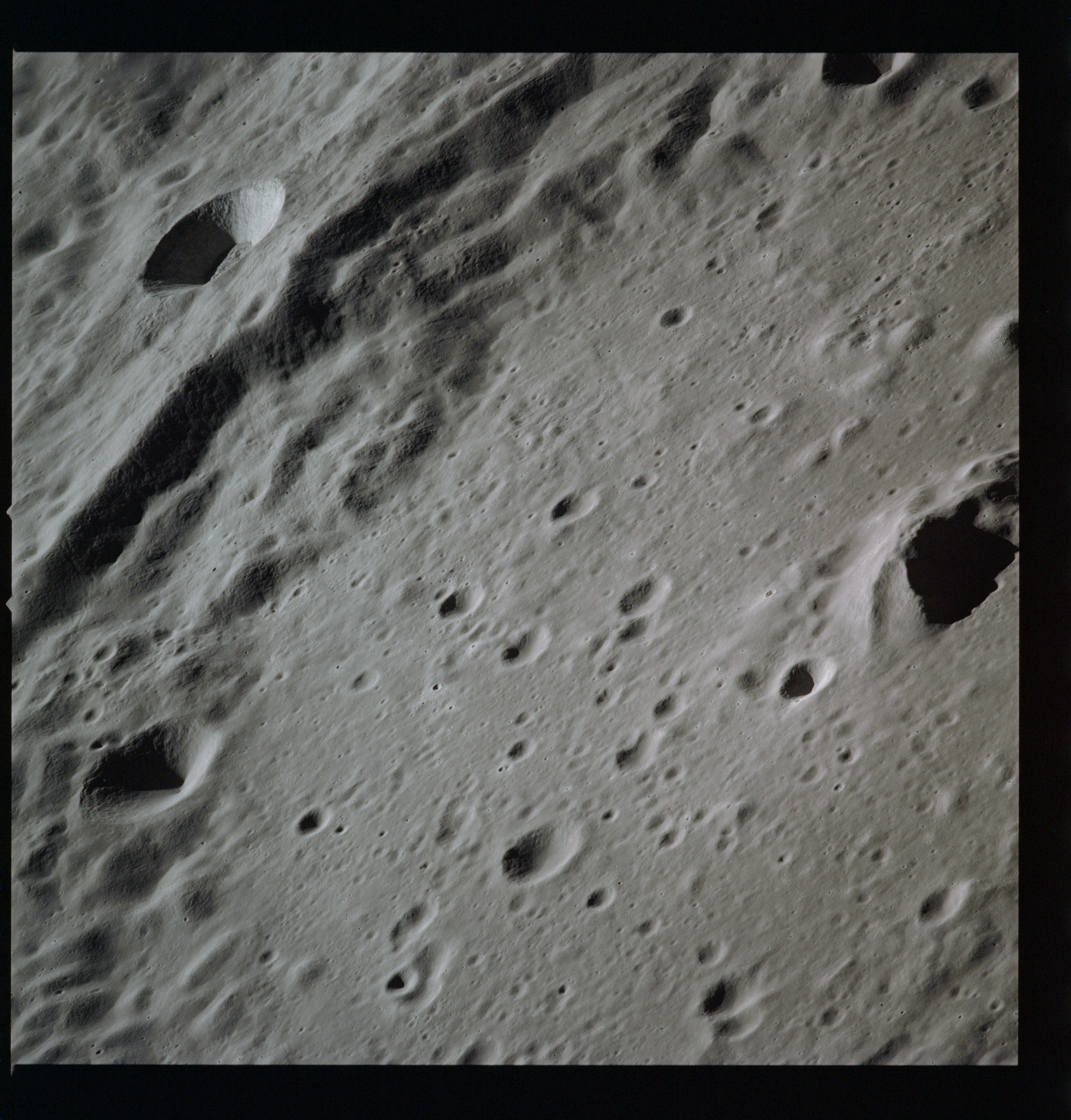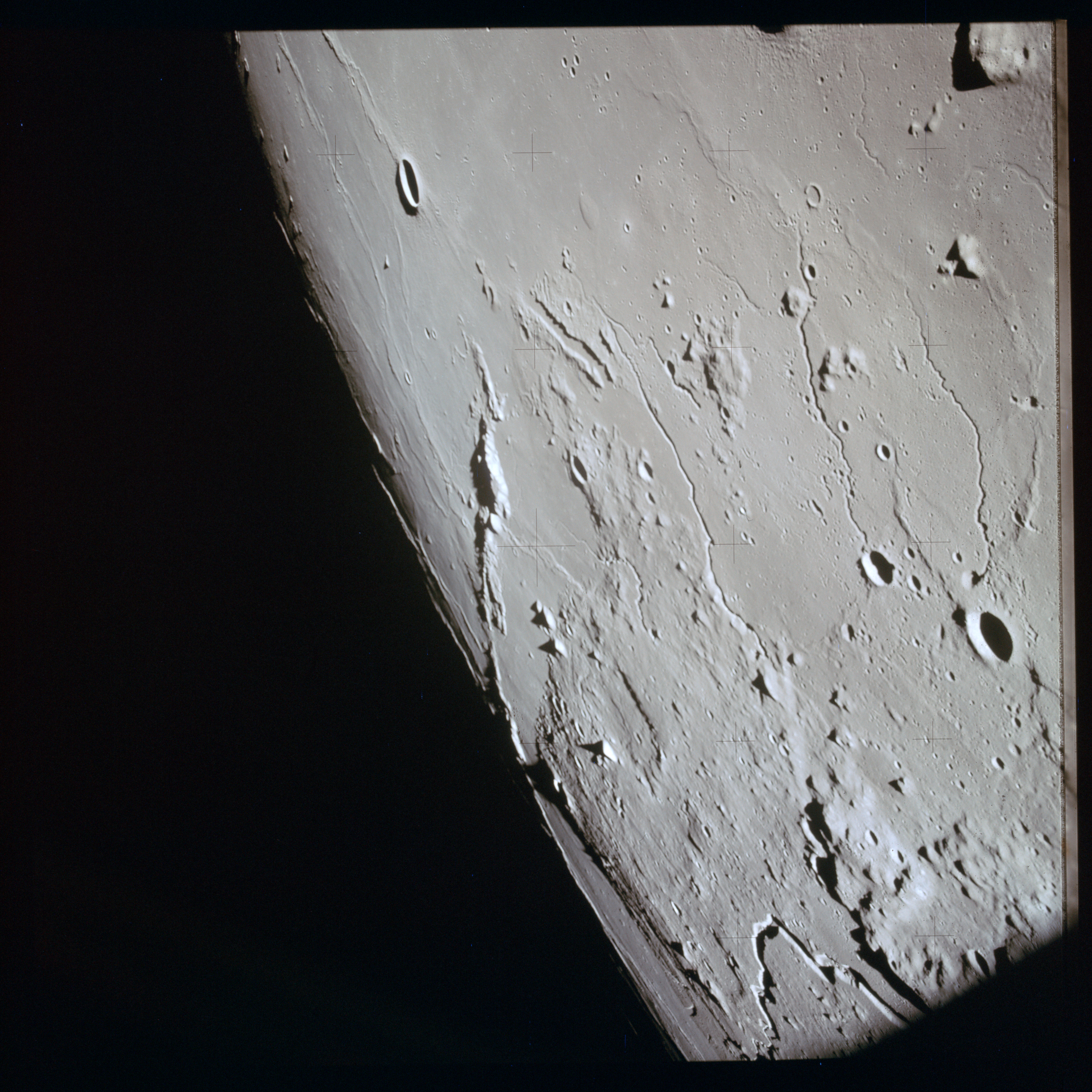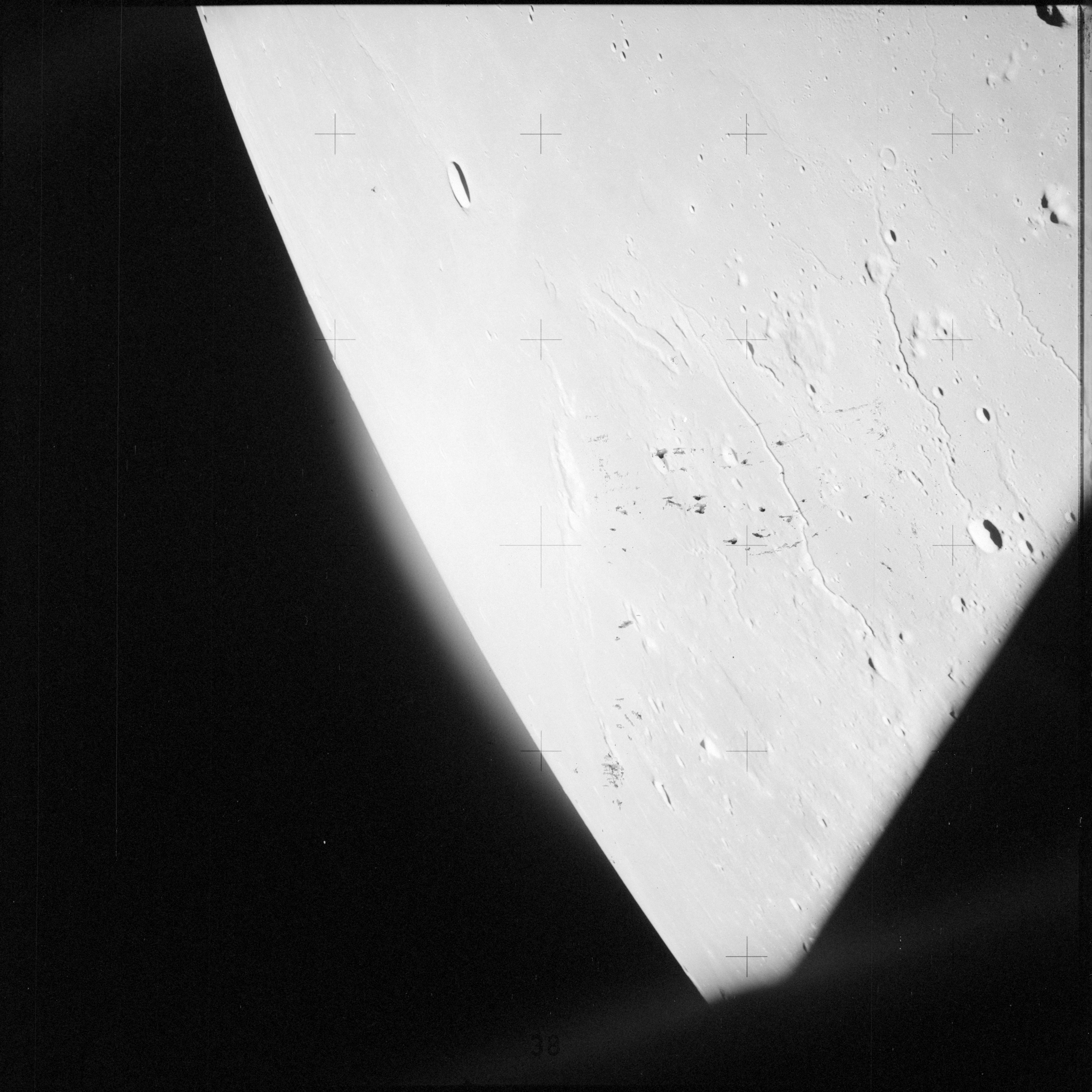 For half an hour, the crew have an exercise period. They then continue with some handheld photography of features on the far side, though rather than following the targets suggested in the Flight Plan, they elect to spread their picture-taking over this and the next orbit.