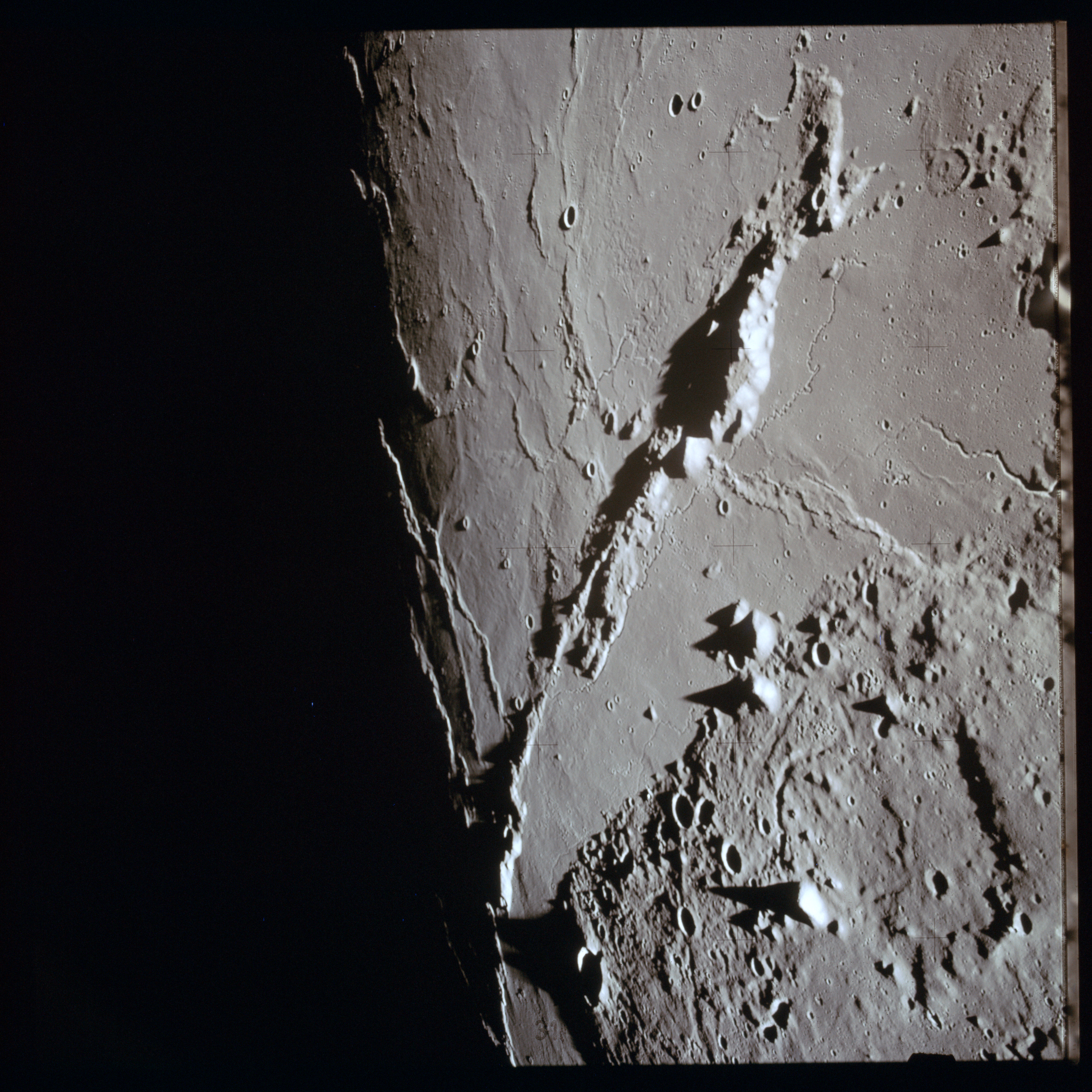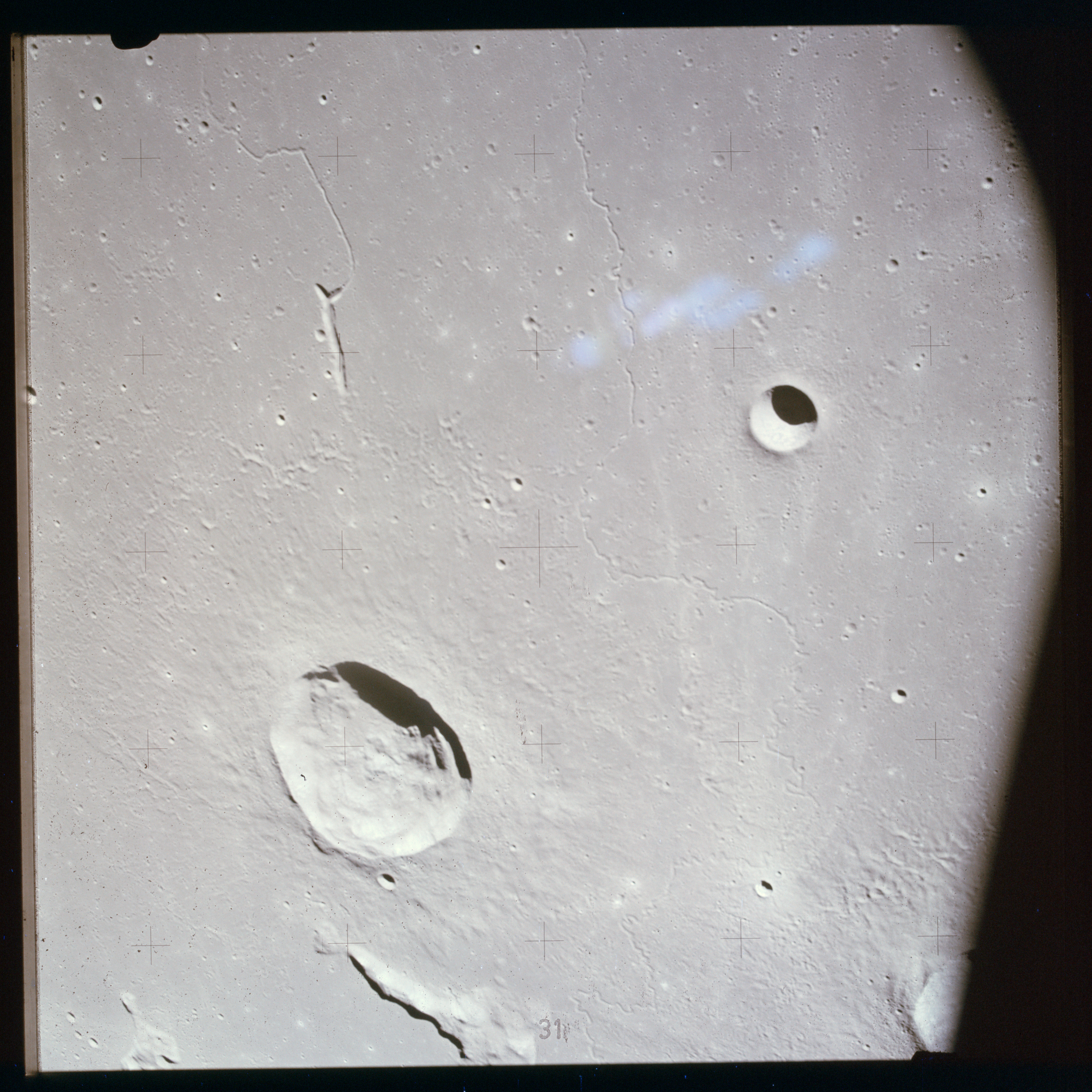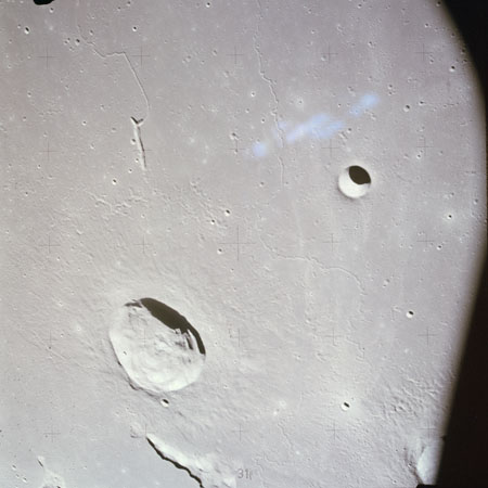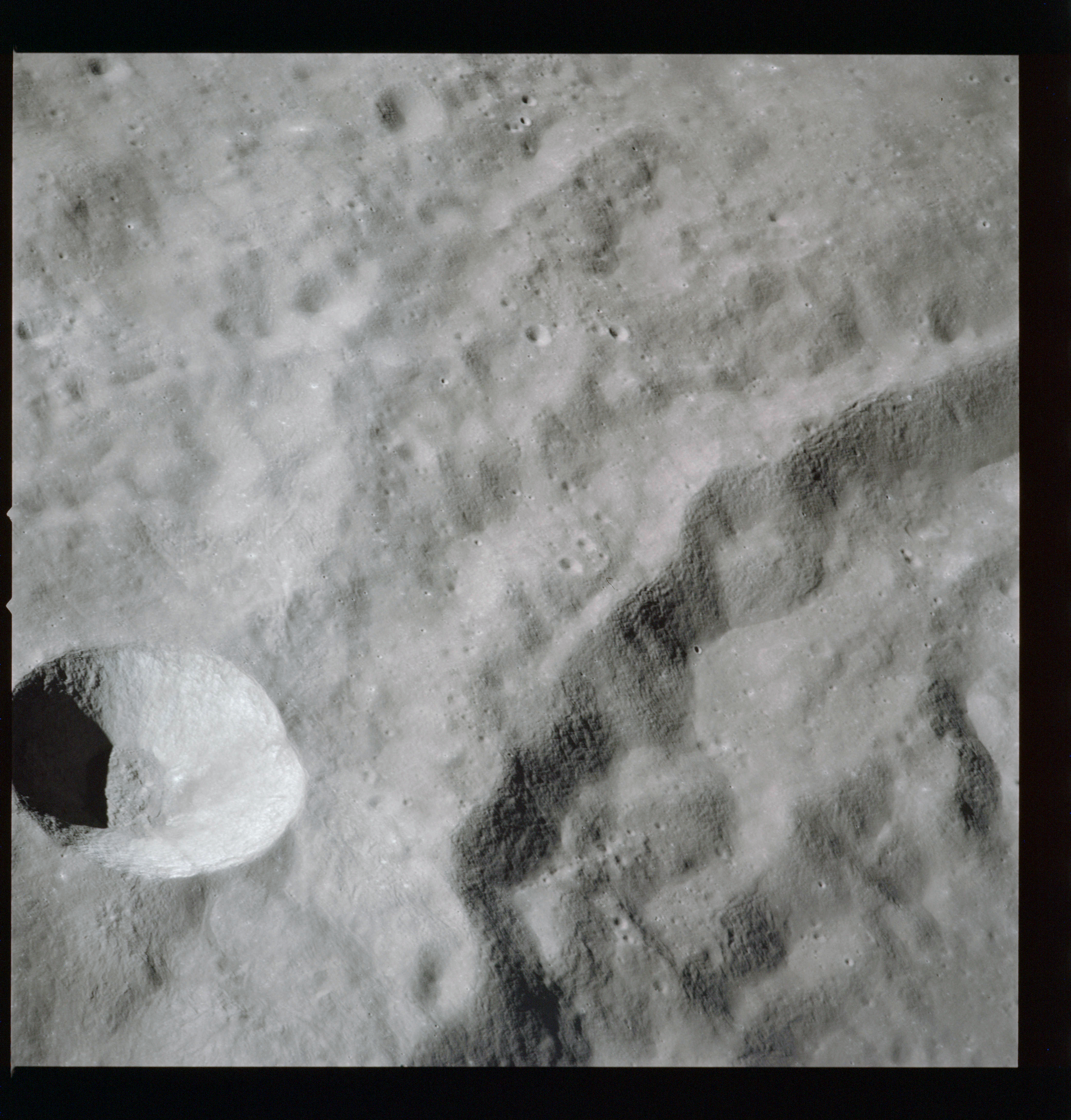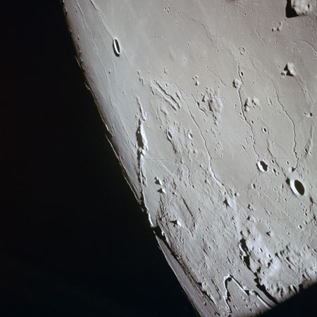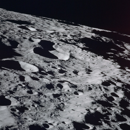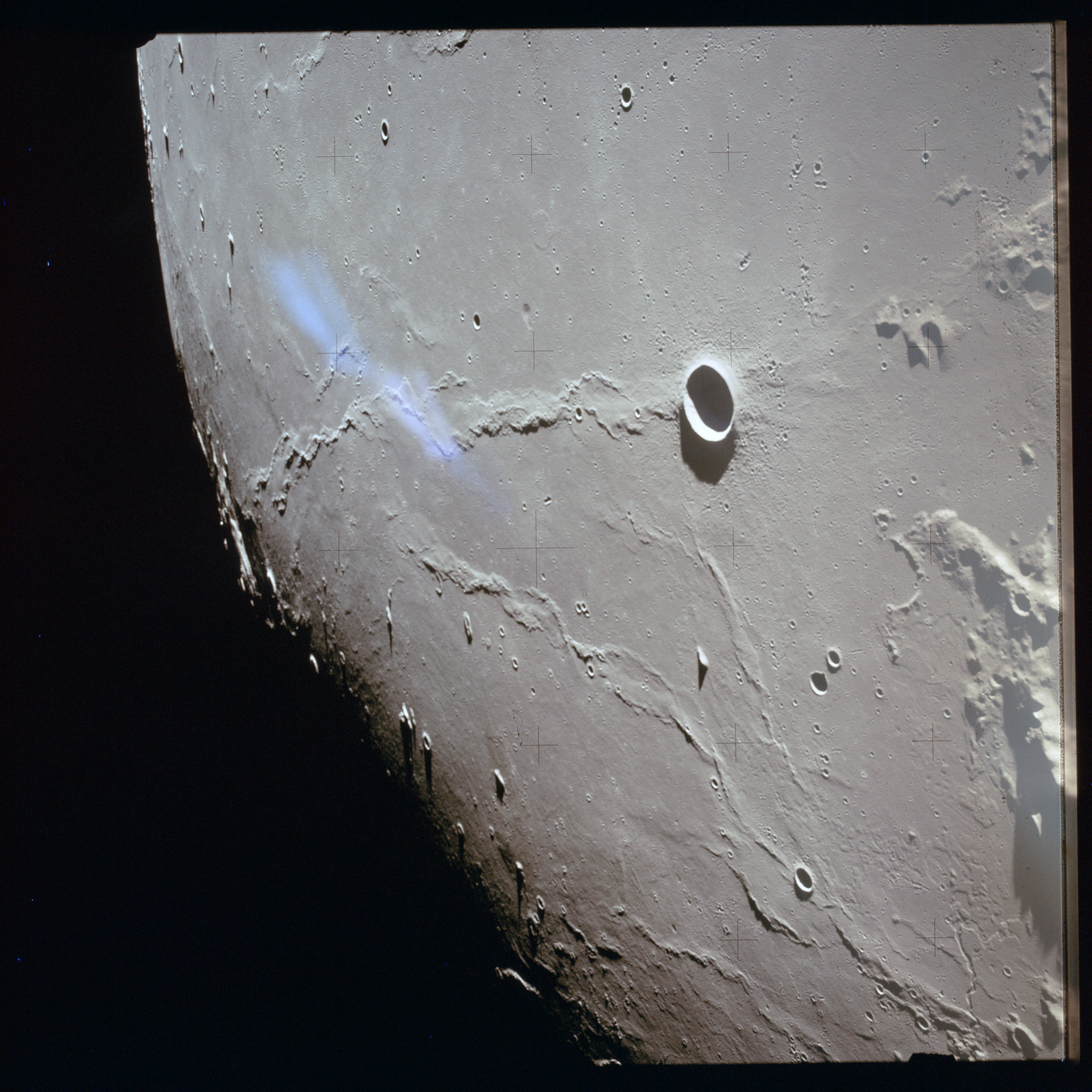 For half an hour, the crew have an exercise period. They then continue with some handheld photography of features on the far side, though rather than following the targets suggested in the Flight Plan, they elect to spread their picture-taking over this and the next orbit.