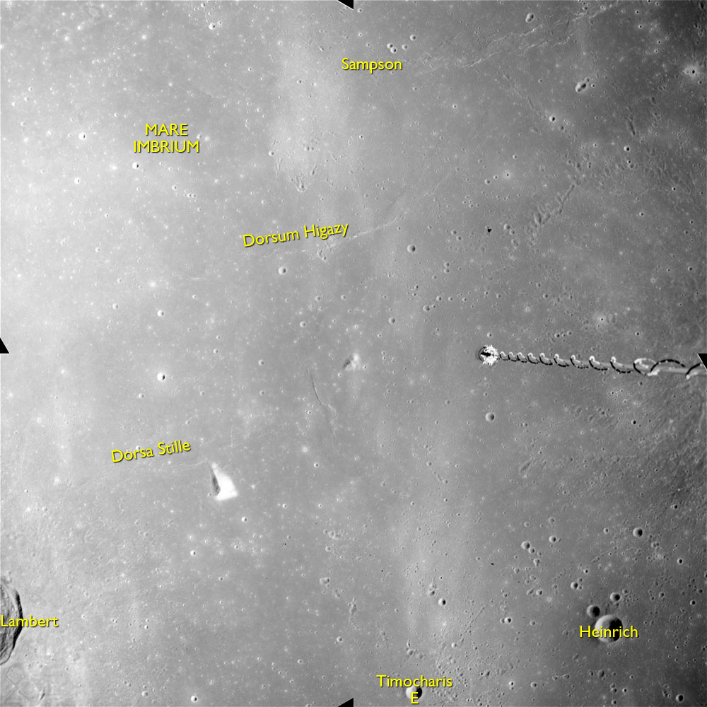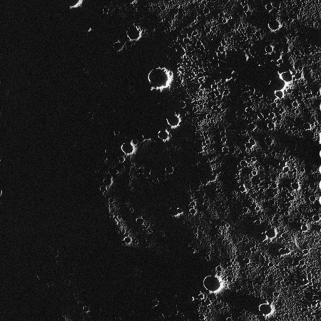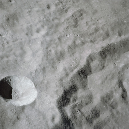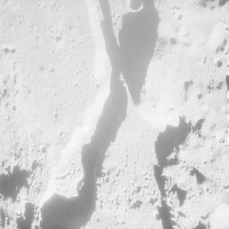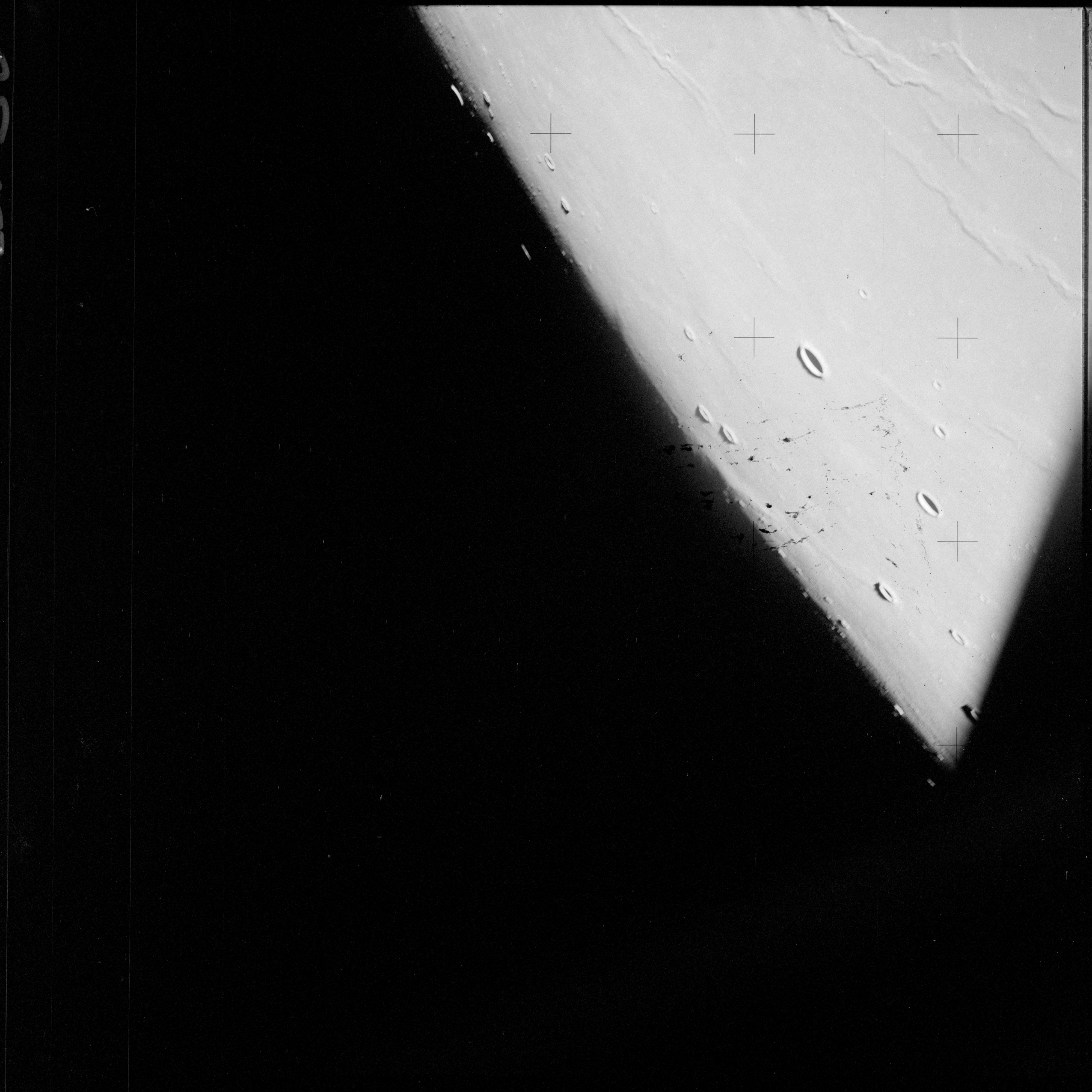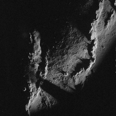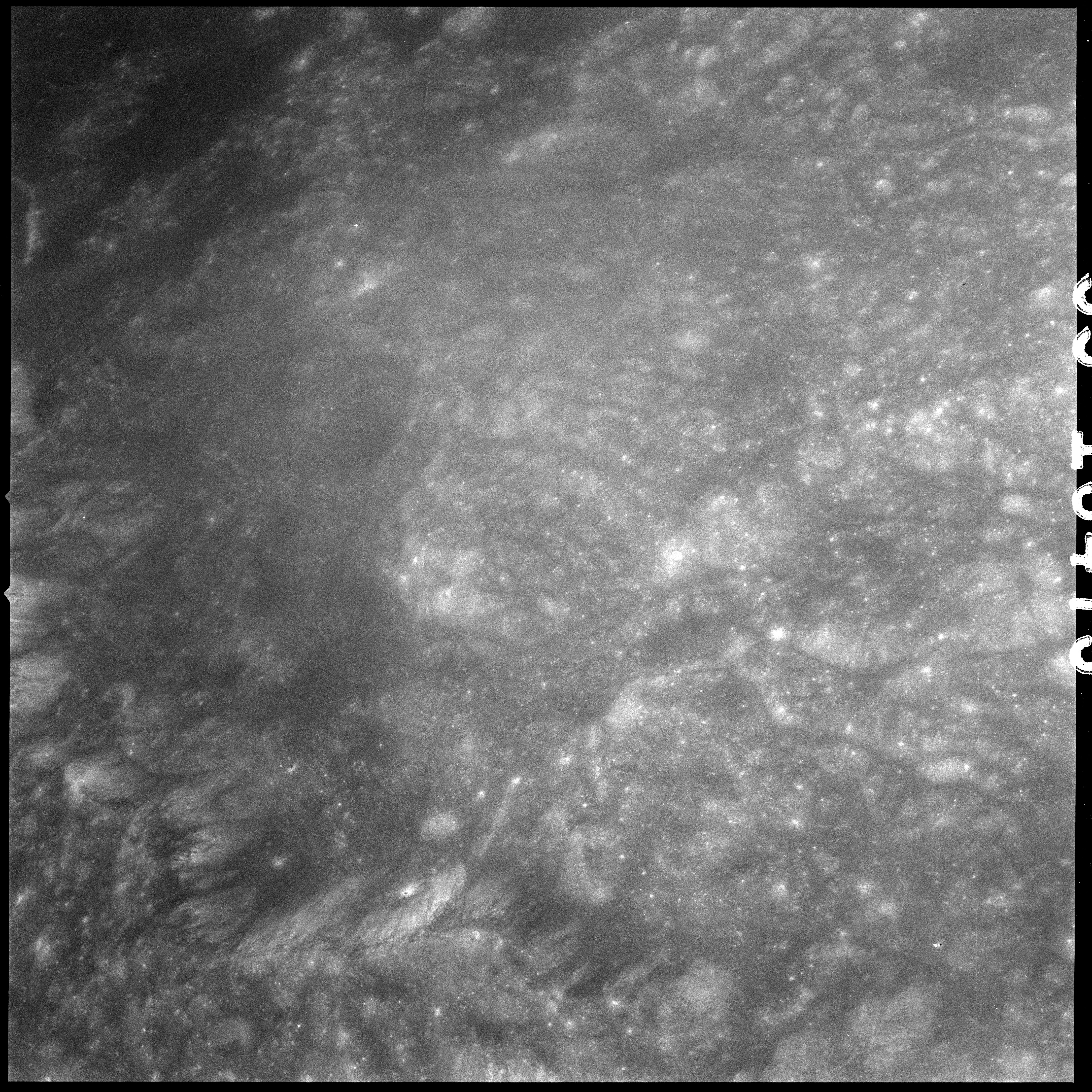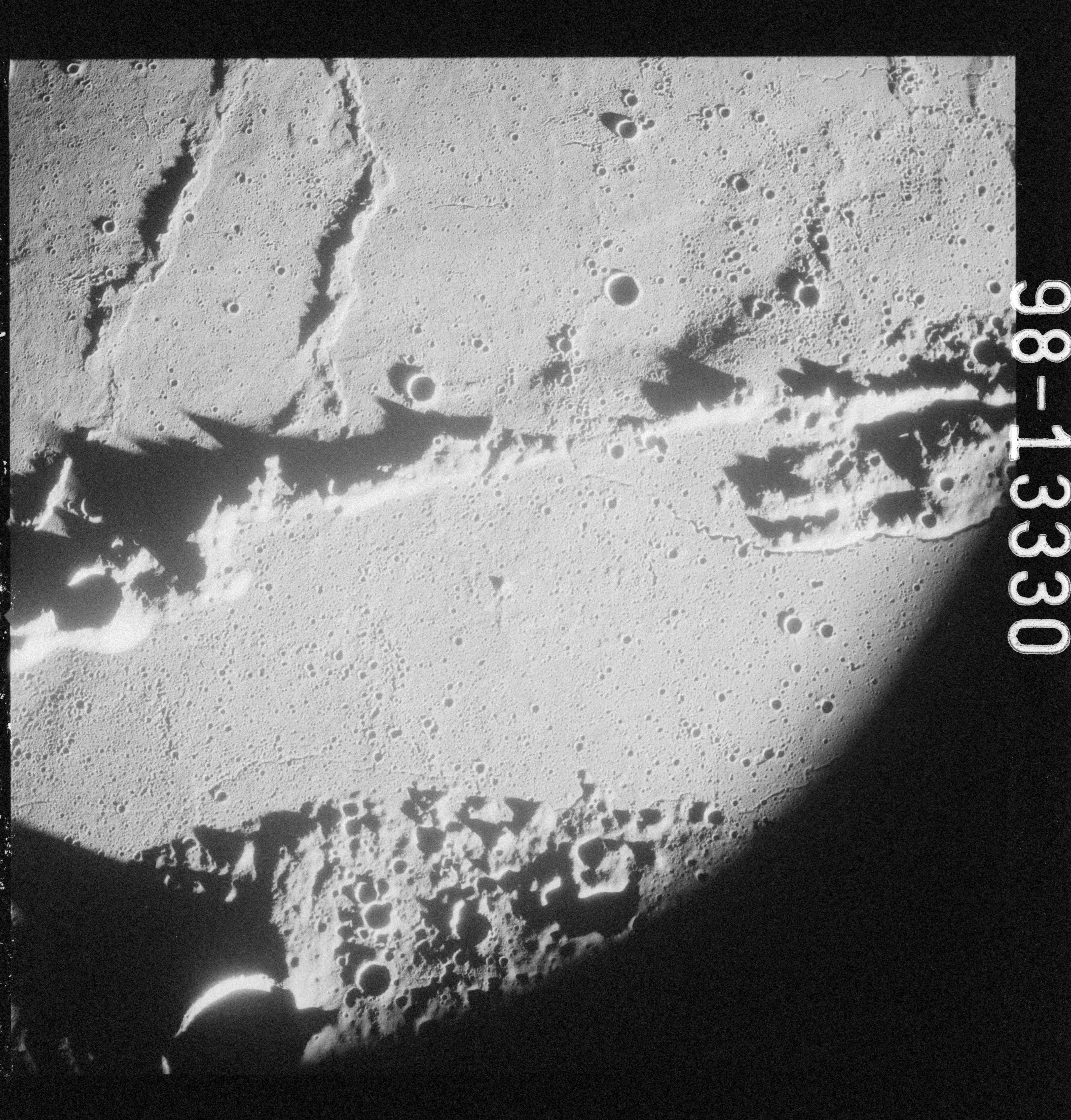 Endeavour should reach the sunrise terminator at about 203:27. As they approach and shadows lengthen, and starting at about 203:21, nine photos are taken on magazine PP of the vast expanse of Oceanus Procellarum.