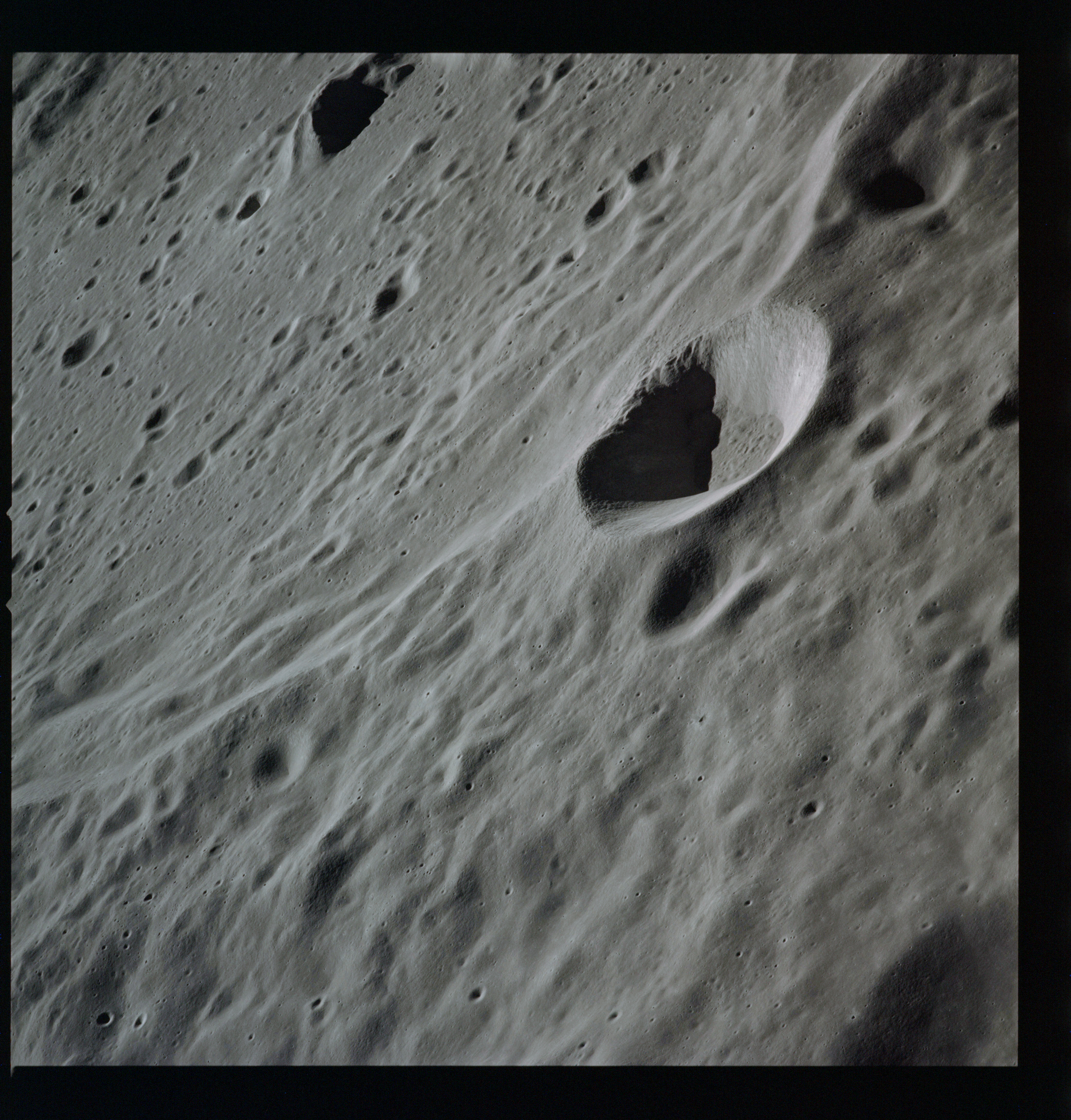 AS15-97-13189 - Unnamed crater beyond northwest rim of crater Sklodowska - Image by NASA/Johnson Space Center.