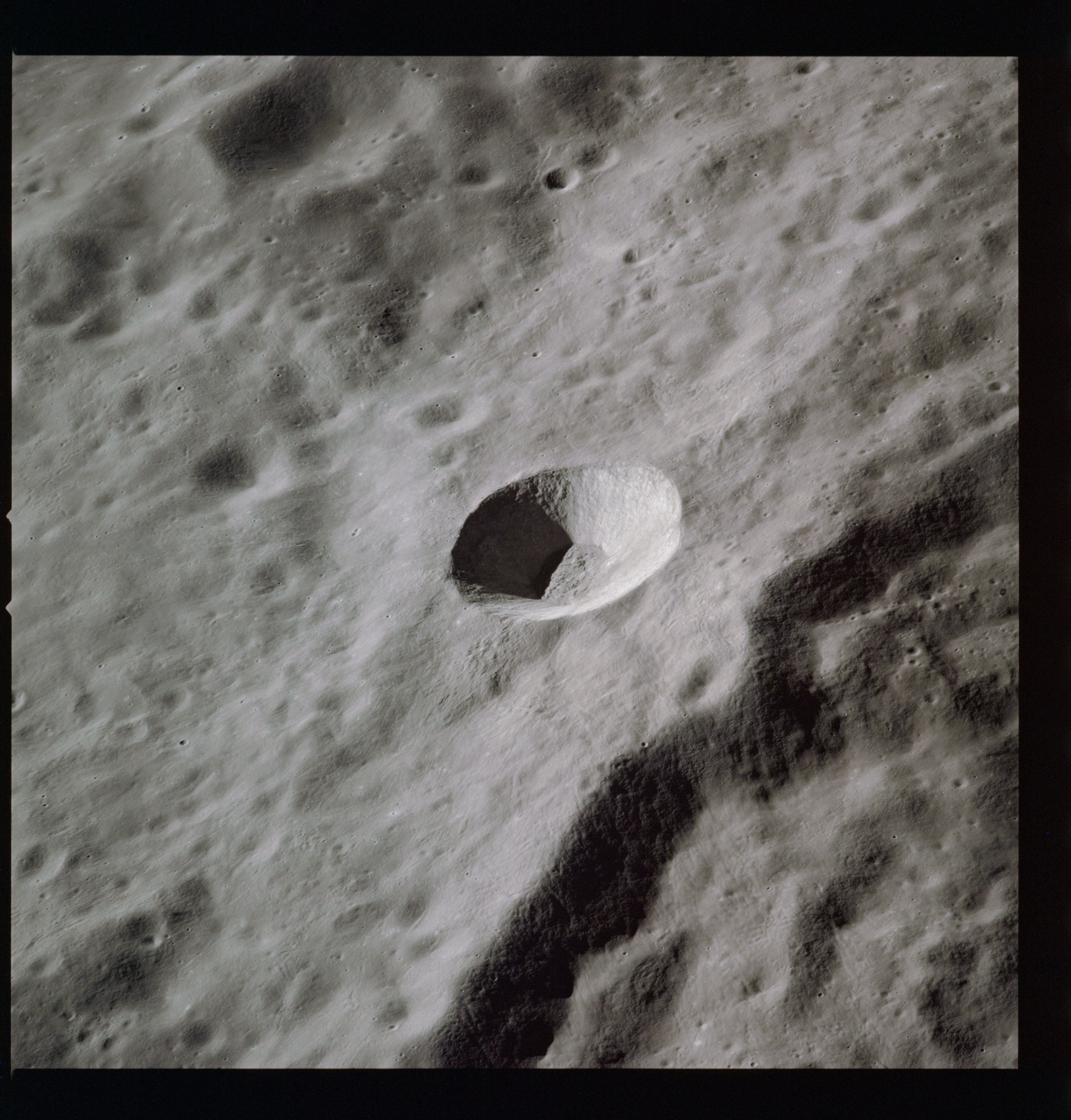 AS15-90-12281 - Mare Tranquillitatis. Crater Taruntius F is lower left of centre - Image by NASA/Johnson Space Center.