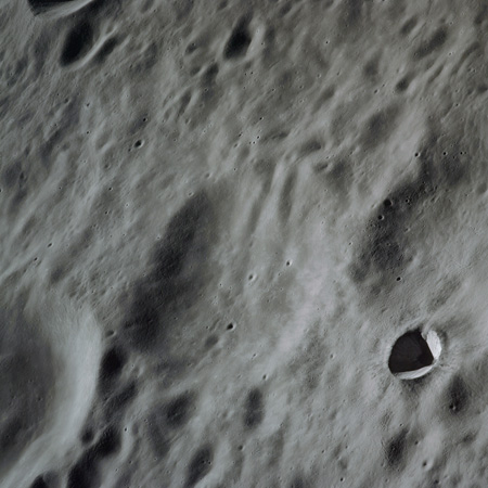 AS15-90-12278 - View south west across southeastern Mare Fecunditatis. Crater Lohse is at lower left edge, crater Al-Marrakushi is at right edge. Image is contrast stretched. Image without contrast stretching - Image by NASA/Johnson Space Center.