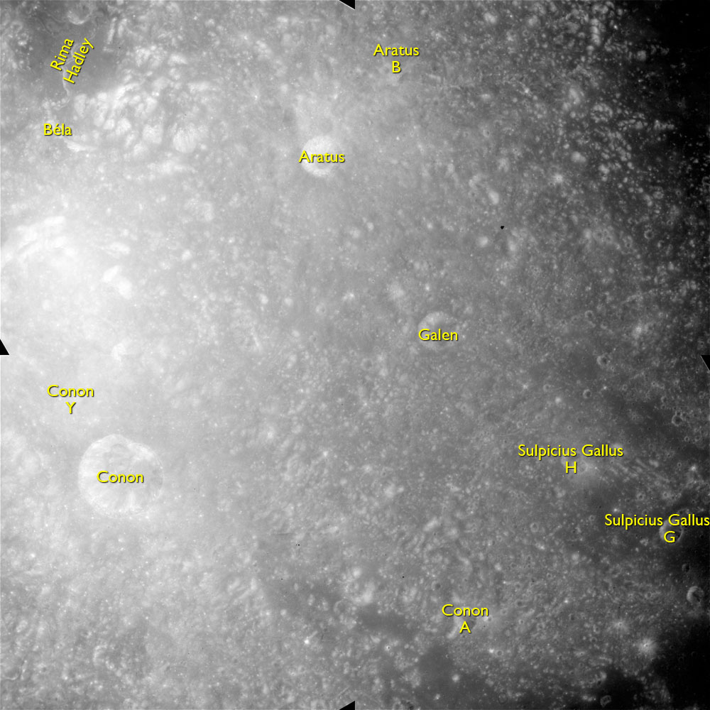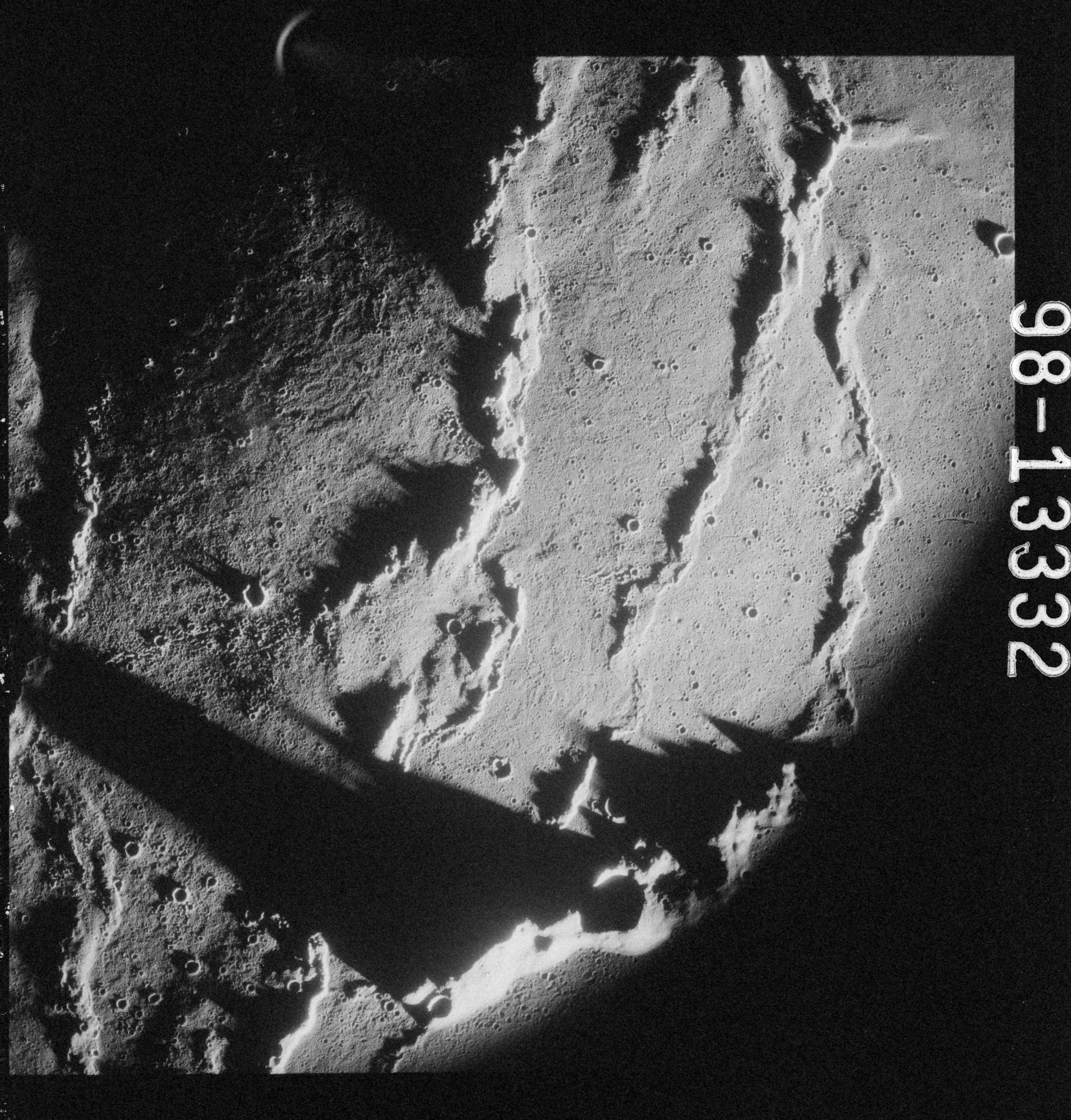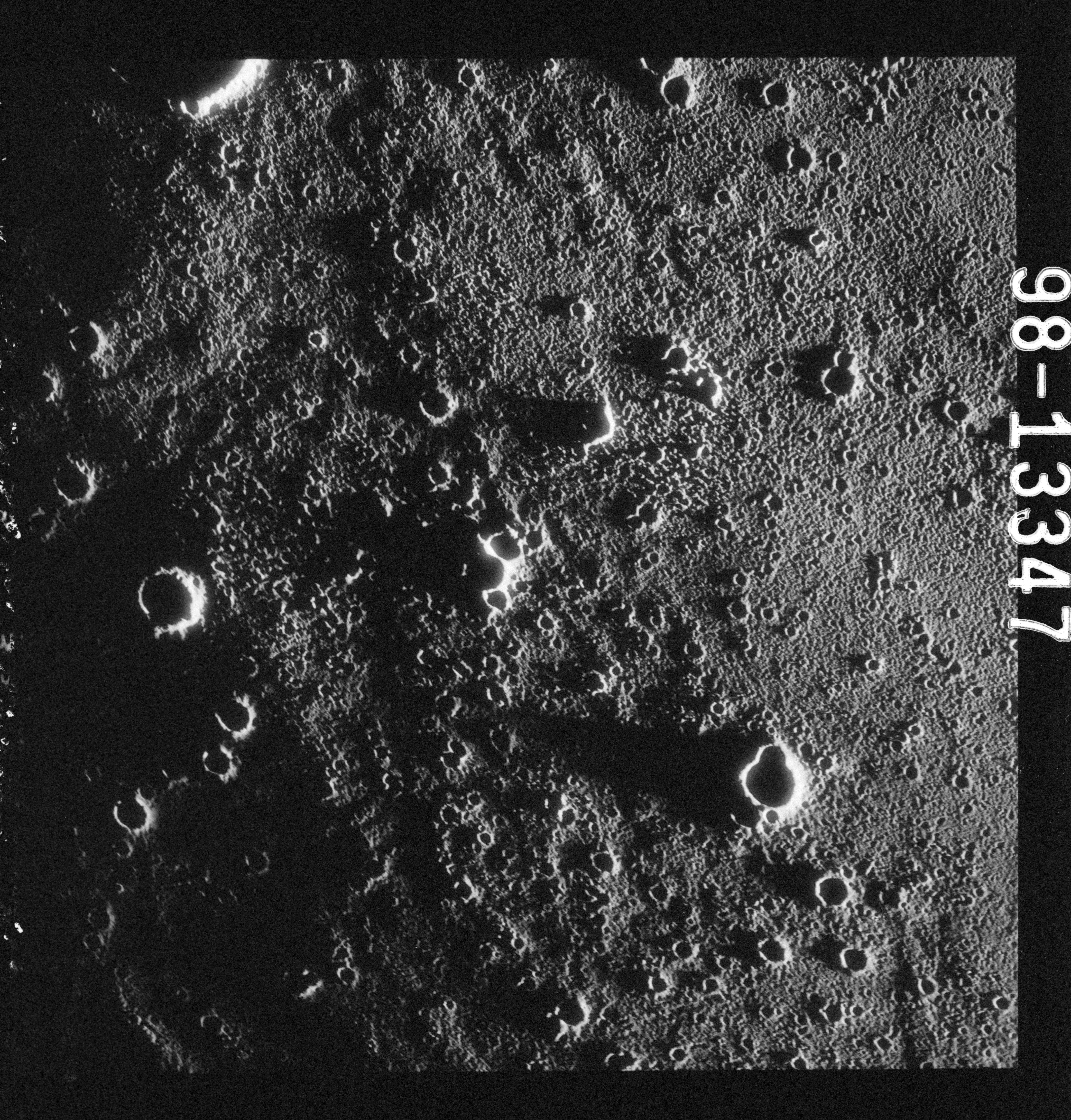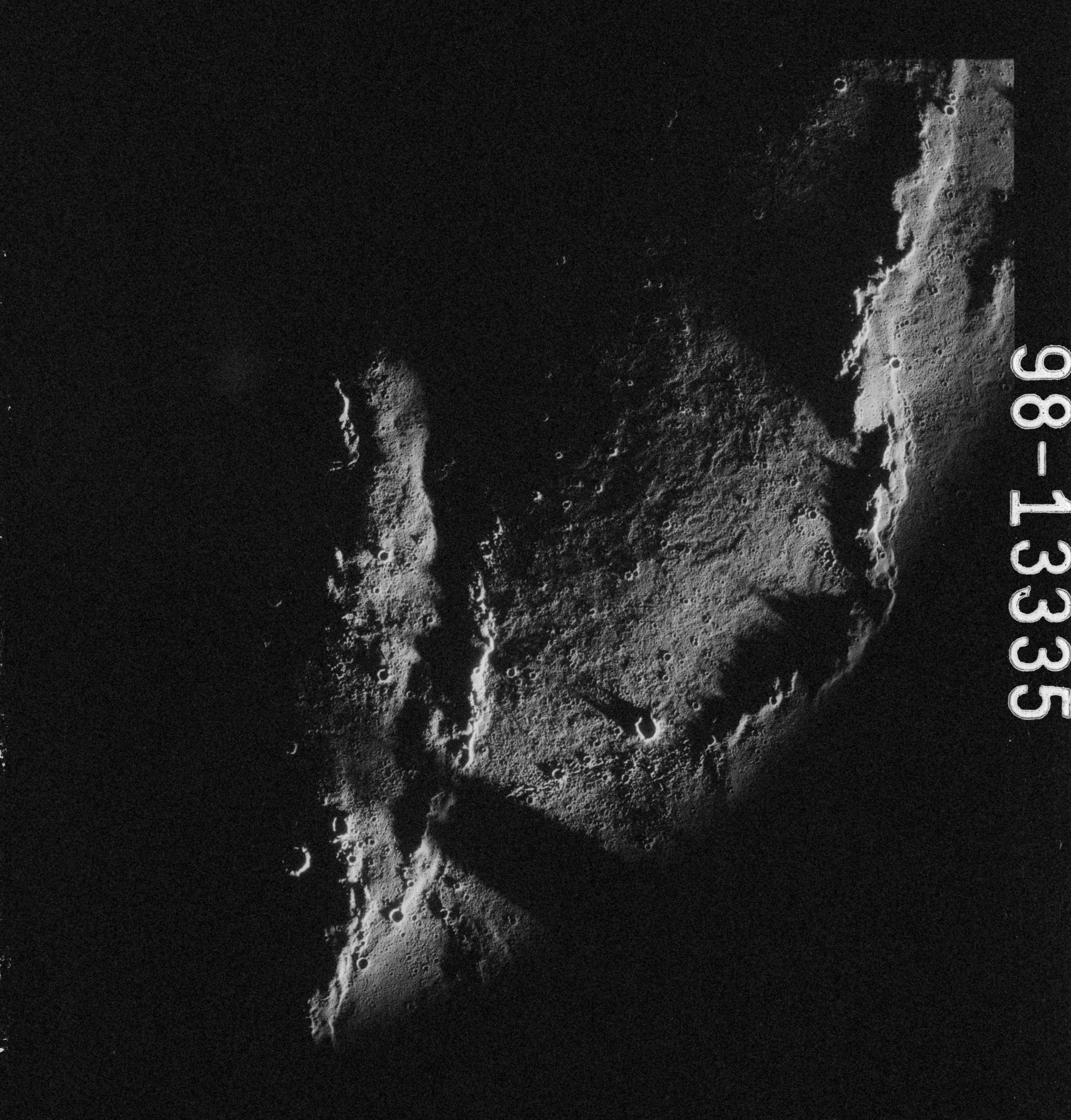 The first five images of this sequence look towards their northern horizon and across the crater Kondratyuk. With two smaller, but not insubstantial craters on either side of its floor, Kondratyuk is distinctive and is best seen in AS15-97-13177.