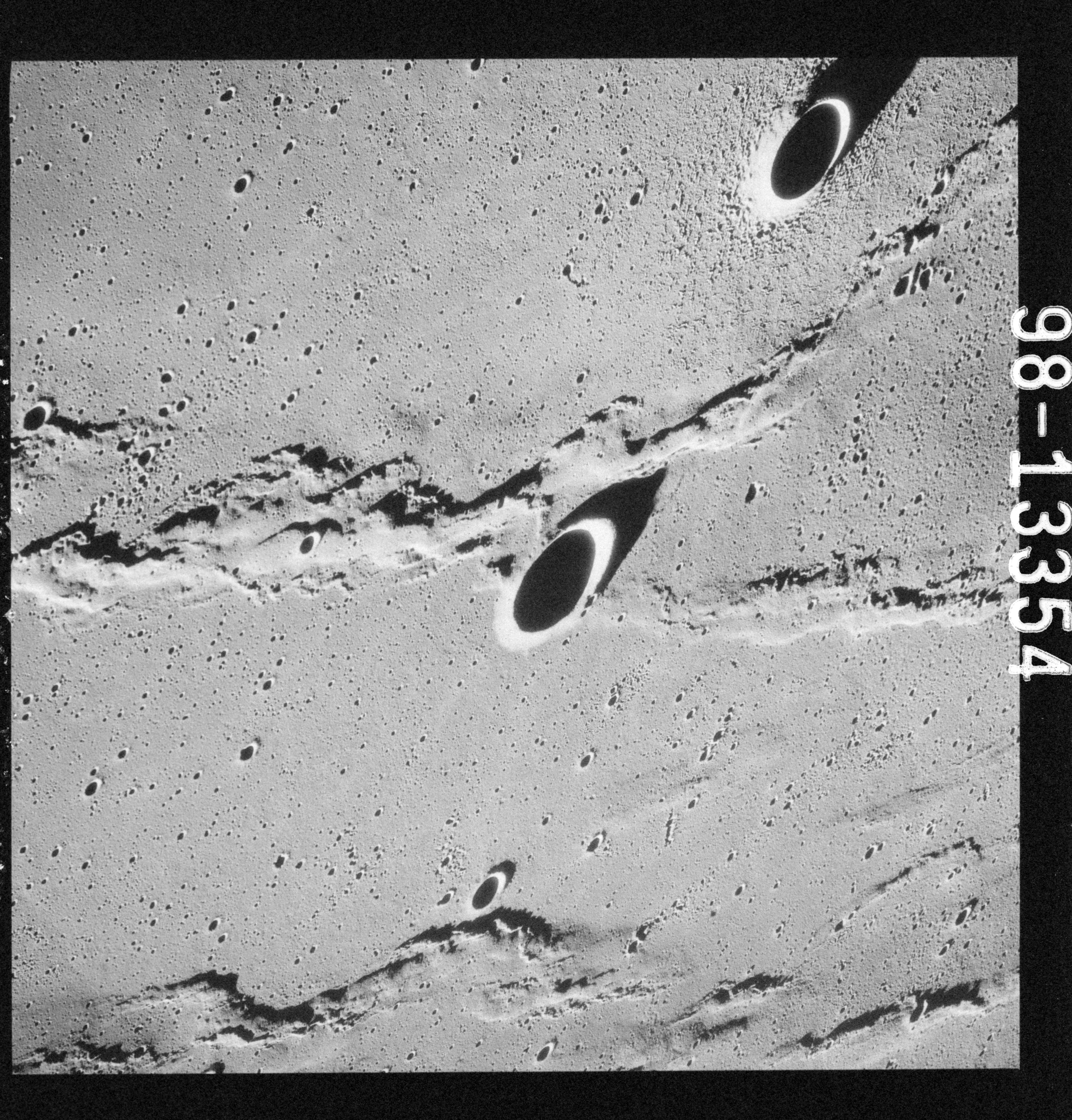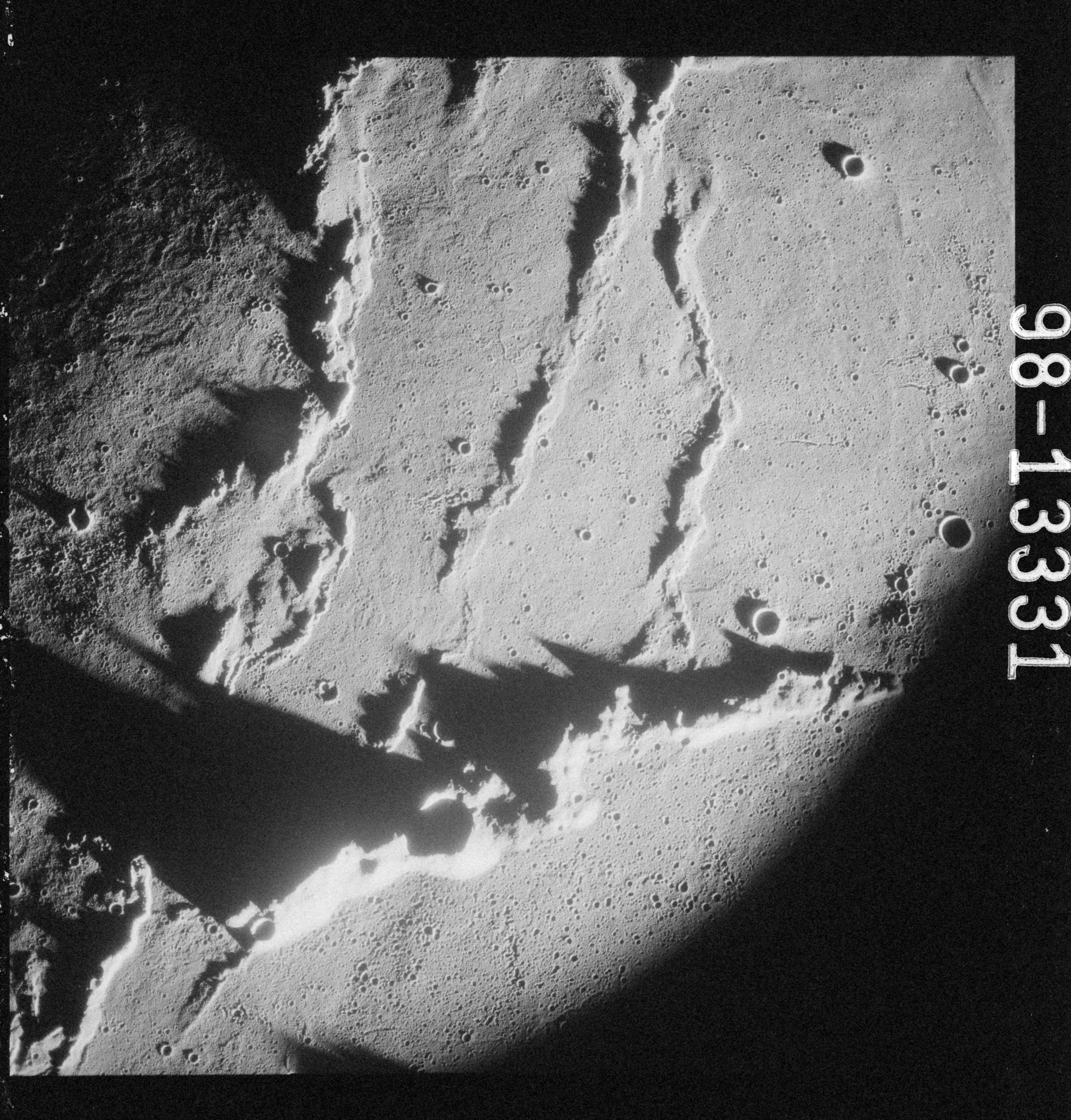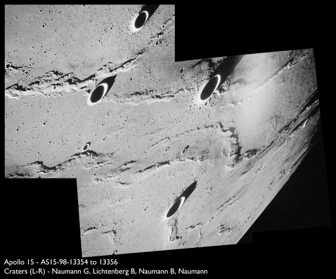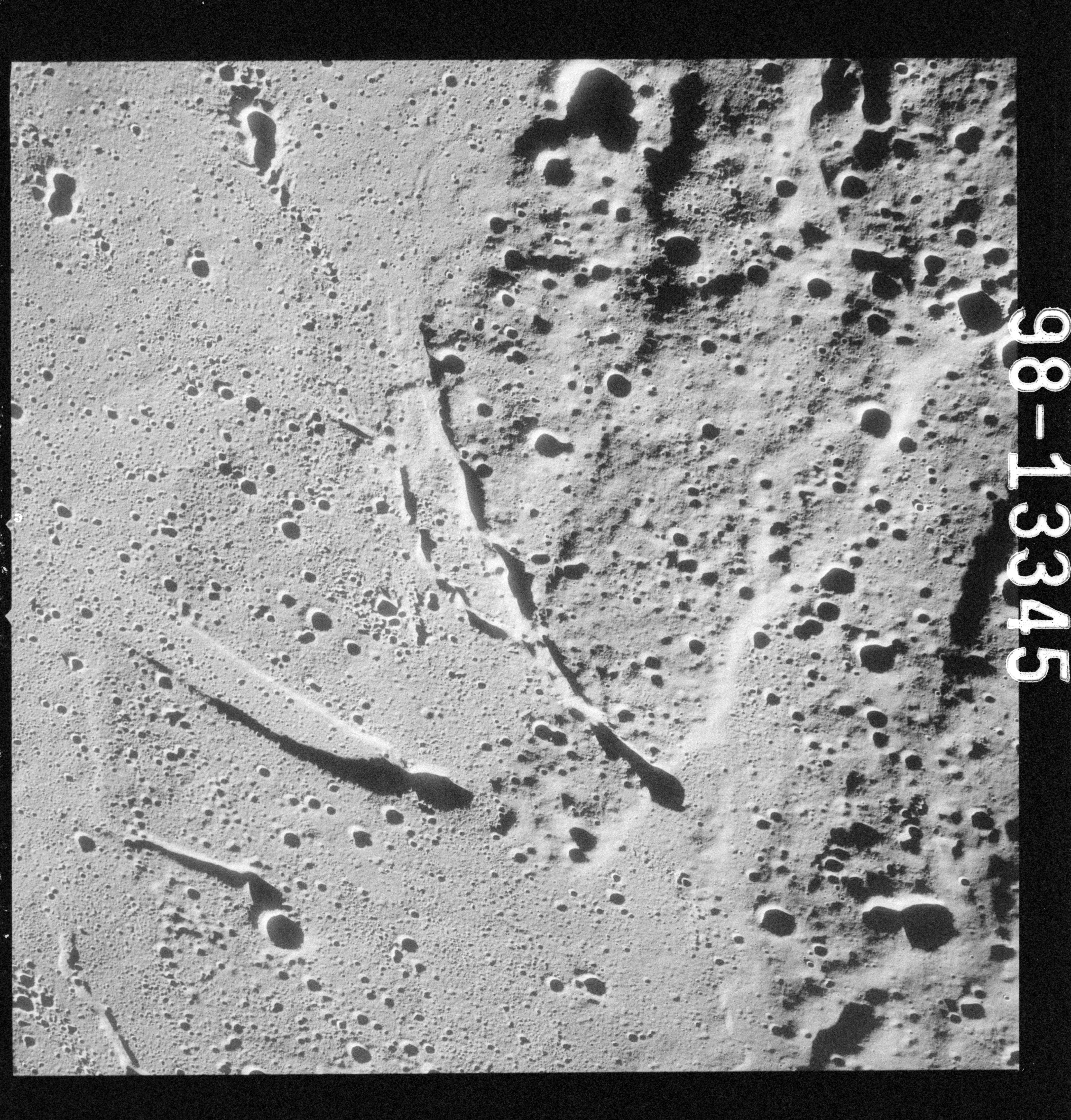 The first five images of this sequence look towards their northern horizon and across the crater Kondratyuk. With two smaller, but not insubstantial craters on either side of its floor, Kondratyuk is distinctive and is best seen in AS15-97-13177.