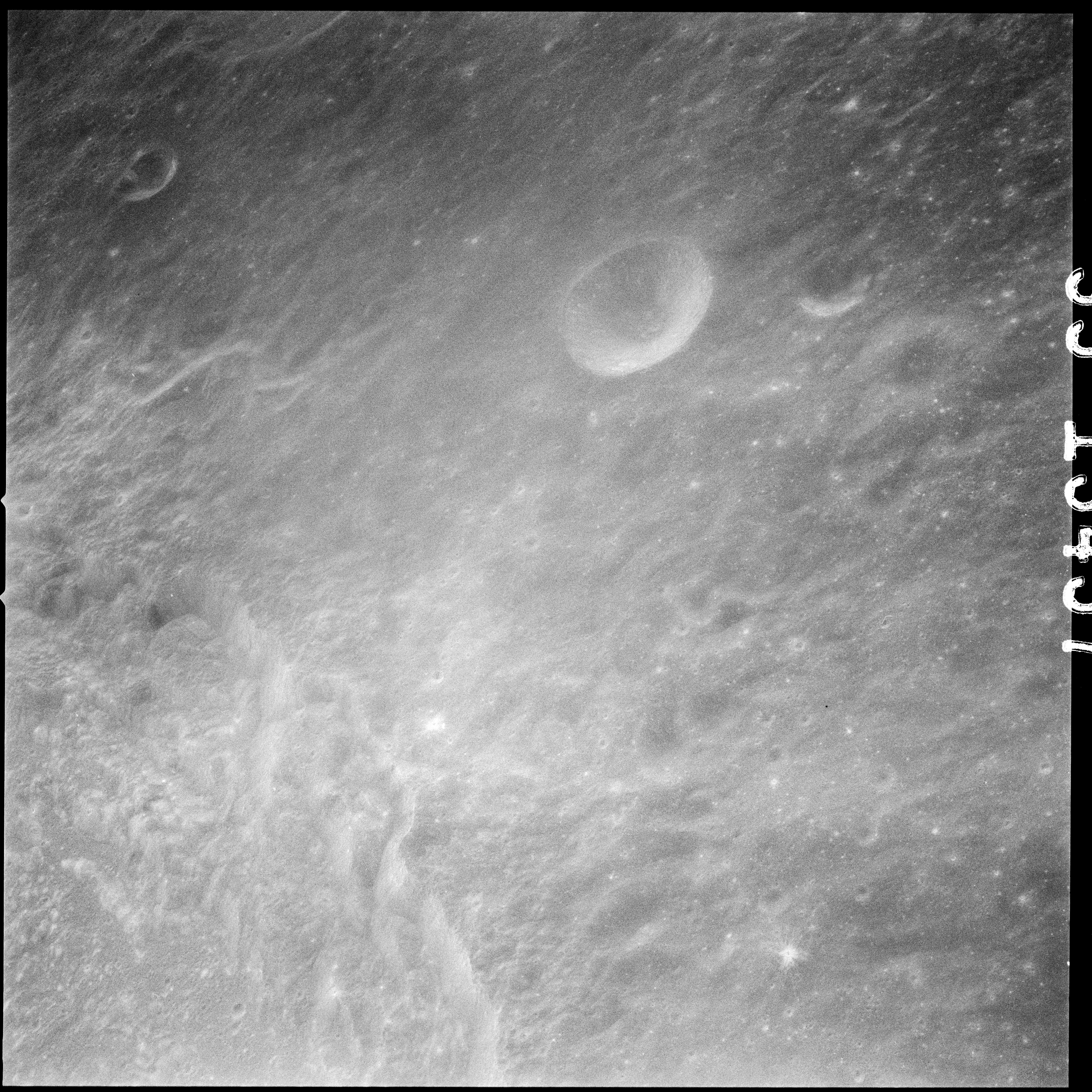The next 11 images, AS15-97-13183 to 13193 scan across the 127-km crater Sklodowska travelling in a SE-NW direction. Not far away from this feature is the slightly larger crater, Curie, which gives a hint of where the former got its name, for Sklodowska is the maiden name of Marie Curie, 1867-1934, the Polish physicist and chemist who twice won the Nobel prize, first in physics along with her husband Pierre for whom the other crater is named, and then in chemistry.