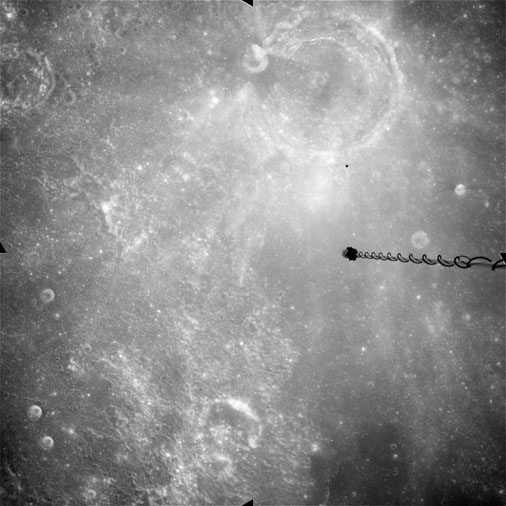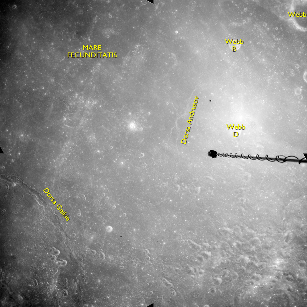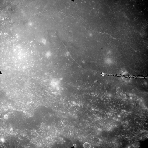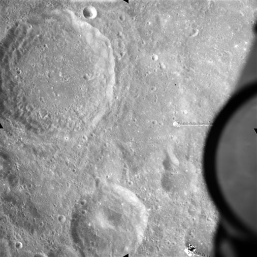 Before reaching their target, they take an excellent image of crater Koval'sky P which obscures the entire southwest rim of Kovalsky.
