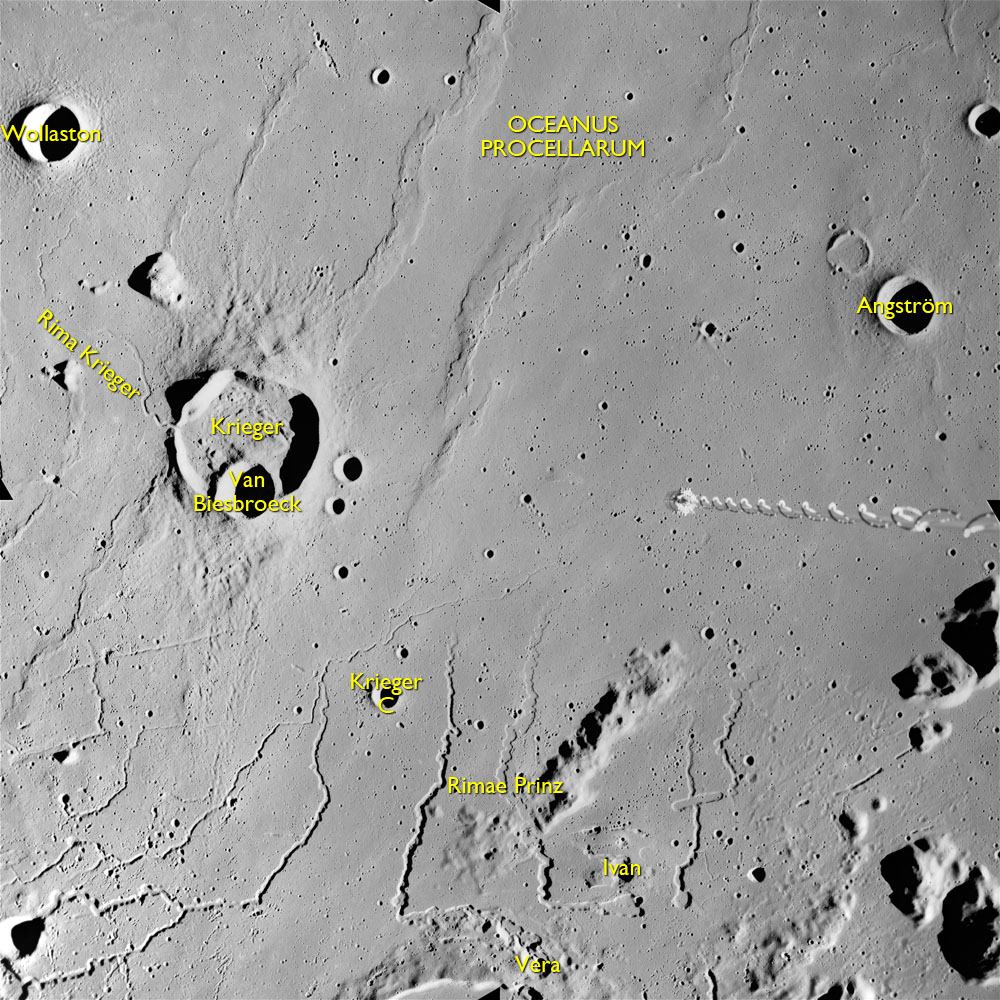 AS15-90-12284 - Oceanus Procellarum, including crater Ångström - Image by NASA/Johnson Space Center.