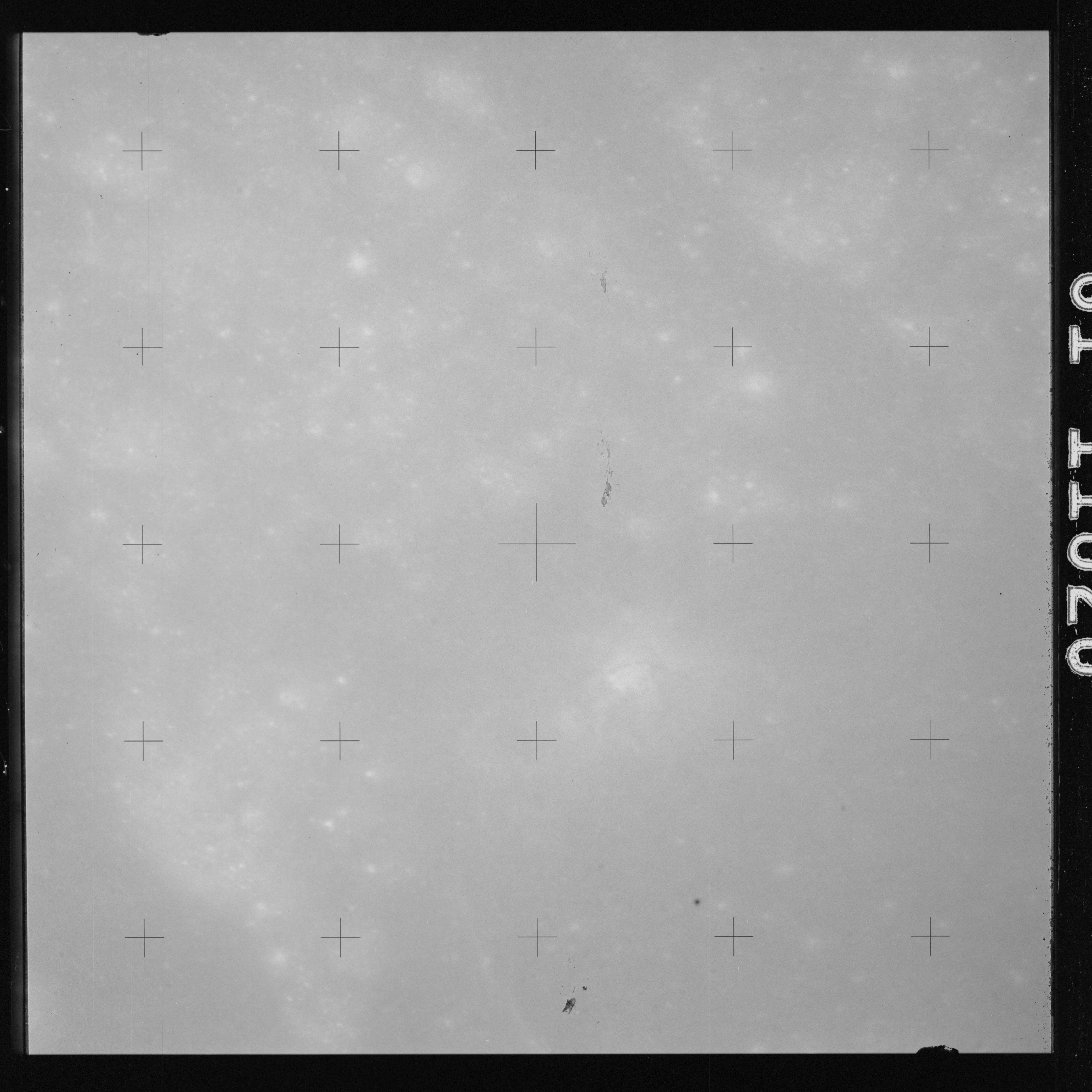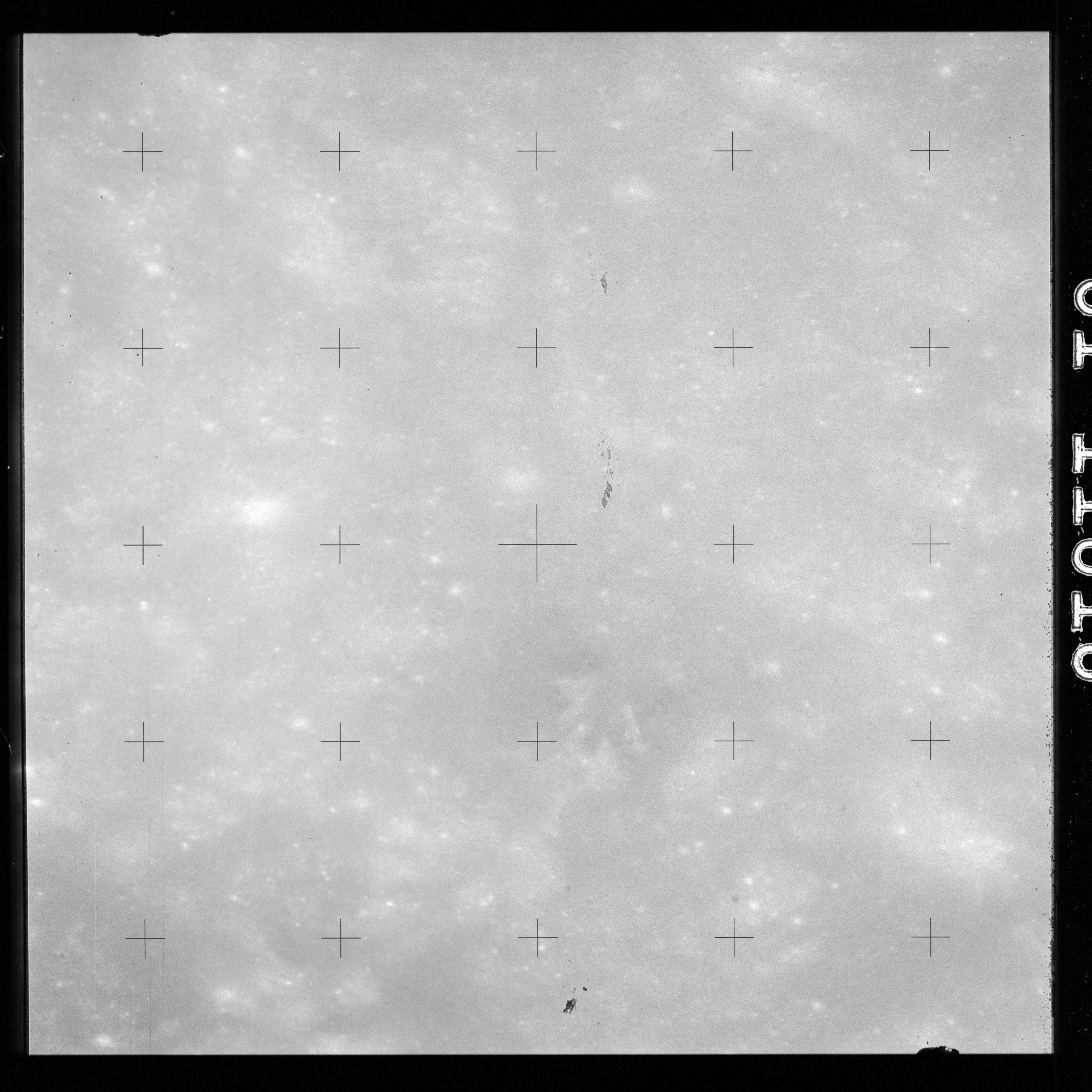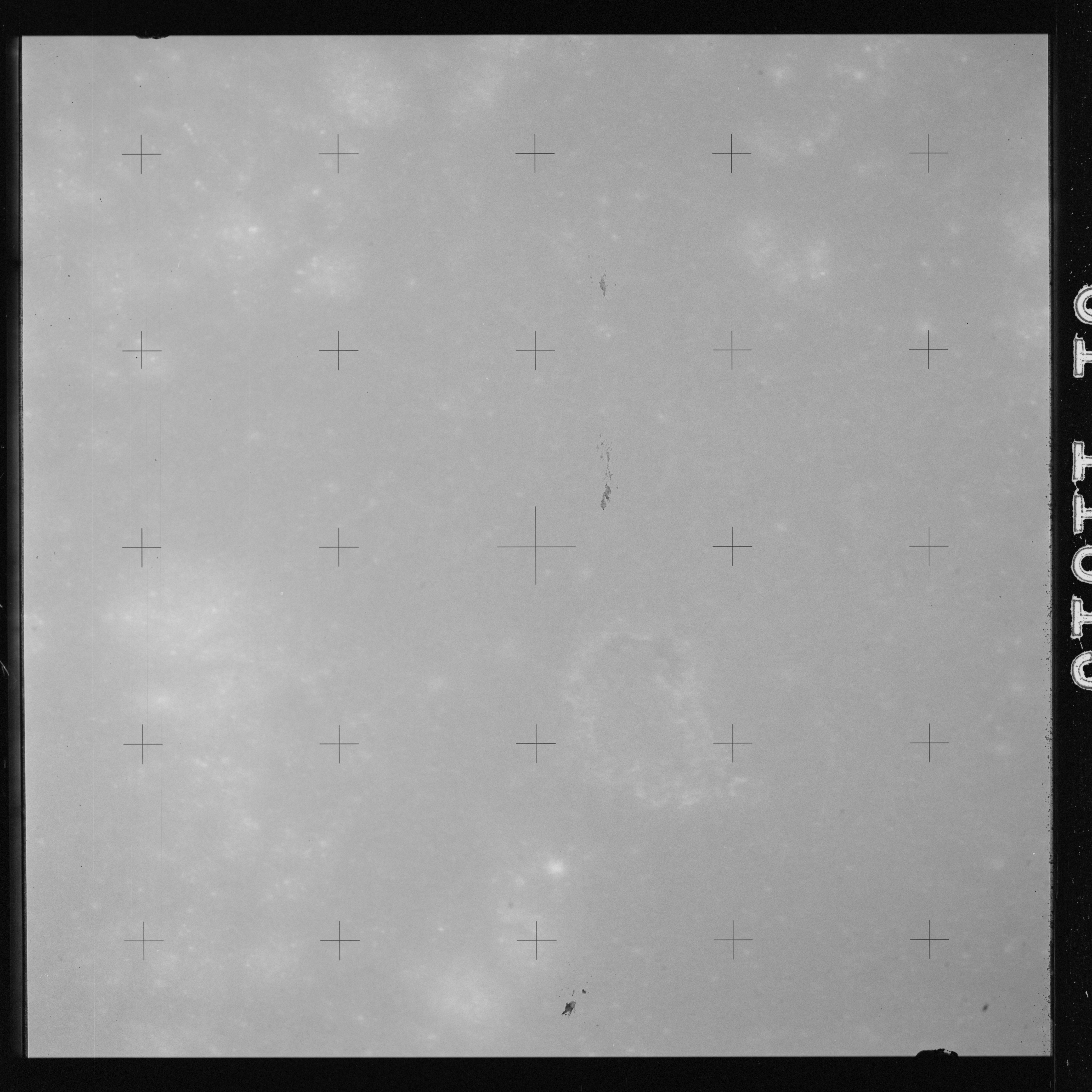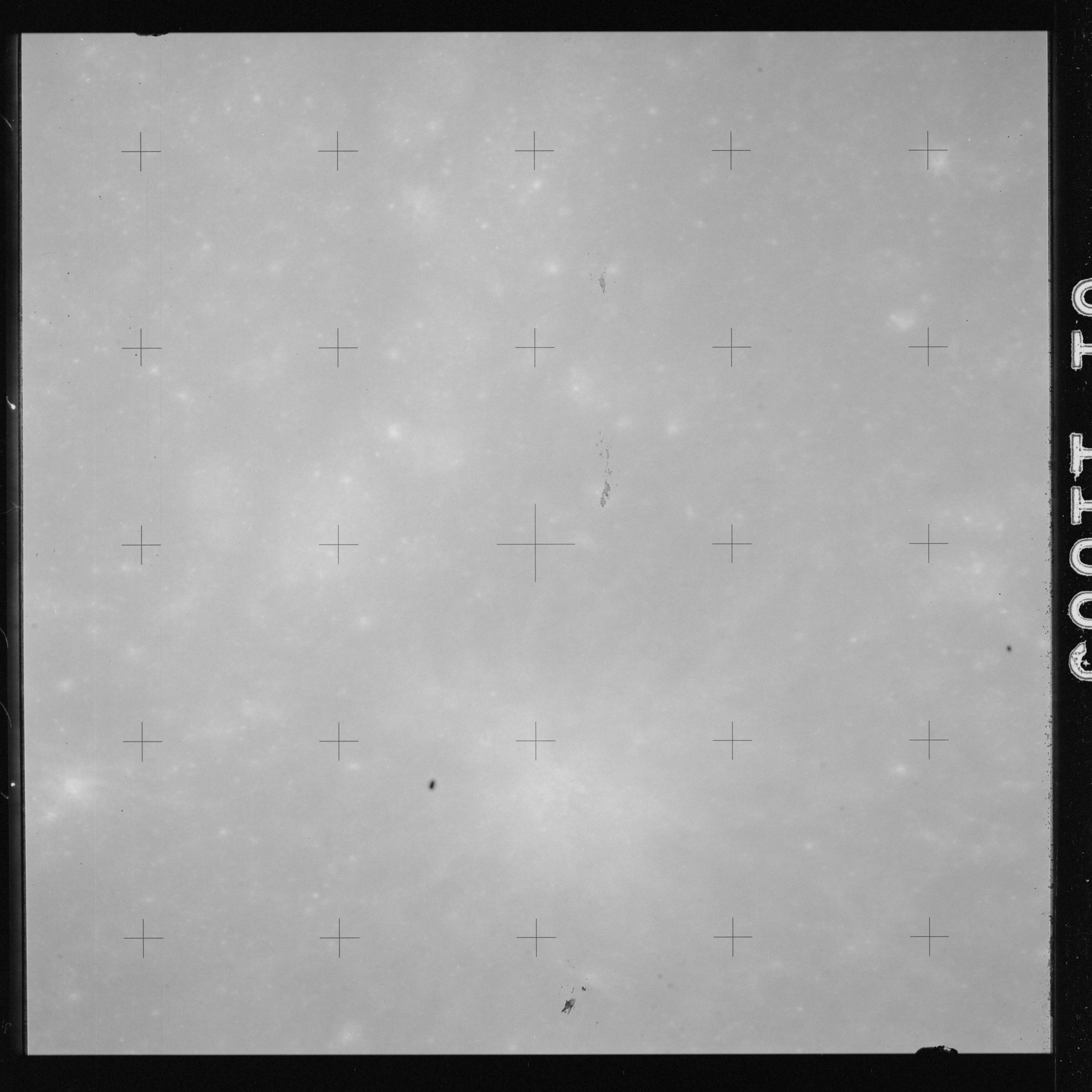 Using colour film in magazine PP and its wide-angle lens, AS15-90-12299 begins a sequence of four images which allow the spacecraft's motion to track the camera across the western Mare Imbrium. The contamination on the Réseau plate of this camera is very apparent.