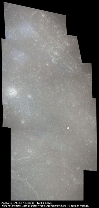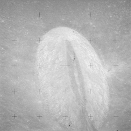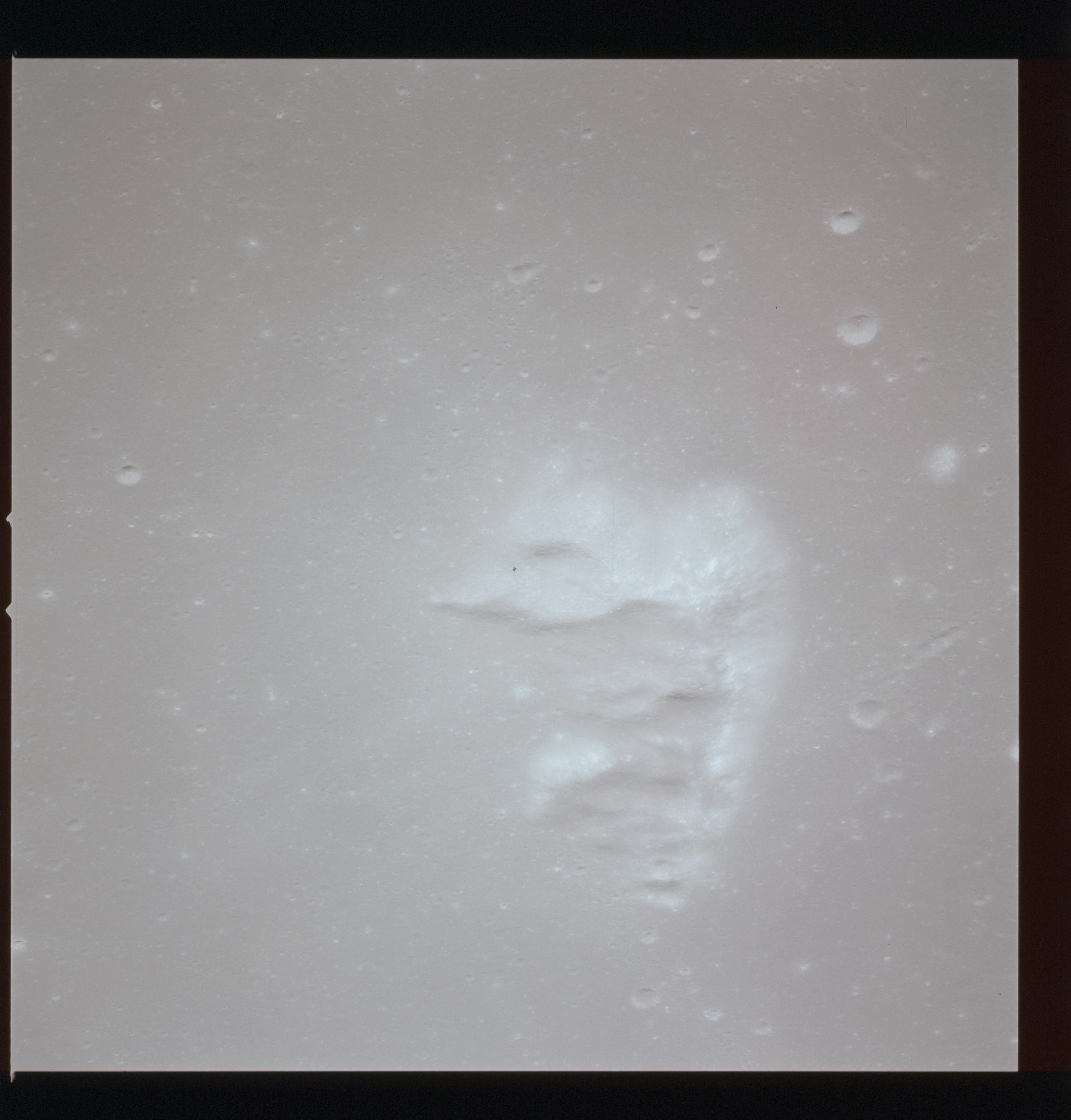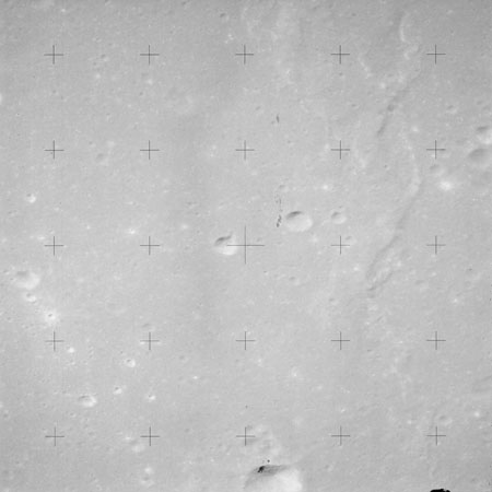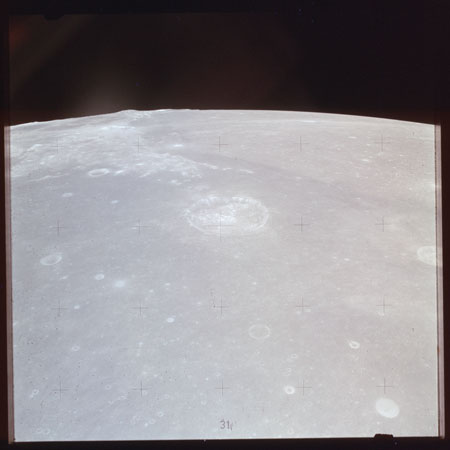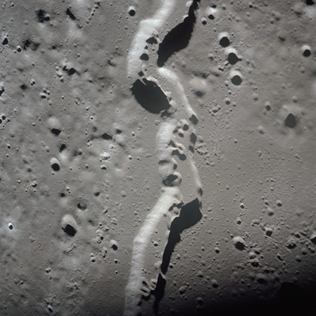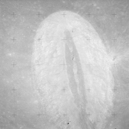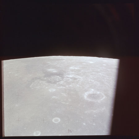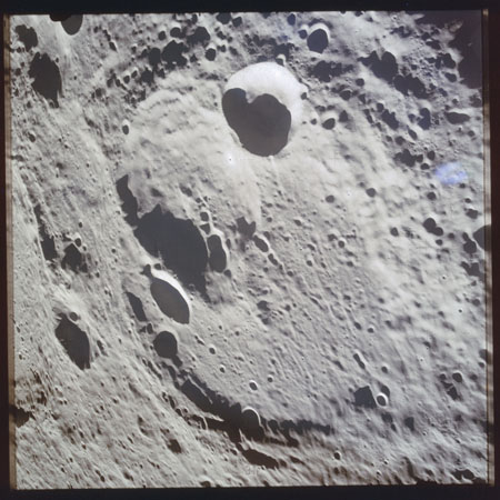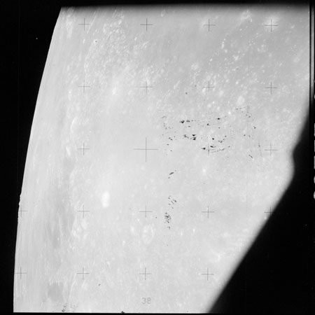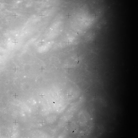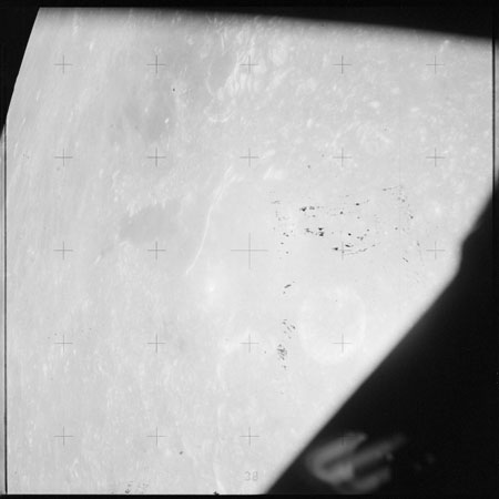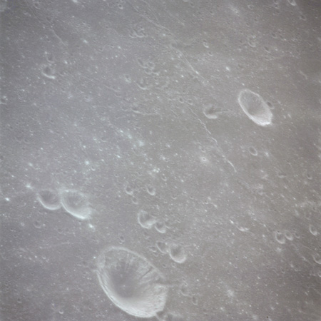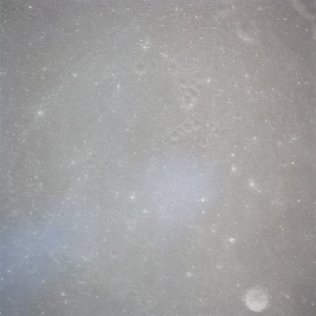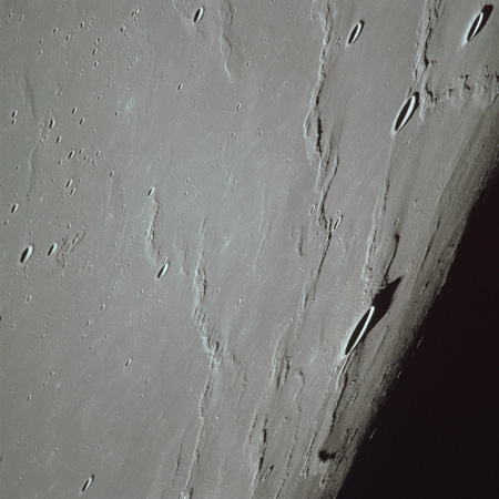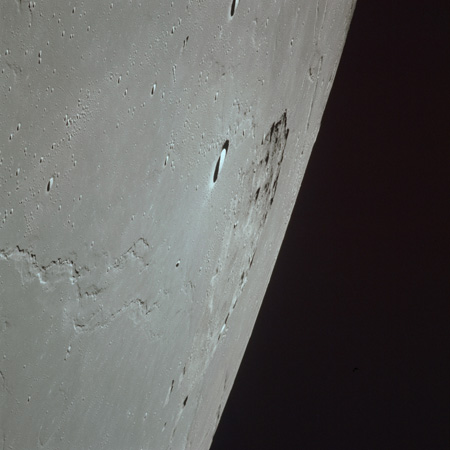 The 'Apollo 15 Index of 70-mm Photography' lists a sequence of 22 photographs as having been taken at any time between revolutions 64 and 72, the photo analysts having been unable to tie the exposures down more accurately. They were taken on magazine TT with a 60mm lens and are AS15-88-11985 to 12006. This seems as good a time as any to discuss these images.