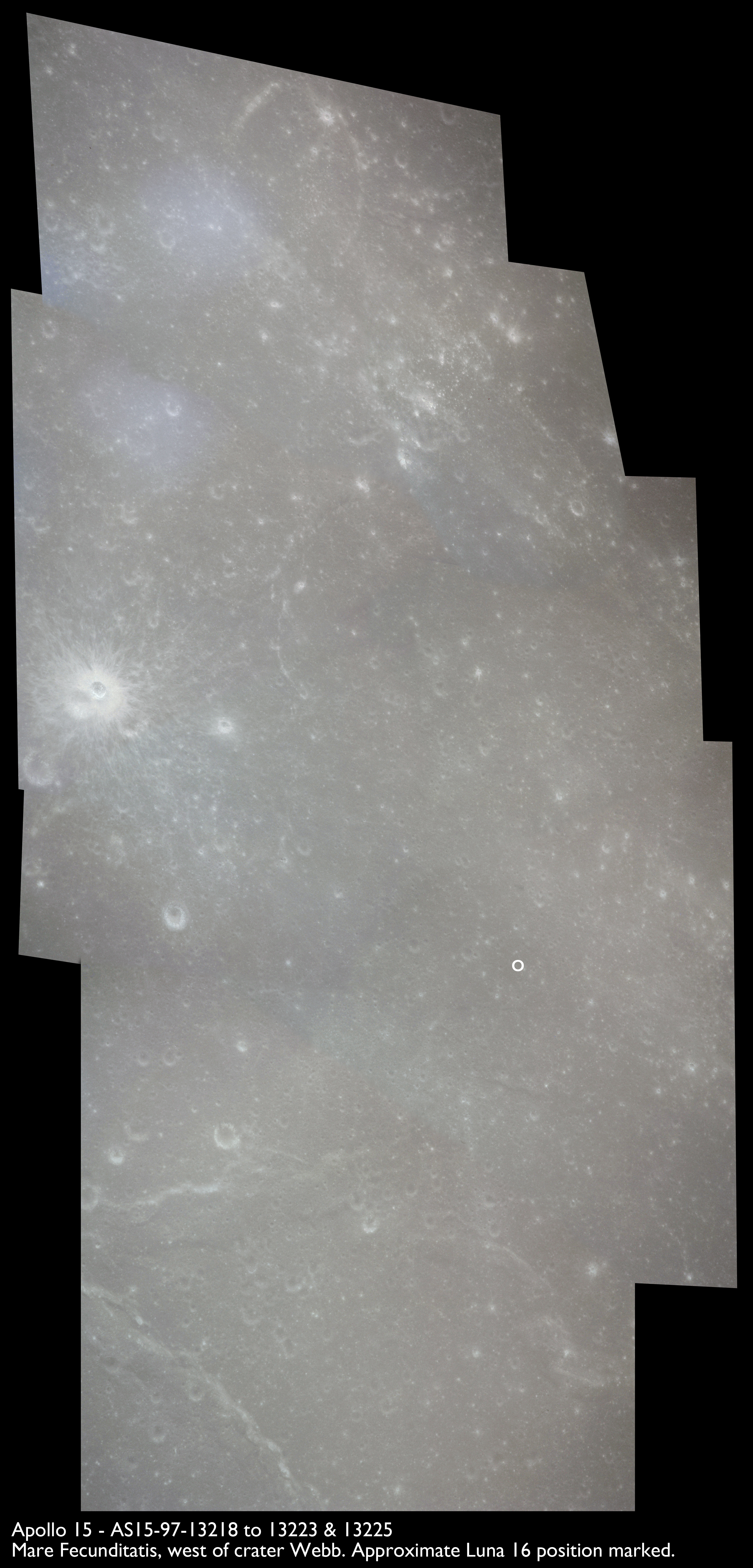 The photography now looks northwest across Oceanus Procellarum. Of much interest to lunar geologists before Apollo were the "special features", odd landforms that were outside the ordinary when looking at the Moon. Only later would the collective mind of science realise that much of the important story of the Moon can be deduced by looking at the big picture - the maria, basins and terra - and the impacts that modelled them. Mons Rümker, seen among the next three frames, AS15-97-13251 to 13253, is an example of a special feature. It is a collection of low volcanic domes in the northern regions of Oceanus Procellarum named after a German astronomer Karl Ludwig Christian Rümker, 1788-1862.