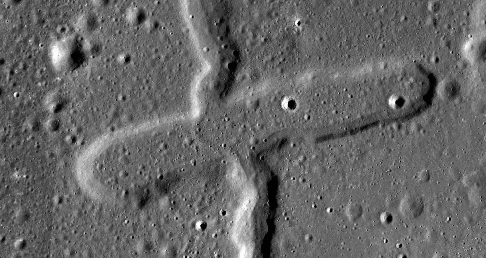 Composite image of Dorsum Zirkel and craters La Hire A (centre) and La Hire B (cut off bottom left) - Source images by NASA/Johnson Space Center.