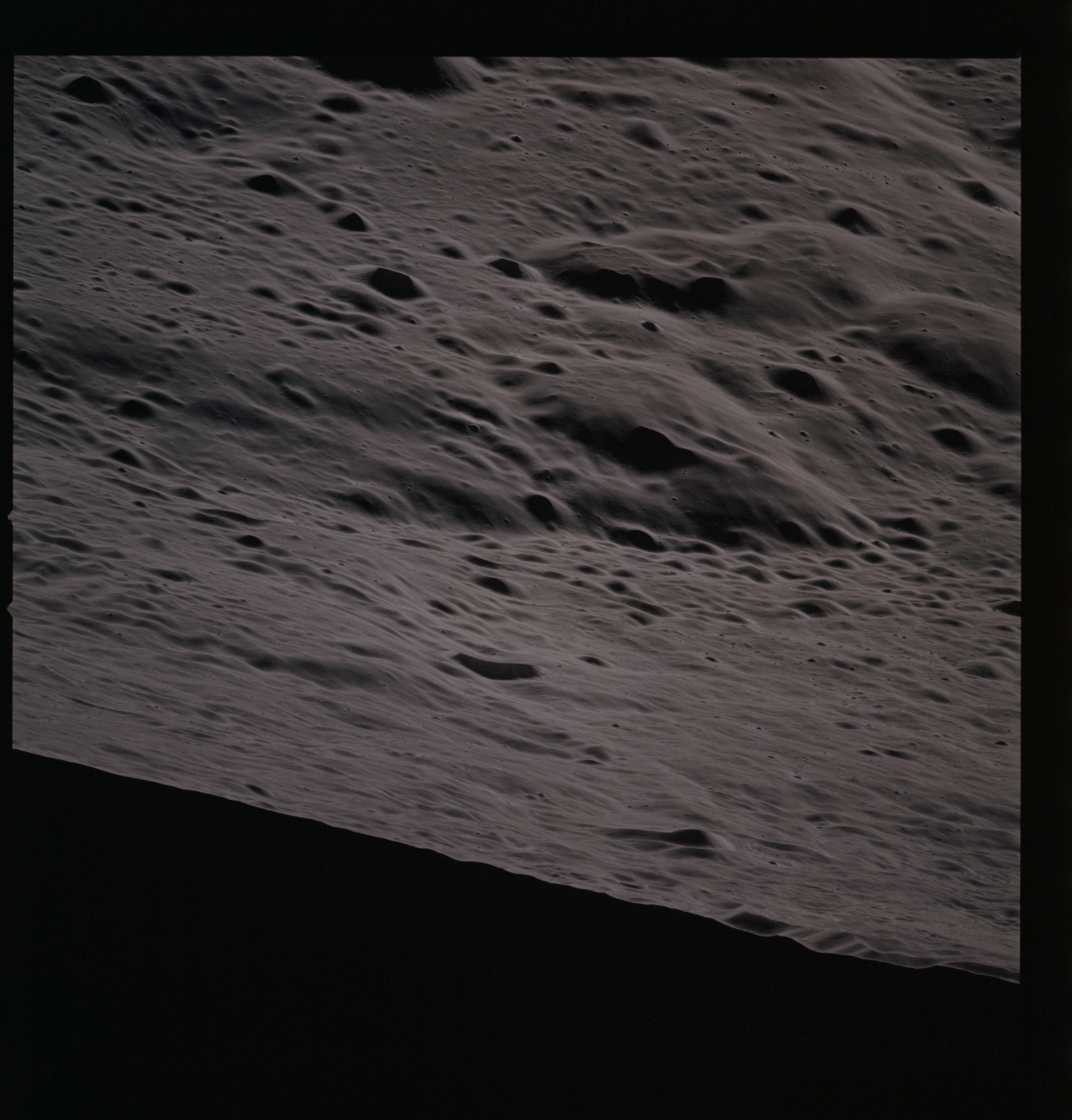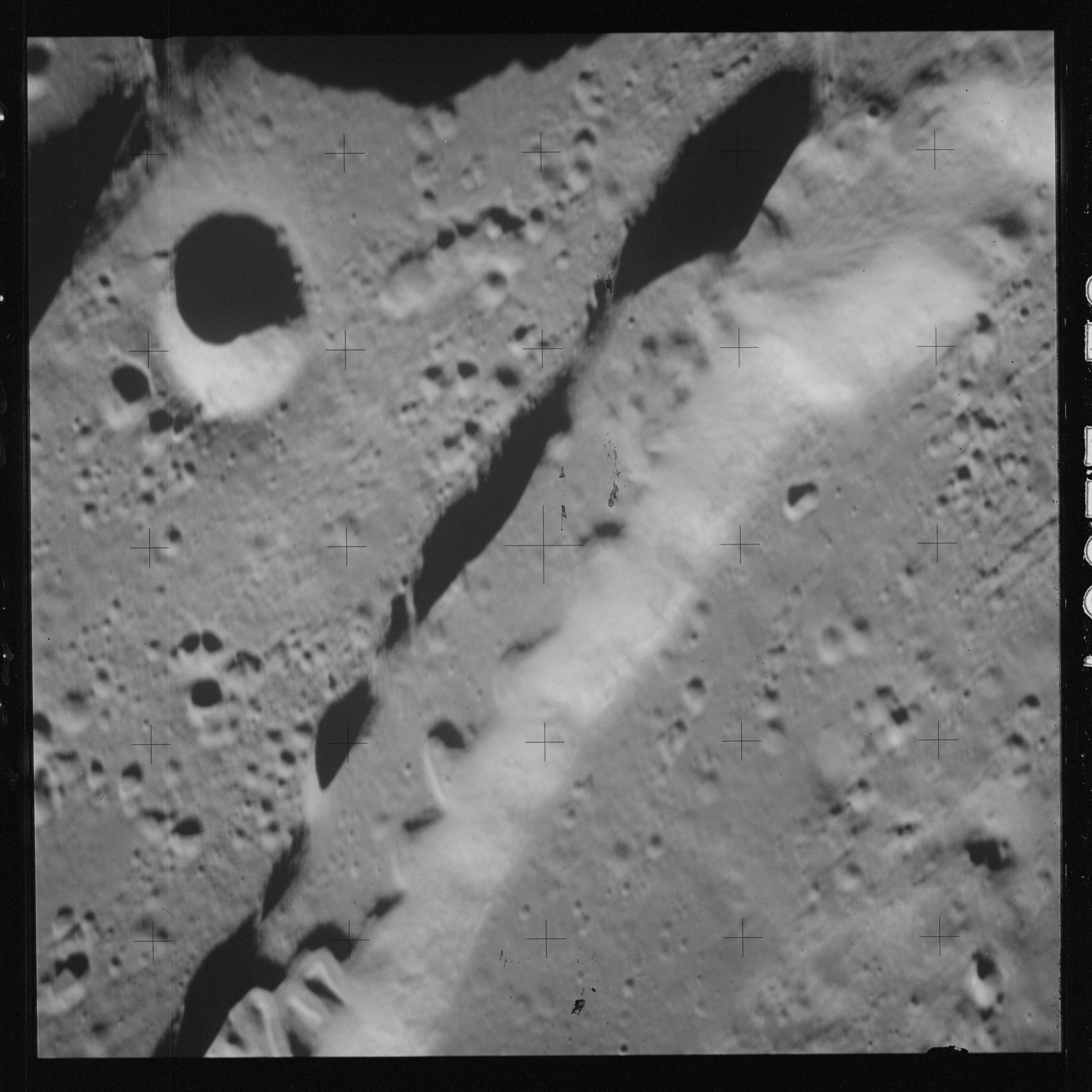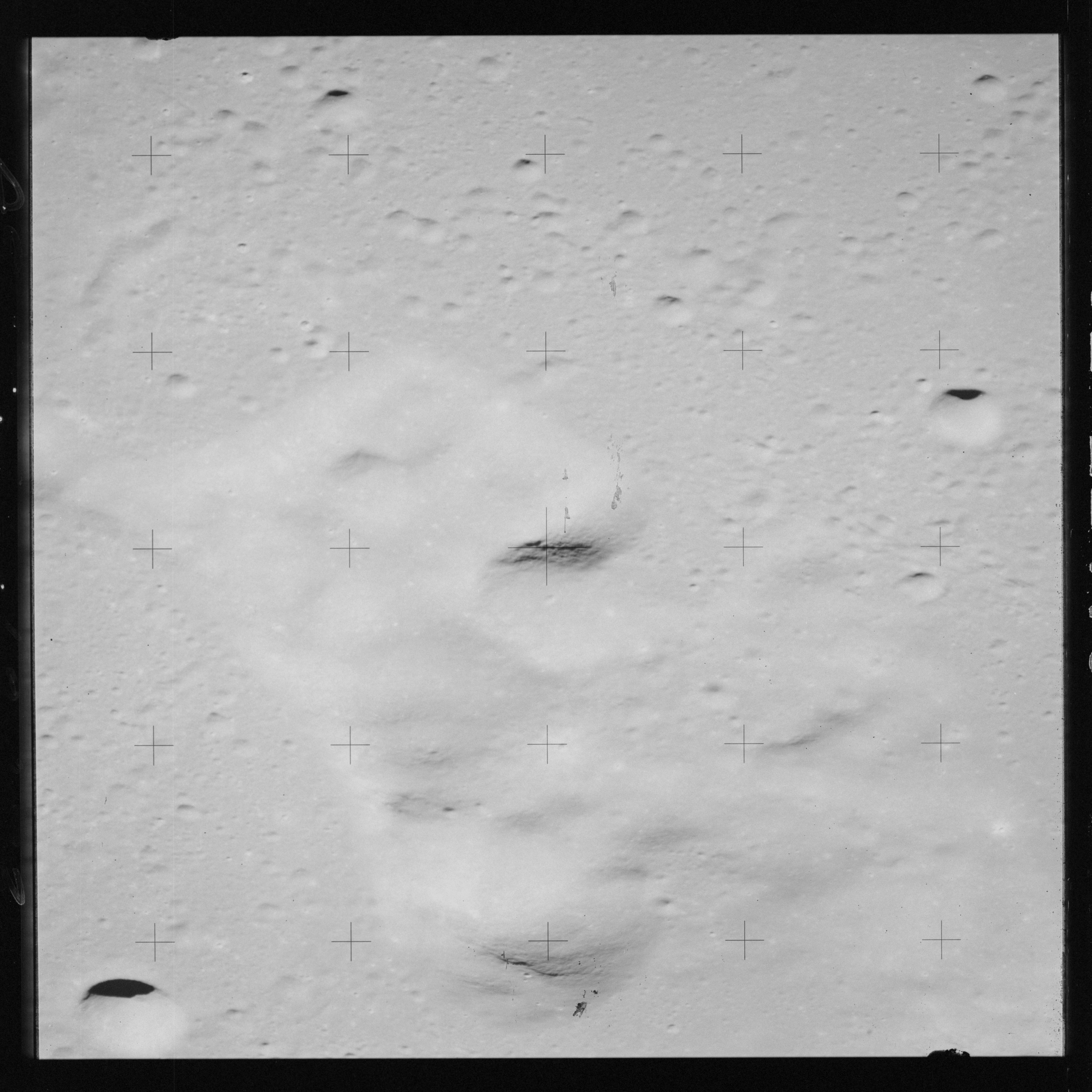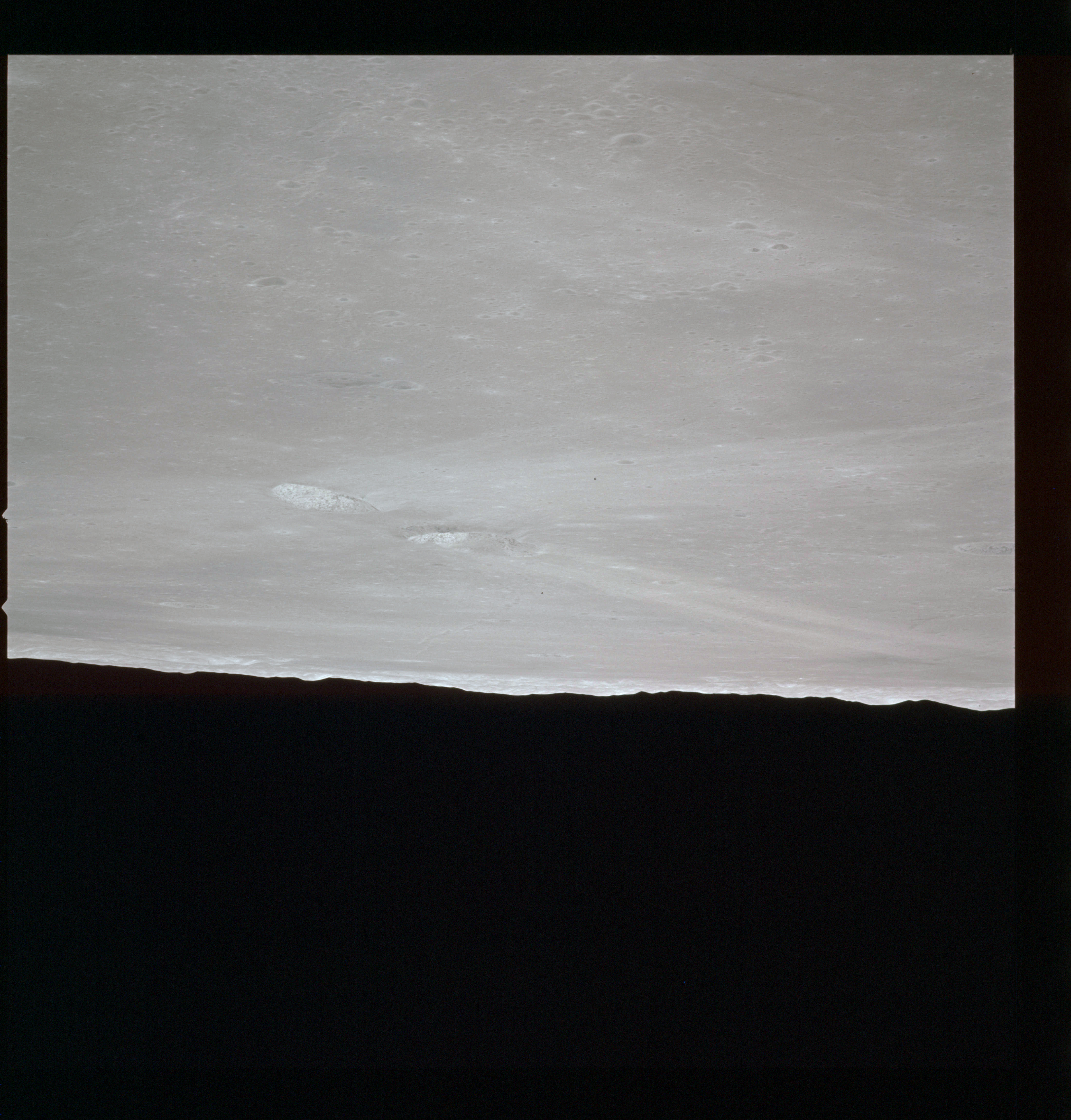 Continuing the photography on magazine O, and looking further north, AS15-97-13278 shows two irregular craters, believed to be unnamed.
