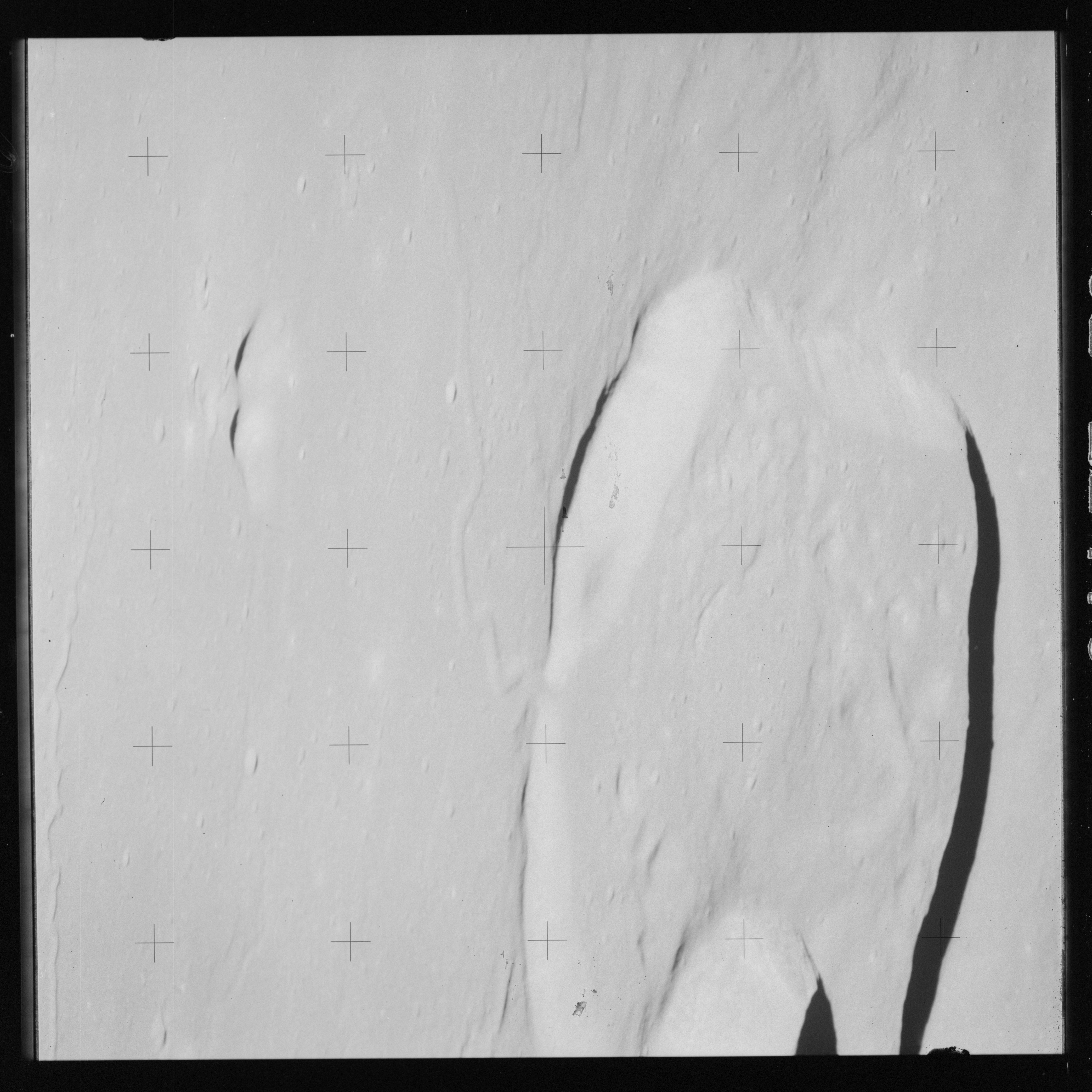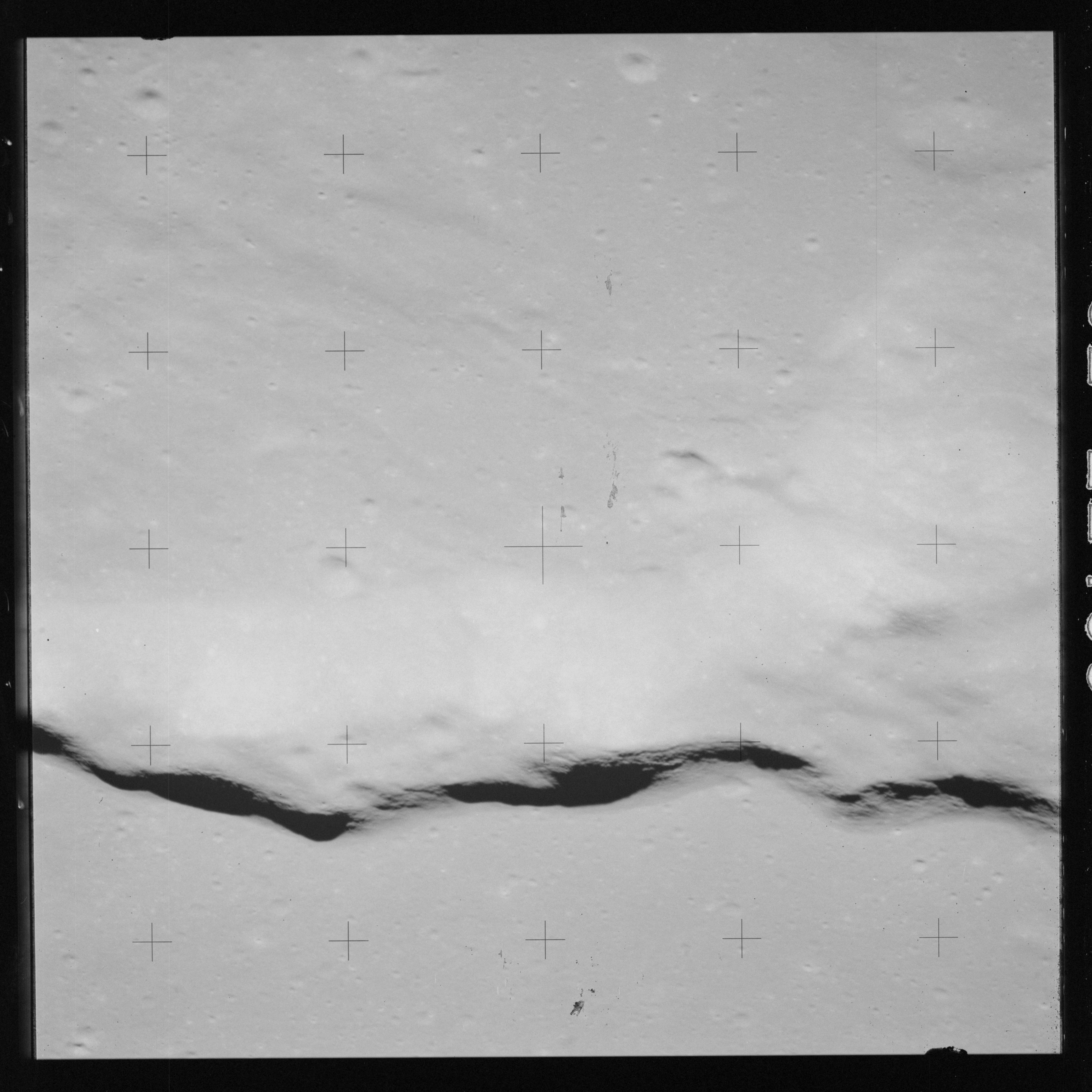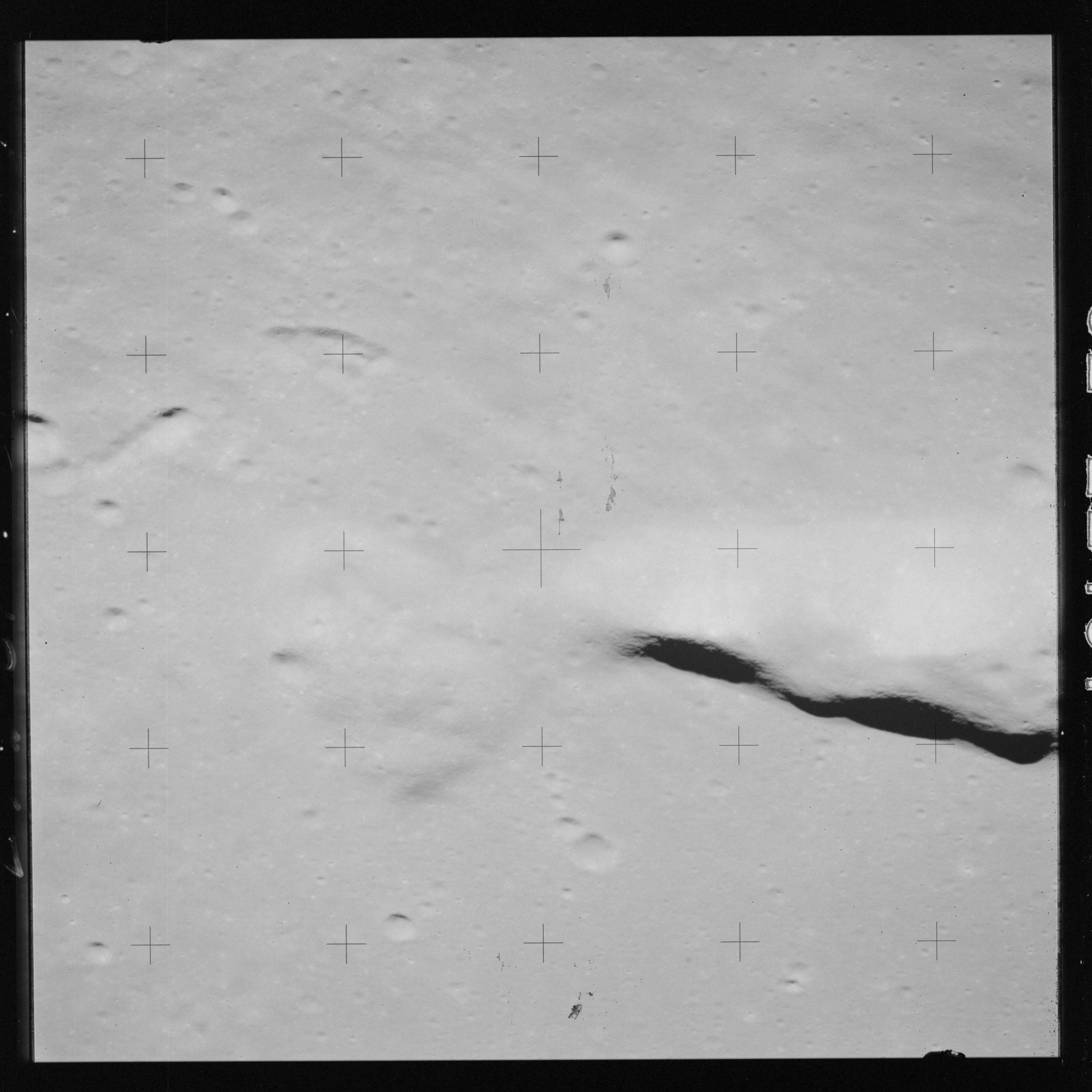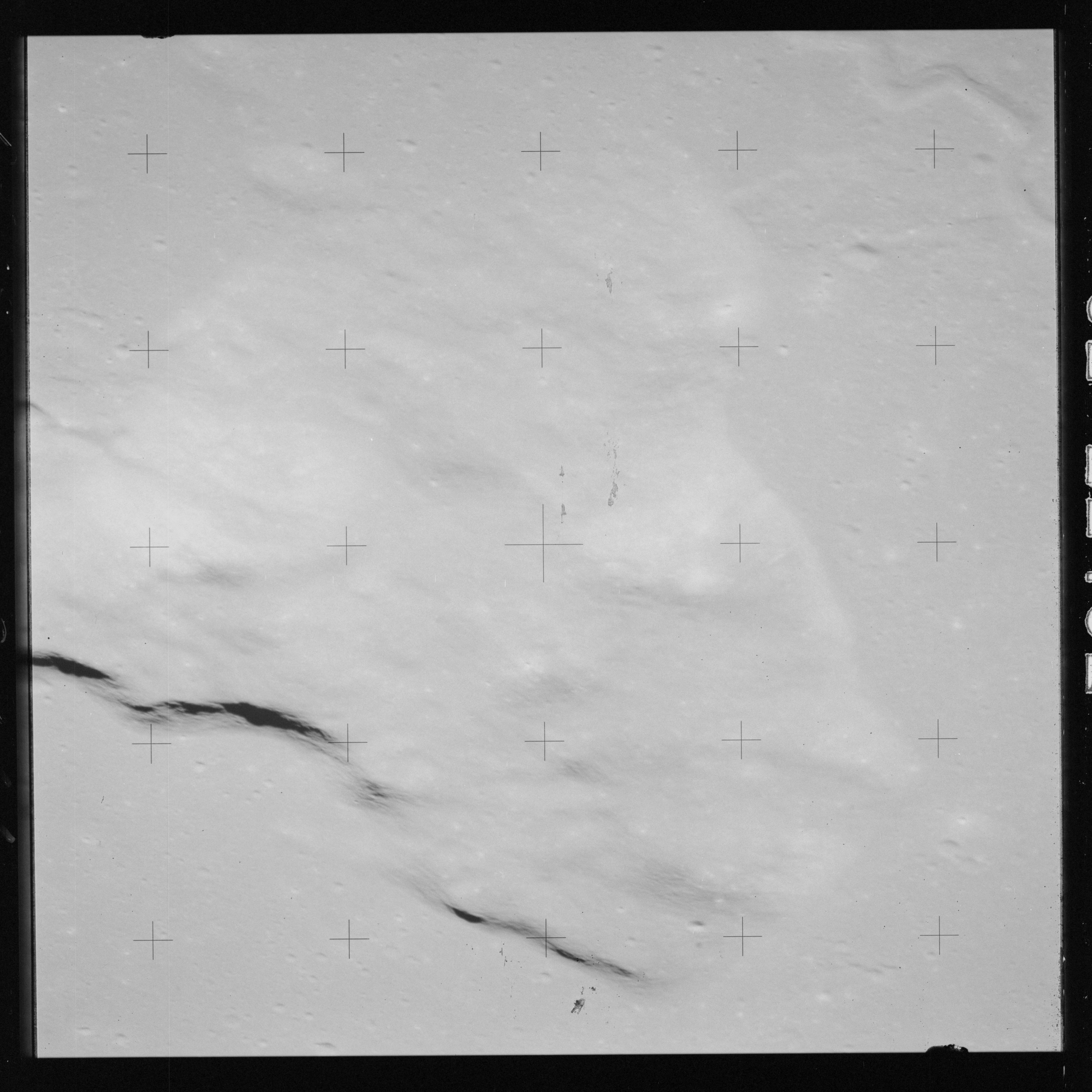 The 500-mm lens is being used with magazine OO to capture the detail of Vallis Schröteri along its length in two series of consecutive black and white images. The first series comprises AS15-92-12495 to 12502.