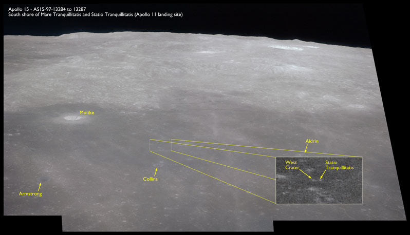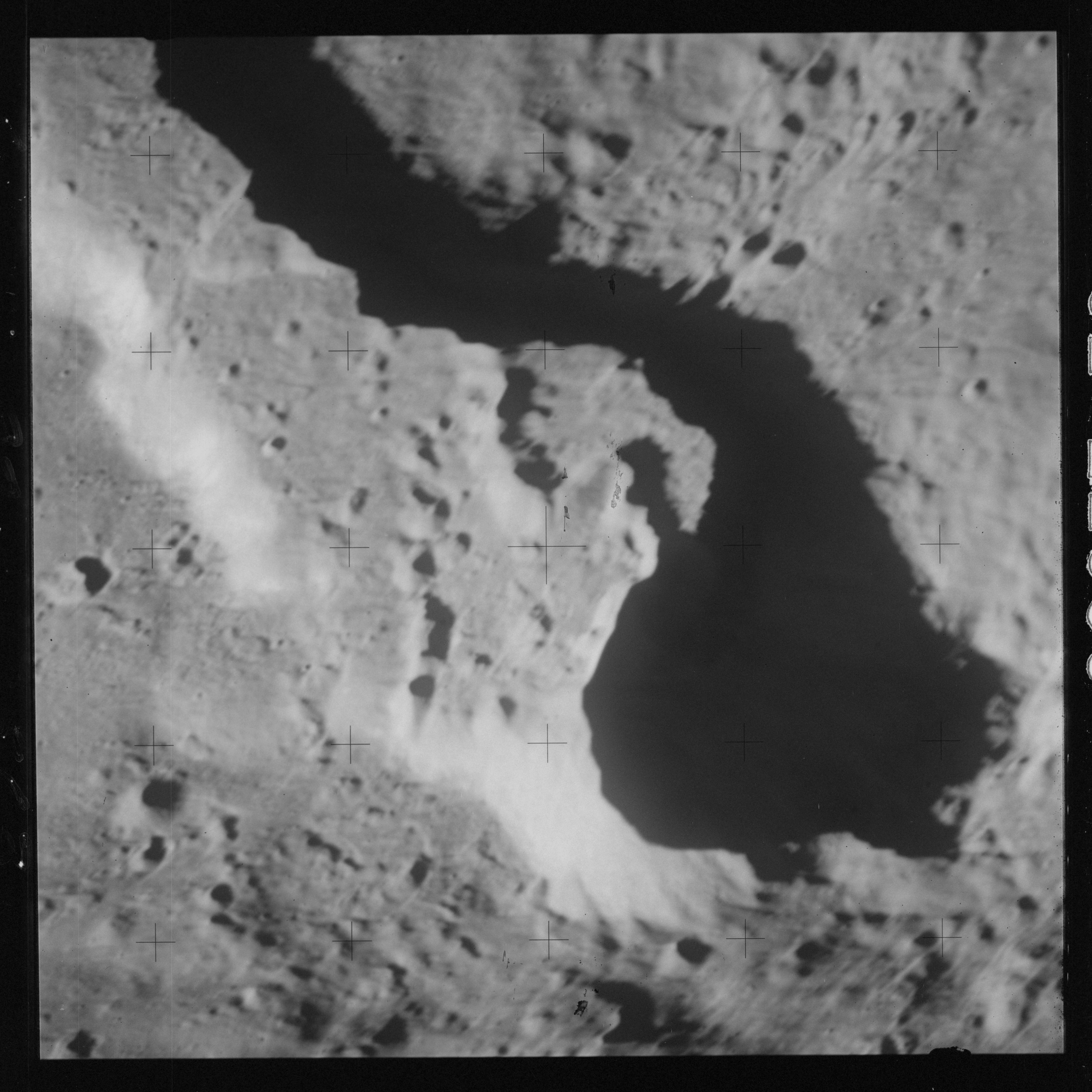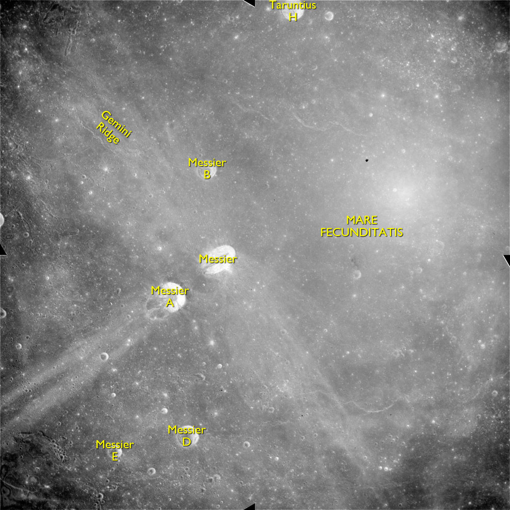 AS15-M-2404 - Metric Camera image of Mare Fecunditatis and craters Messier and Messier A. Image taken at about 214:42. (250 megapixel version), (labelled version) - Image by NASA/ASU.
