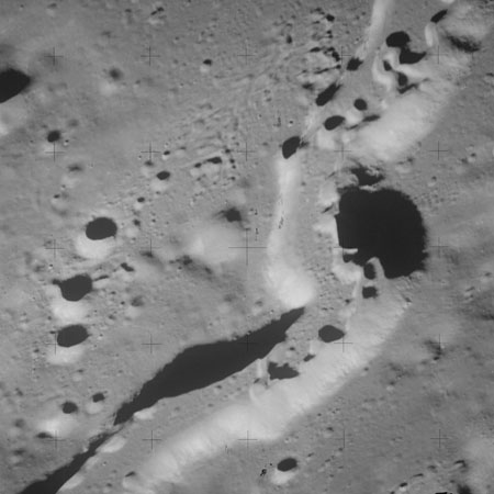 In AS15-92-12497, some extraordinary meanders are visible as the smaller rille snakes along the flat floor of the larger valley.
