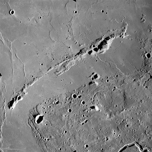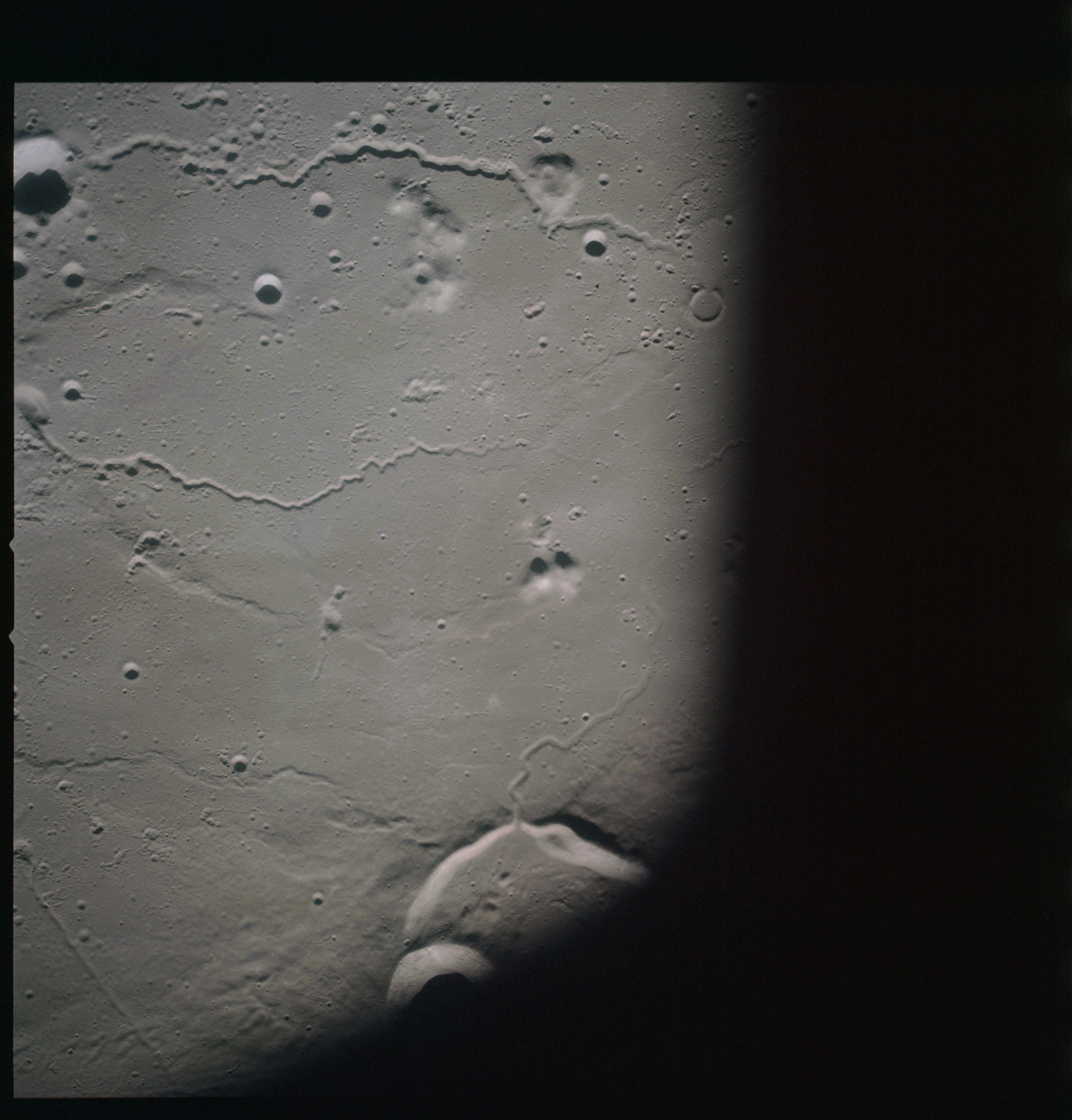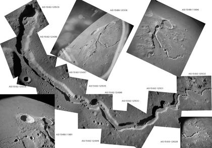 The sequence of images AS15-93-12623 to 12631 follow Vallis Schröteri from its source at the Cobra Head to where it loses its identity in the mare surface of Oceanus Procellarum.
