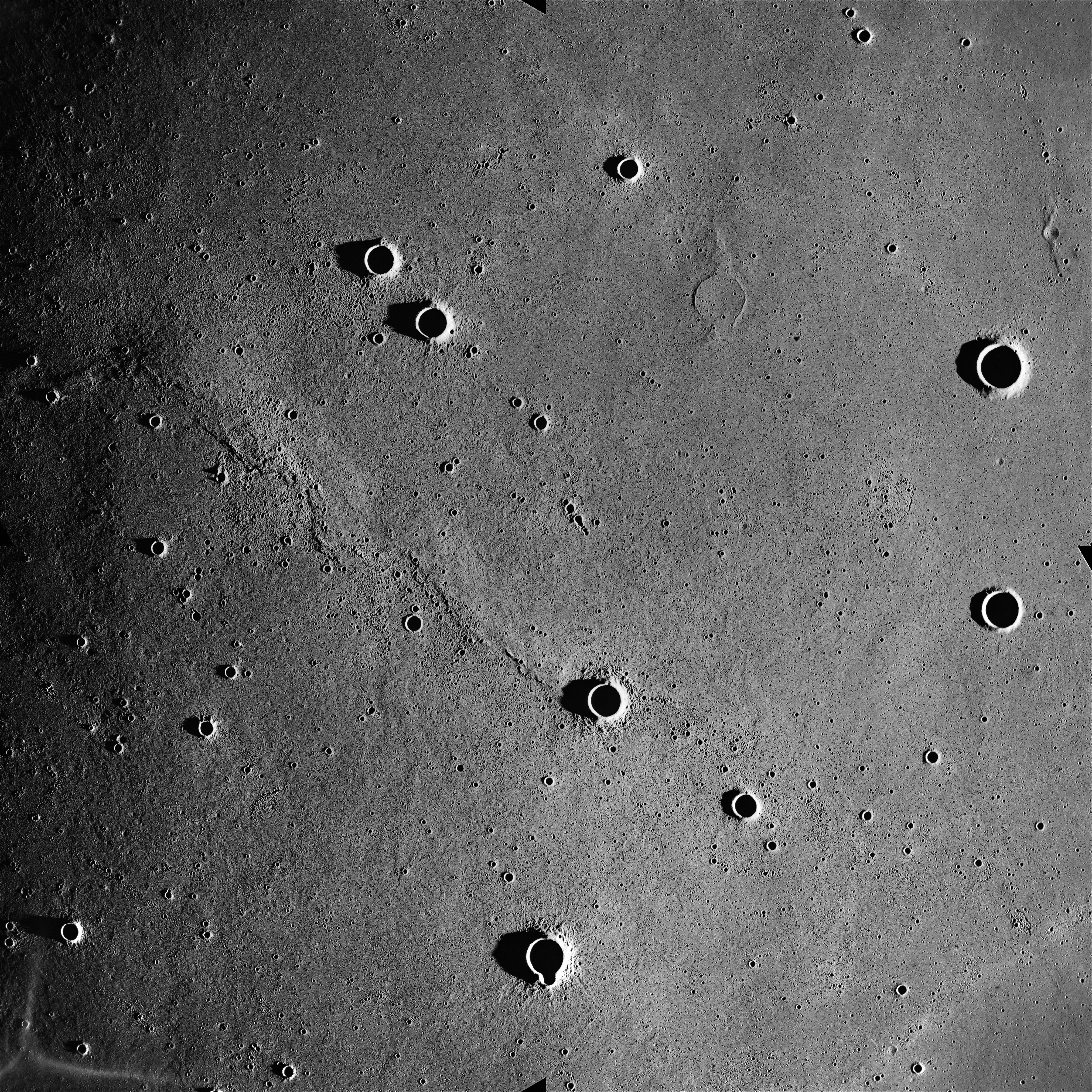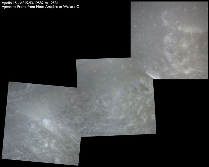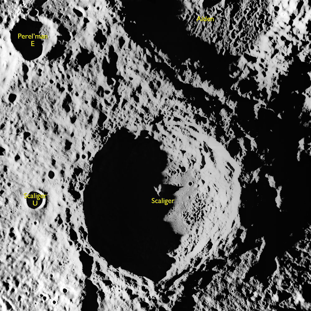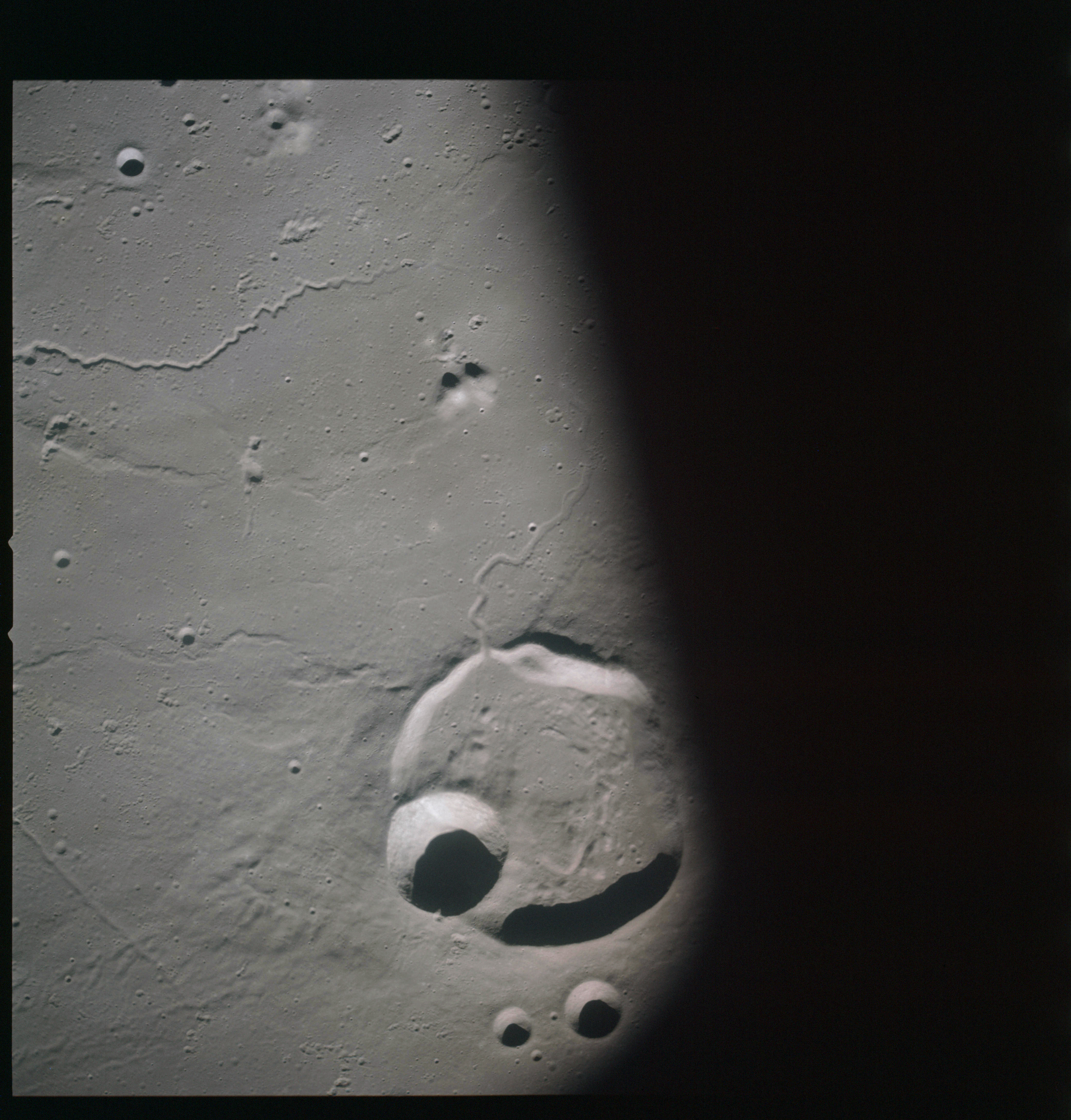 Finally, AS15-93-12638 shows a triplet of small craters right next to the terminator, the largest two of which are Schiaparelli C (in the centre of the image) and E.
