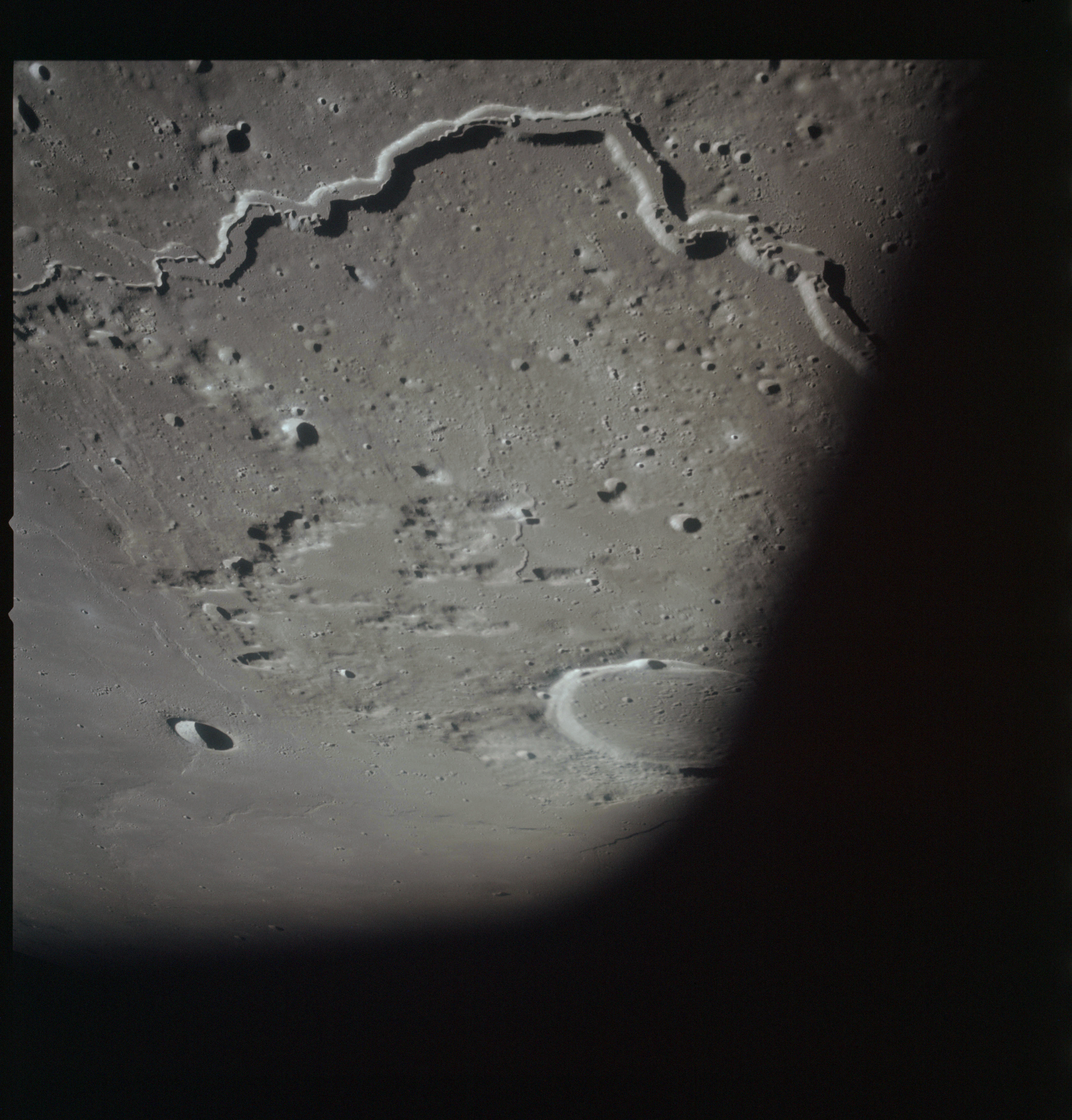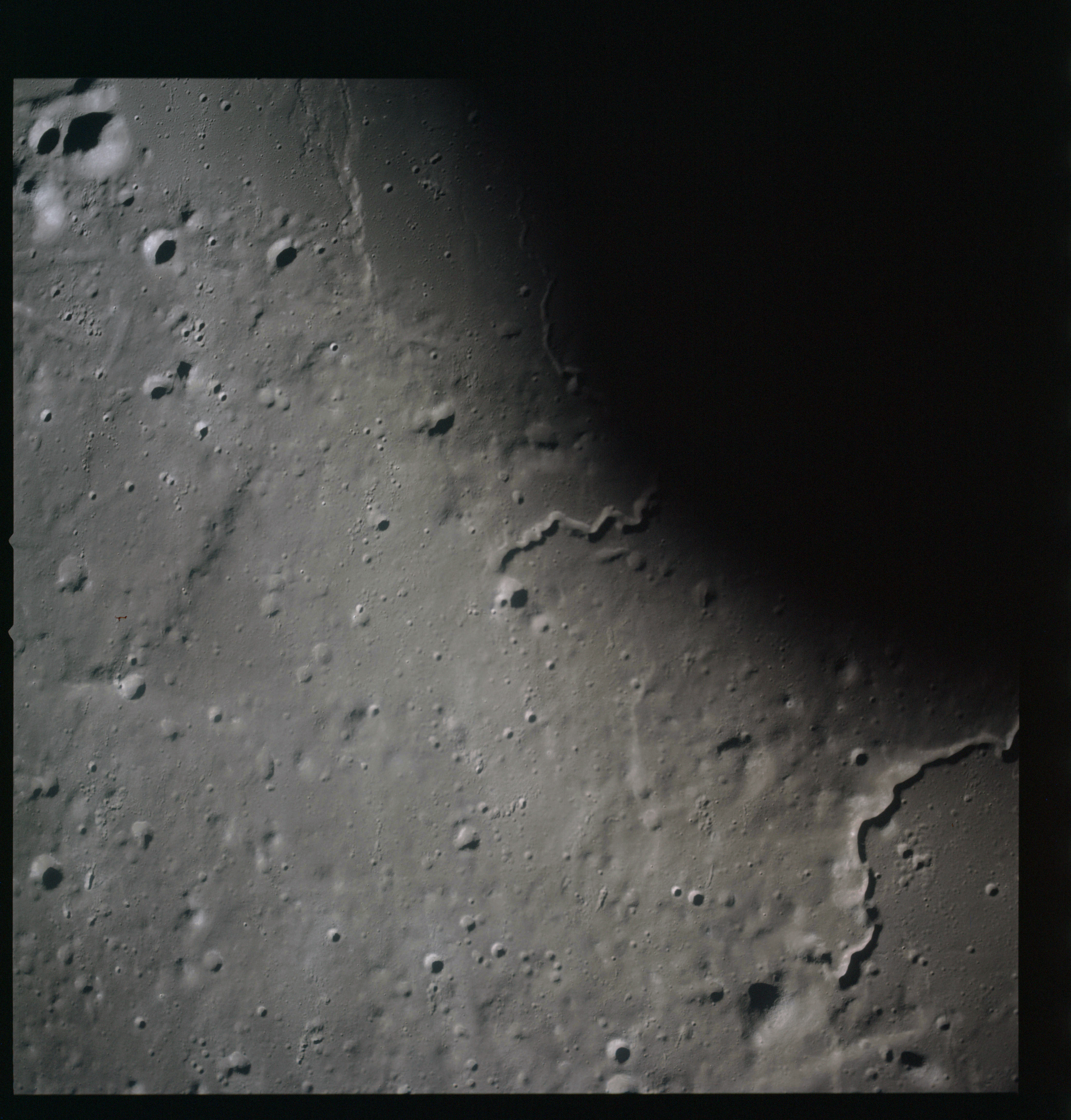 AS15-98-13368 - Terminator area. Northeast rim of Scaliger. Image centre is at 25.67°S, 109.65°E - Image by NASA/Johnson Space Center via National Archives.