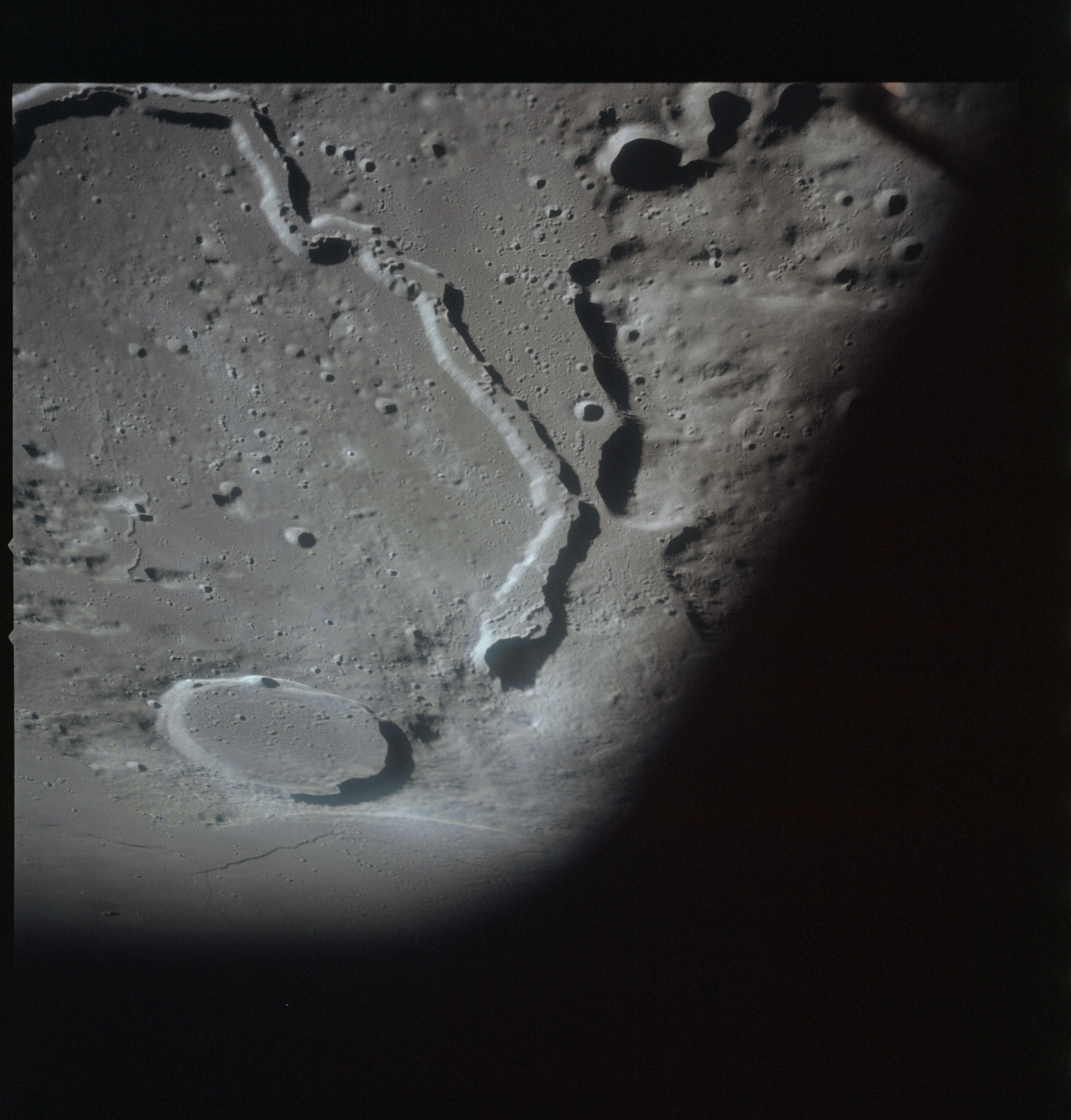 AS15-98-13371 - Terminator area. North rim of Scaliger. Image centre is at 25.82°S, 109.07°E - Image by NASA/Johnson Space Center via National Archives.