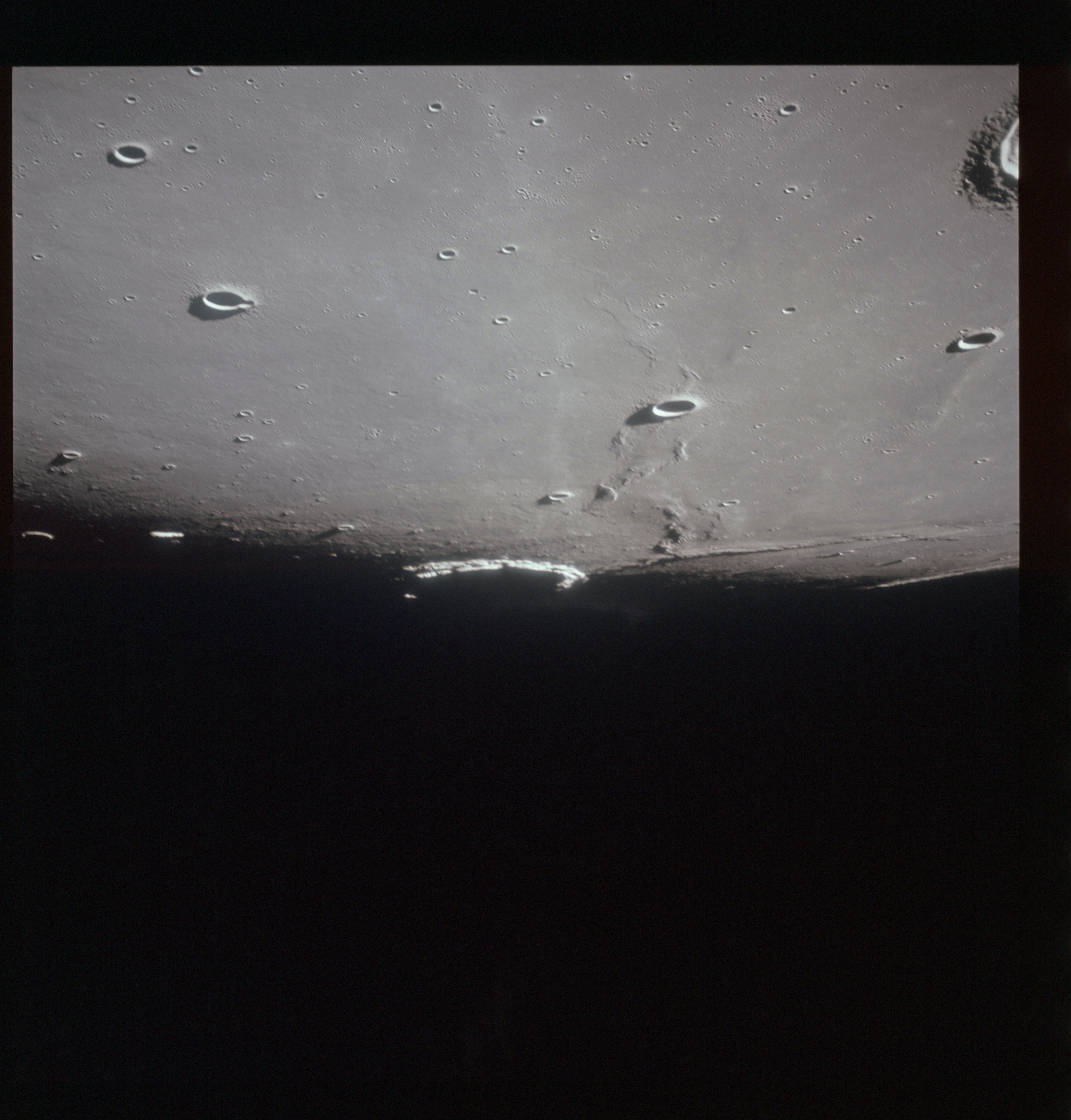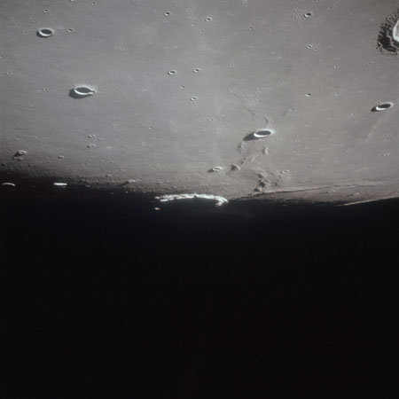 AS15-98-13366 - Terminator area. Northeast rim of Scaliger. Image centre is at 25.92°S, 110.68°E - Image by NASA/Johnson Space Center via National Archives.