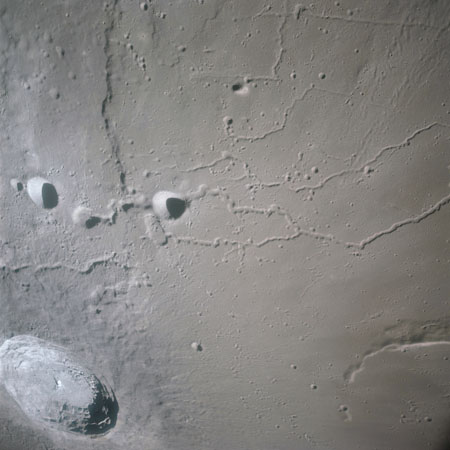 AS15-92-12494 - Damaged rilles east-southeast of crater Väisälä. Image centre at 25.63°N, 47.28°W - Image by NASA/Johnson Space Center.