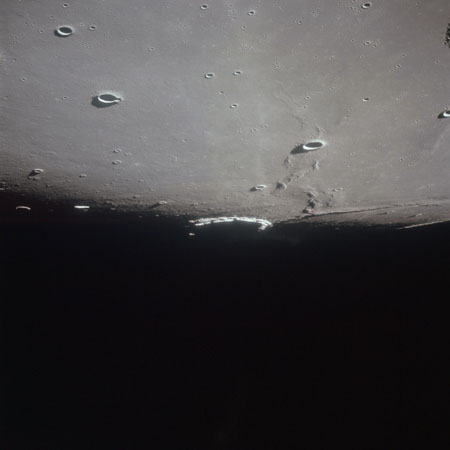 AS15-98-13370 - Terminator area. North rim of Scaliger. Image centre is at 25.93°S, 109.45°E - Image by NASA/Johnson Space Center via National Archives.