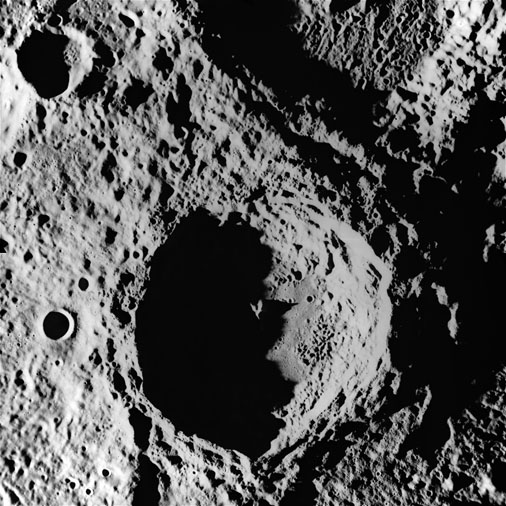AS15-98-13365 - Terminator area, between Scaliger and Schaeberle U. Image centre is at 26.08°S, 112.47°E - Image by NASA/Johnson Space Center via National Archives.