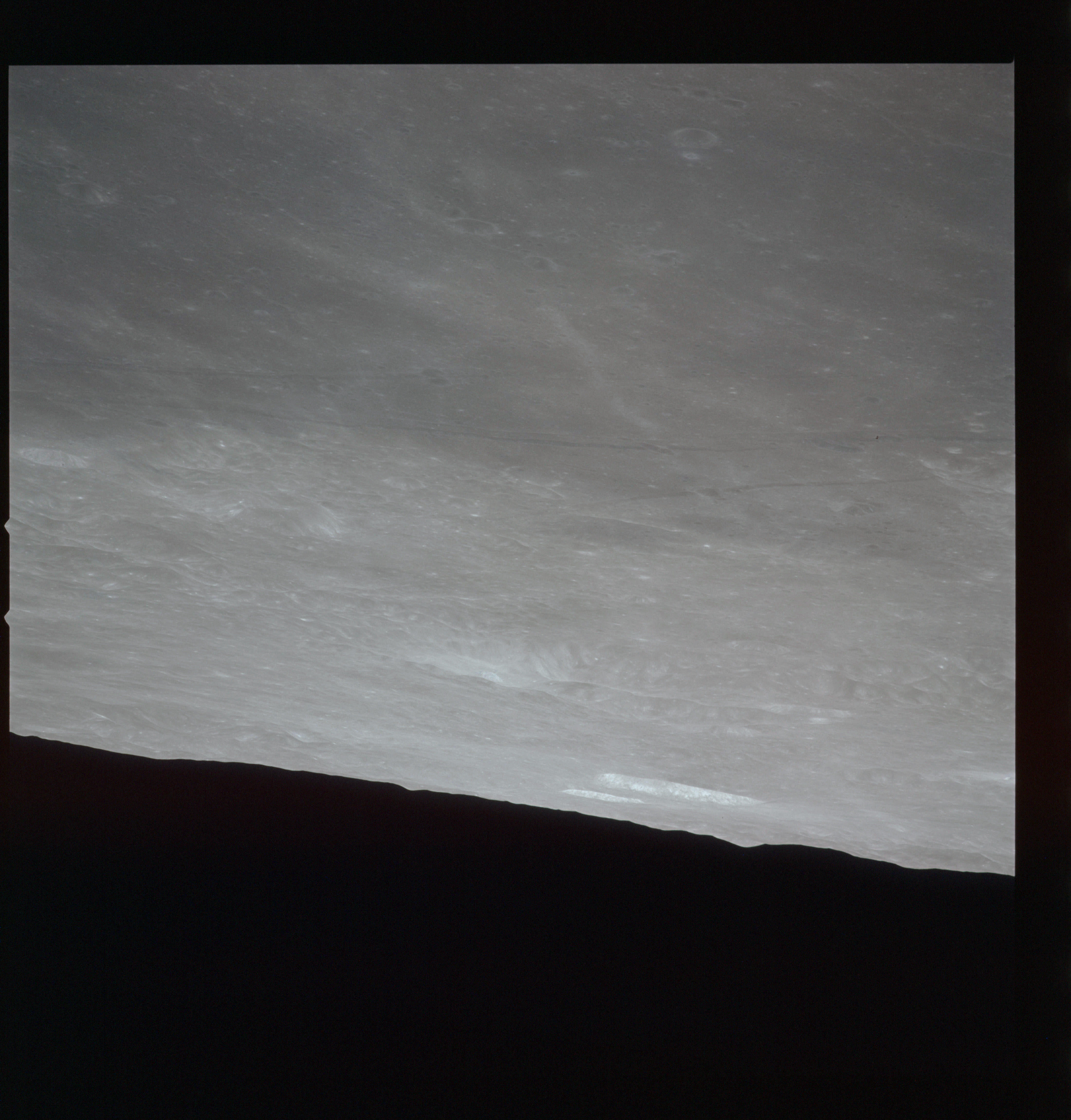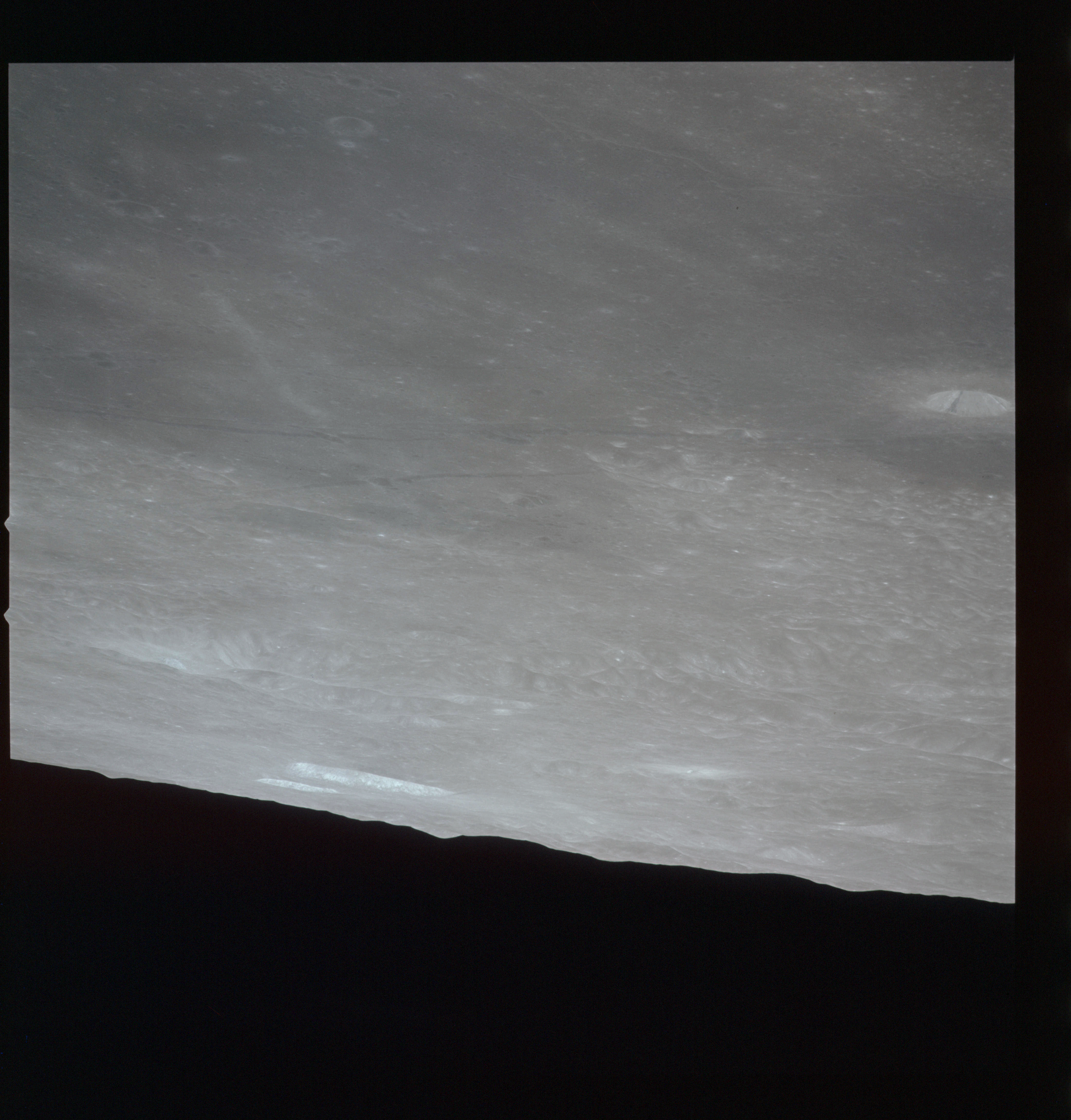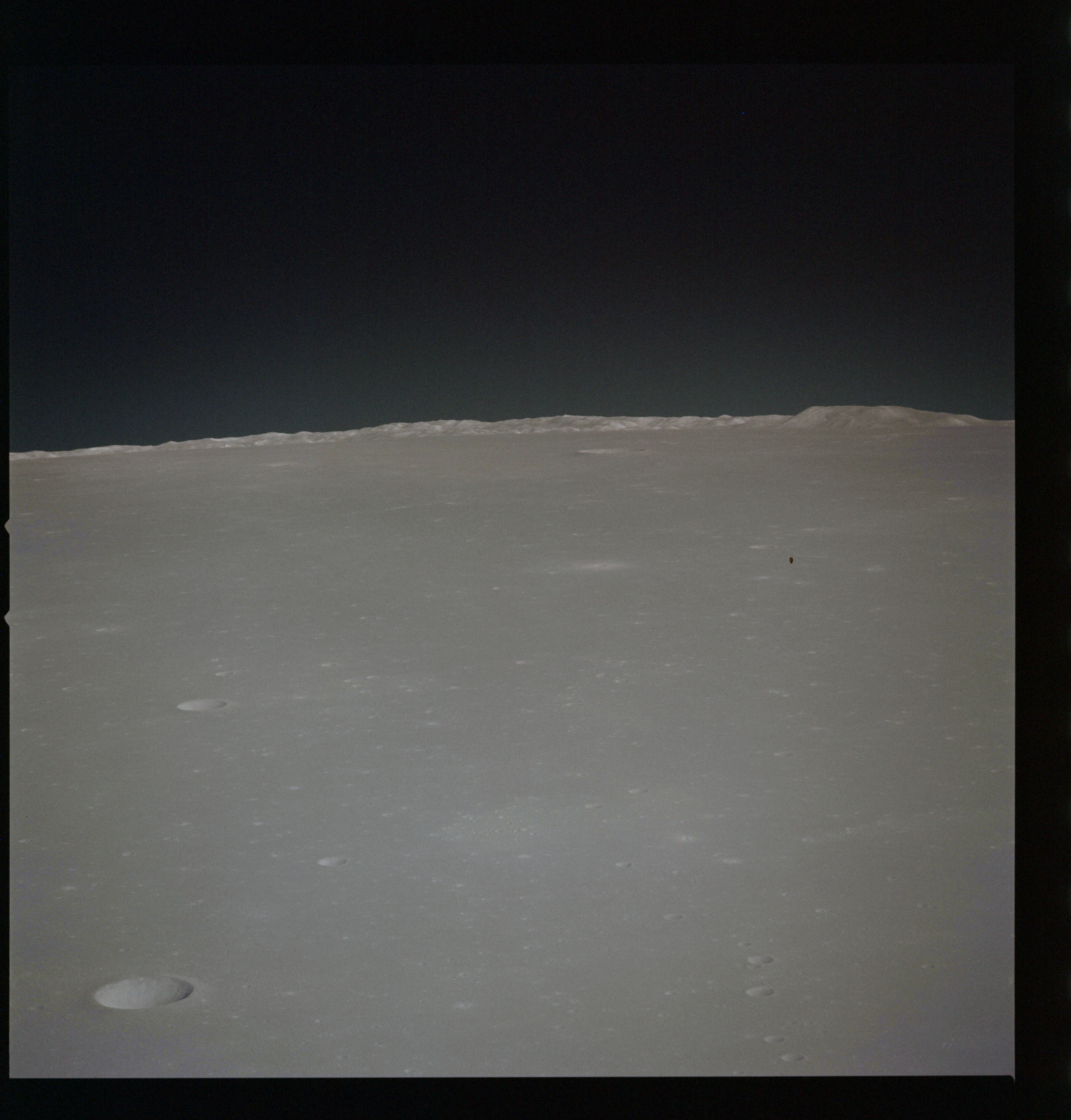 According to the SIM camera index, the last image in the current sequence is AS15-M-2623. However, this is a double exposure with the first image of the next sequence. The last clear image, AS15-M-2622, is shown here instead.
