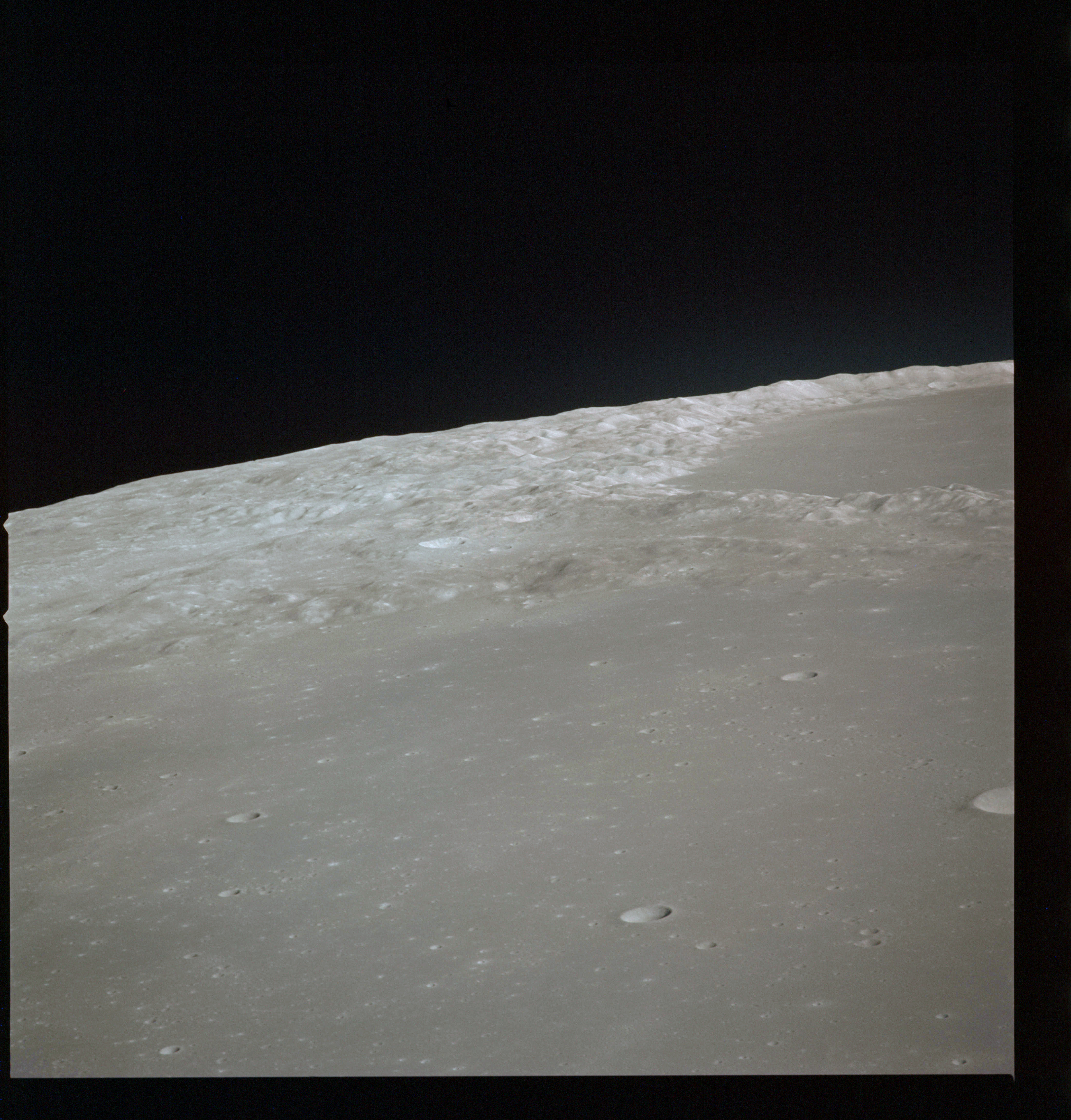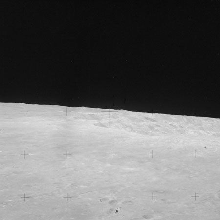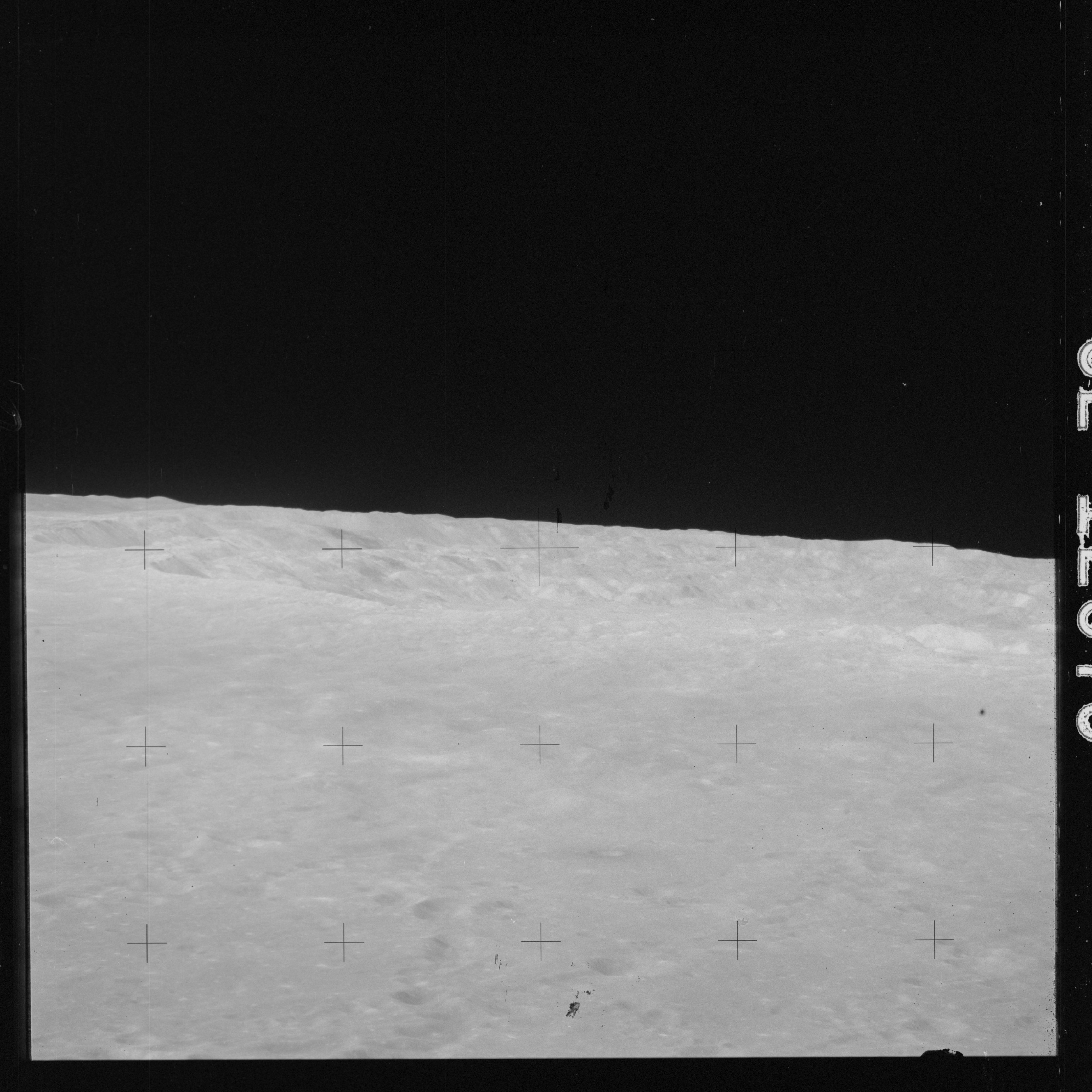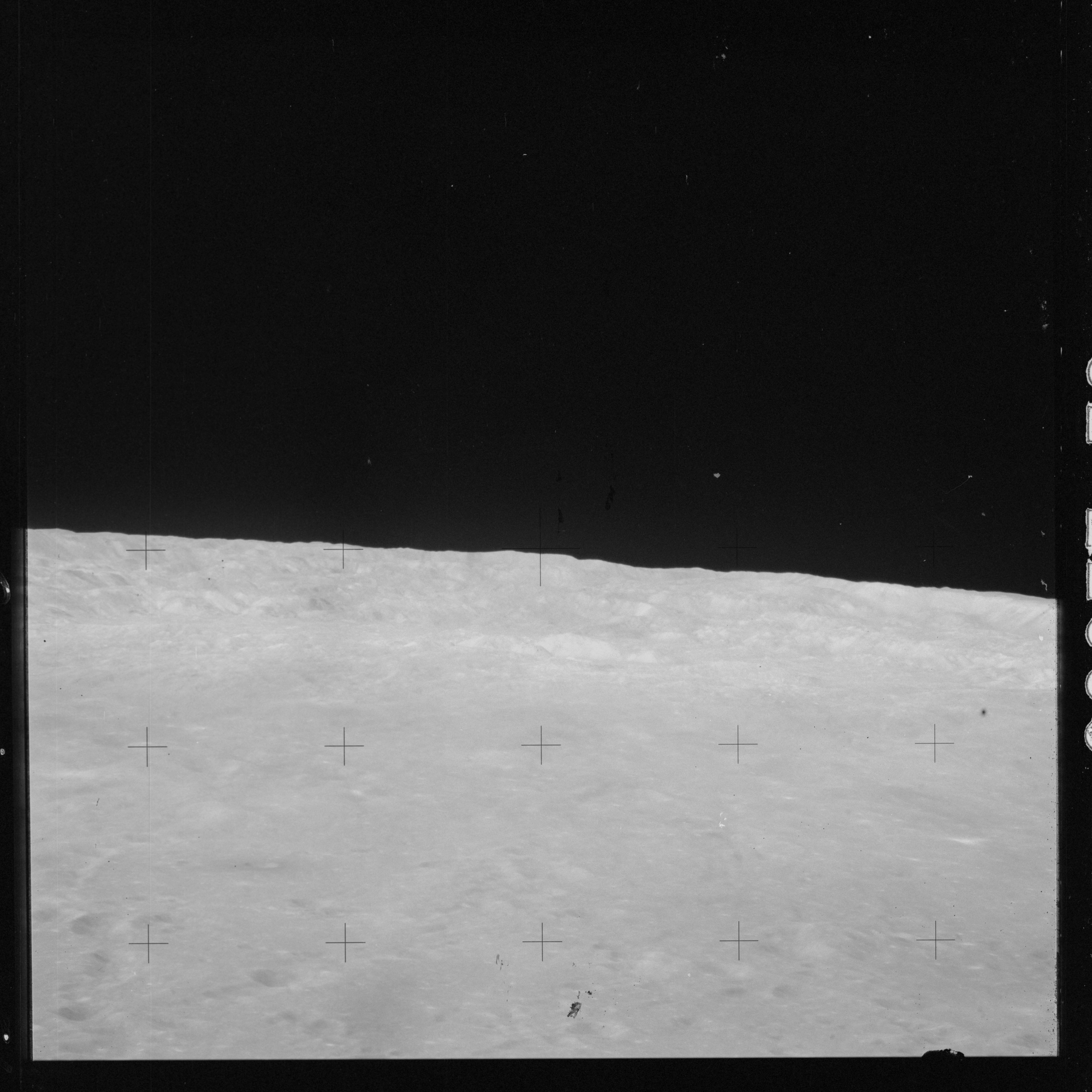 According to the SIM camera index, the last image in the current sequence is AS15-M-2623. However, this is a double exposure with the first image of the next sequence. The last clear image, AS15-M-2622, is shown here instead.