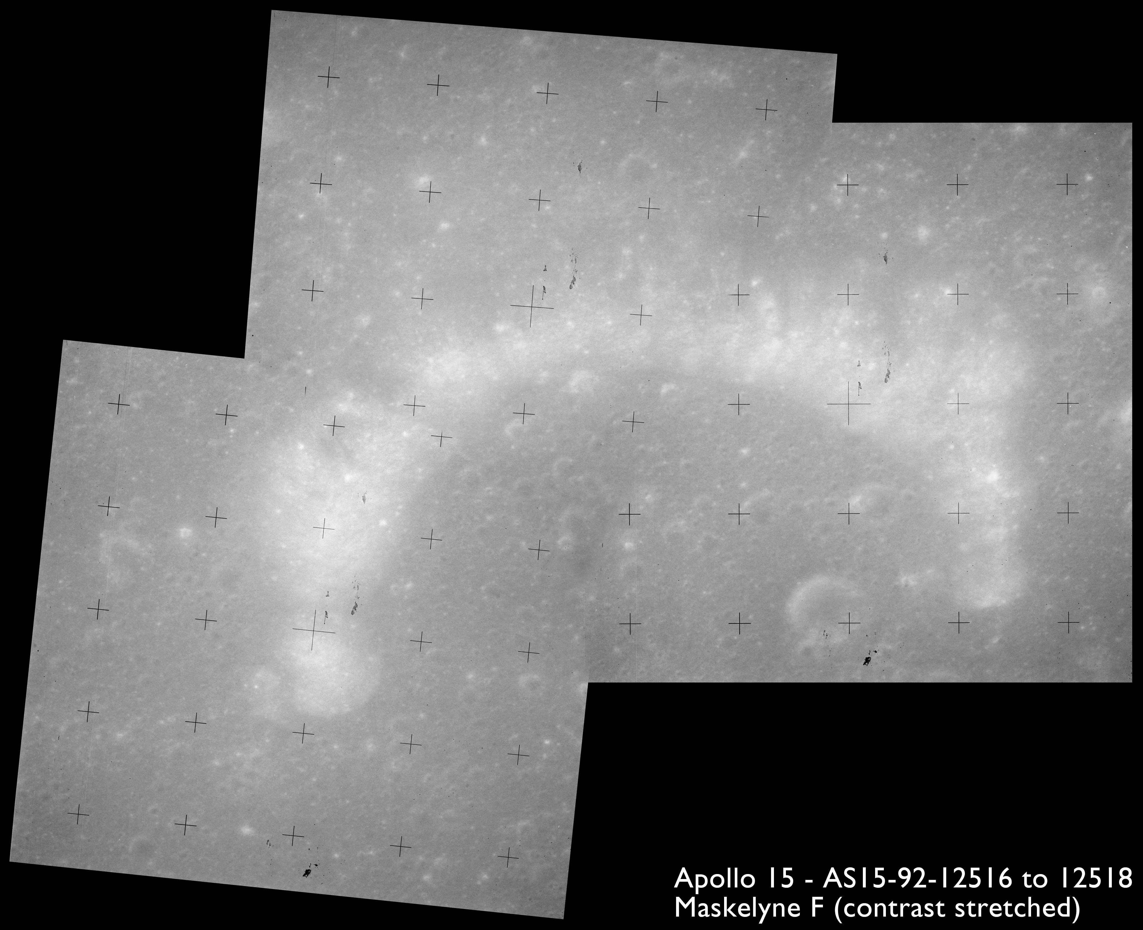 Composition of images AS15-93-12724 to 12728 showing parts of Rimae Prinz and Montes Harbinger - Images by NASA/Johnson Space Center.
