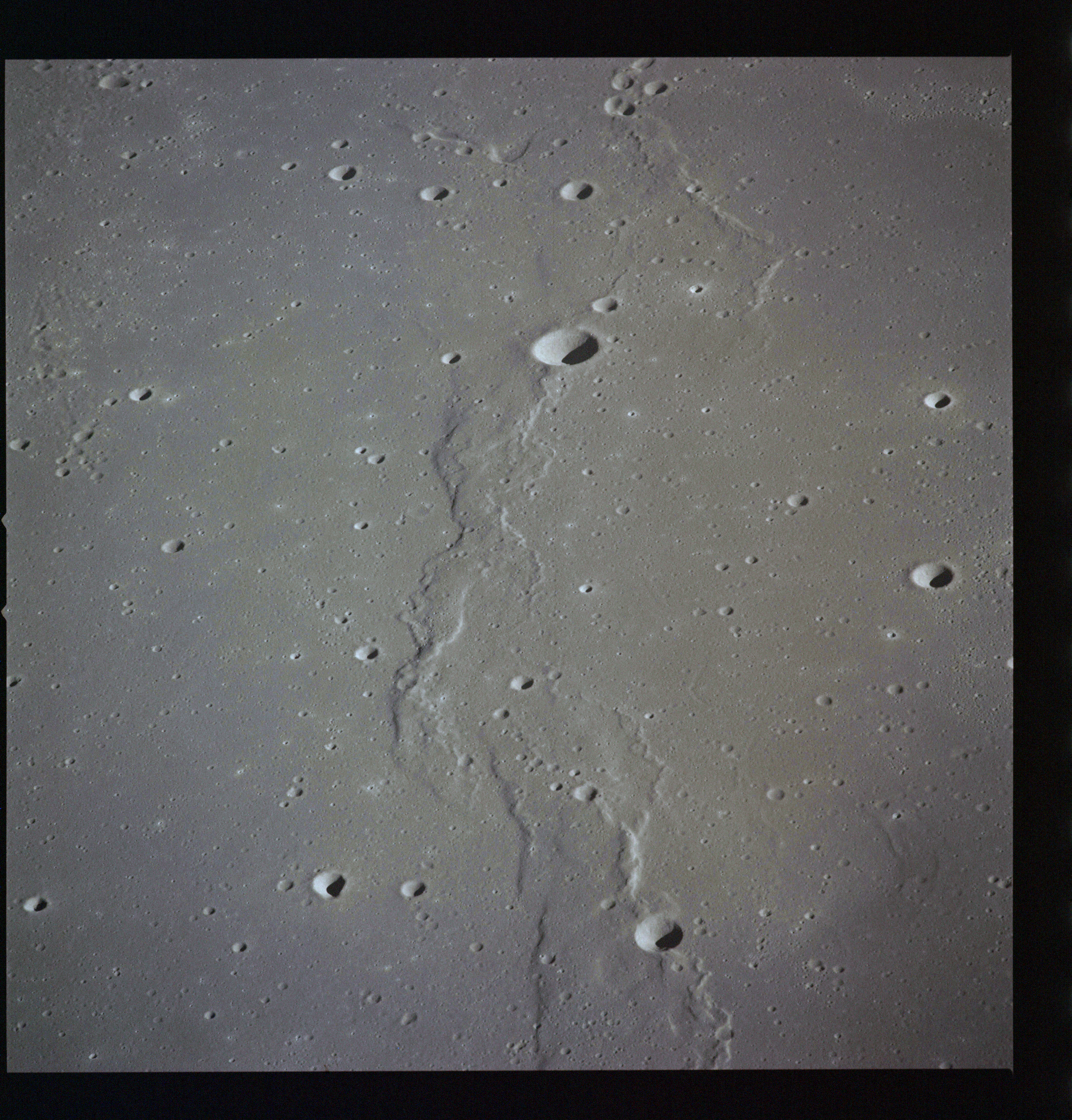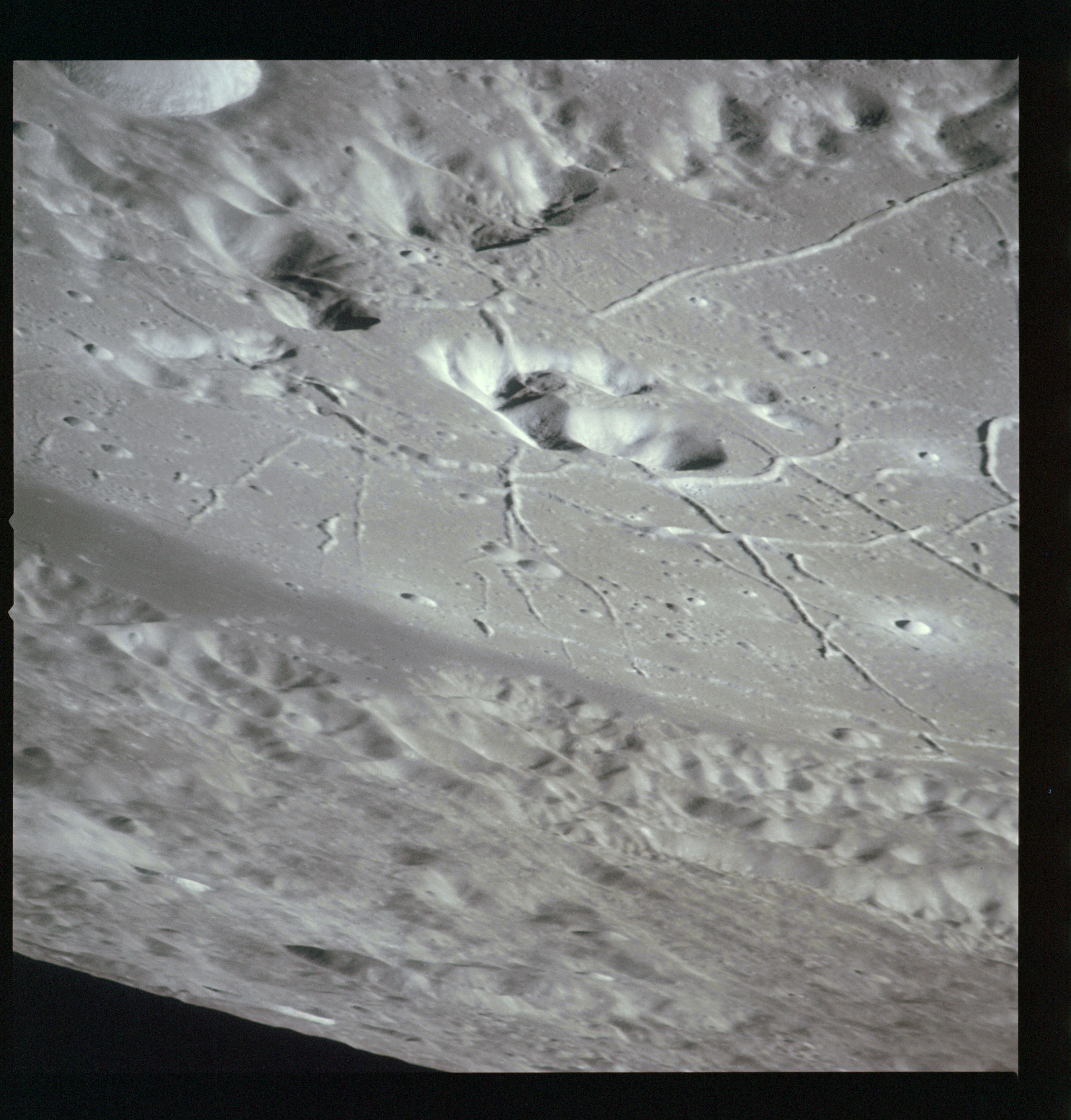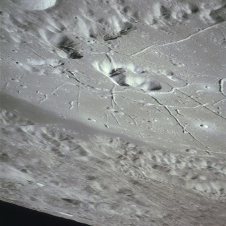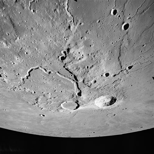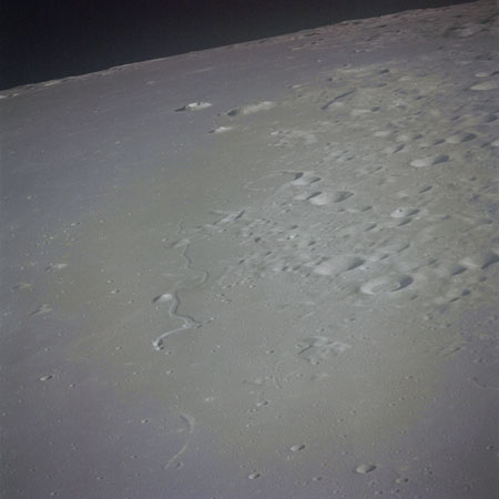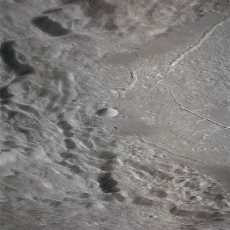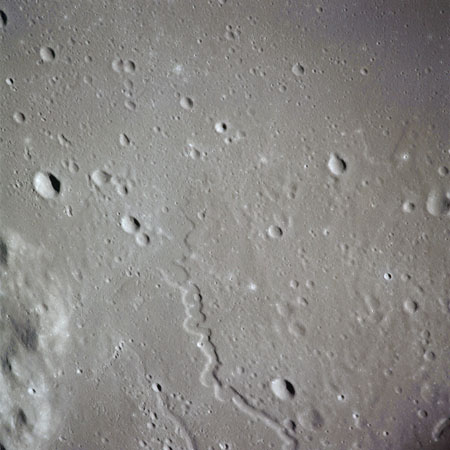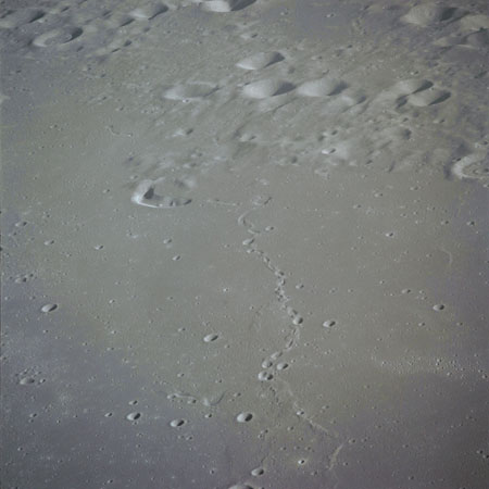 AS15-93-12726 - Wrinkle ridge and collapse pits across Oceanus Procellarum - Image by NASA/Johnson Space Center.