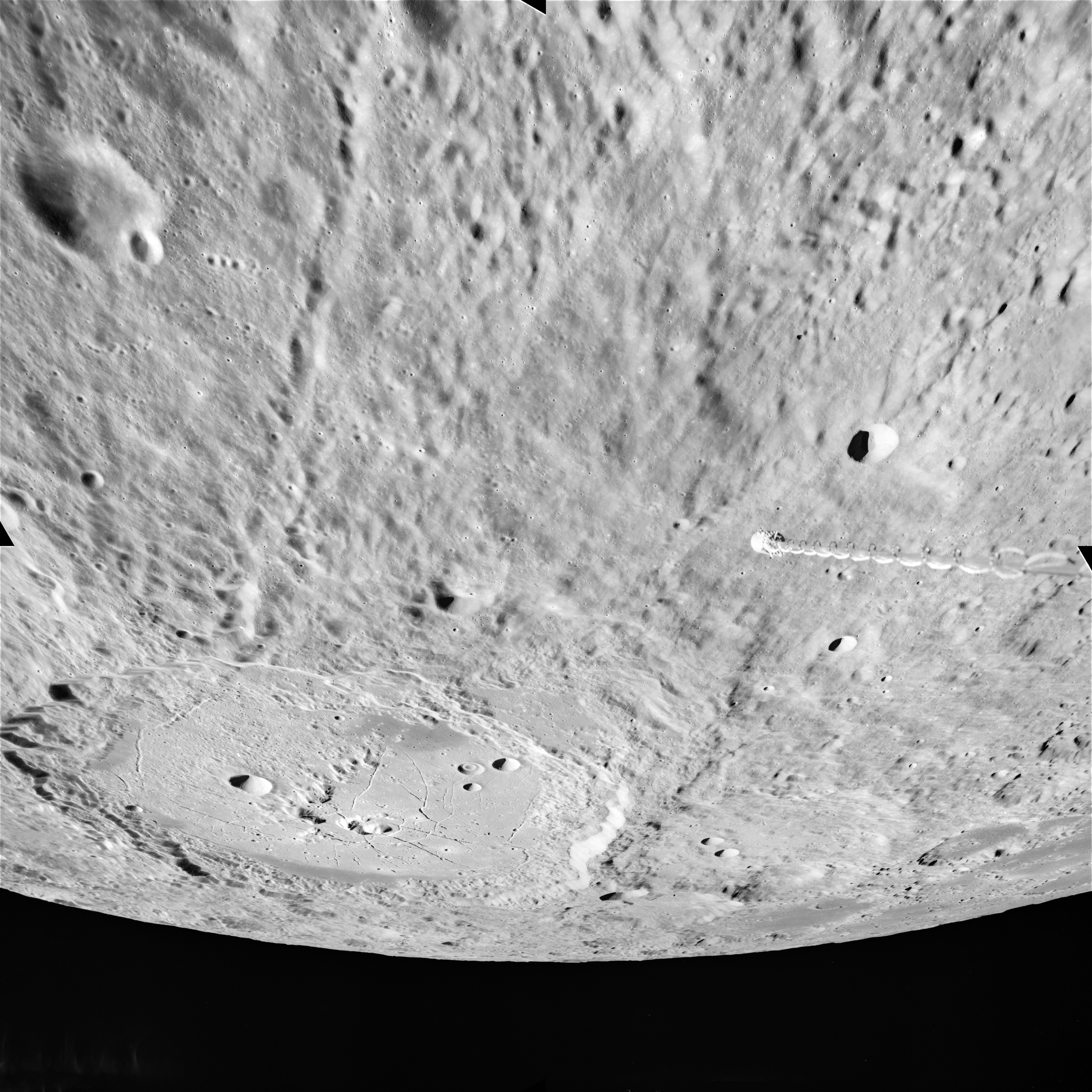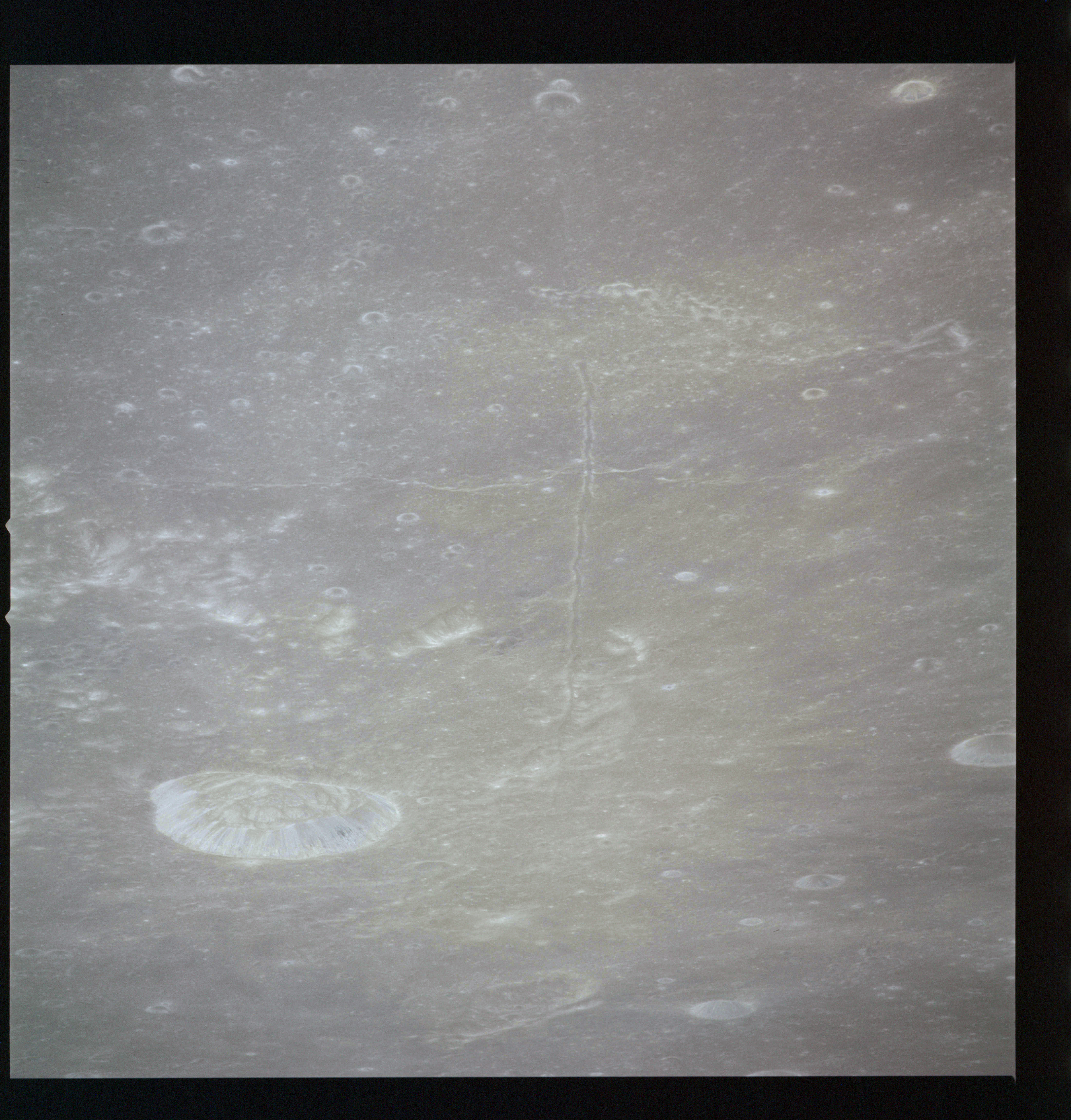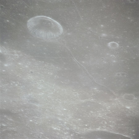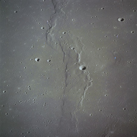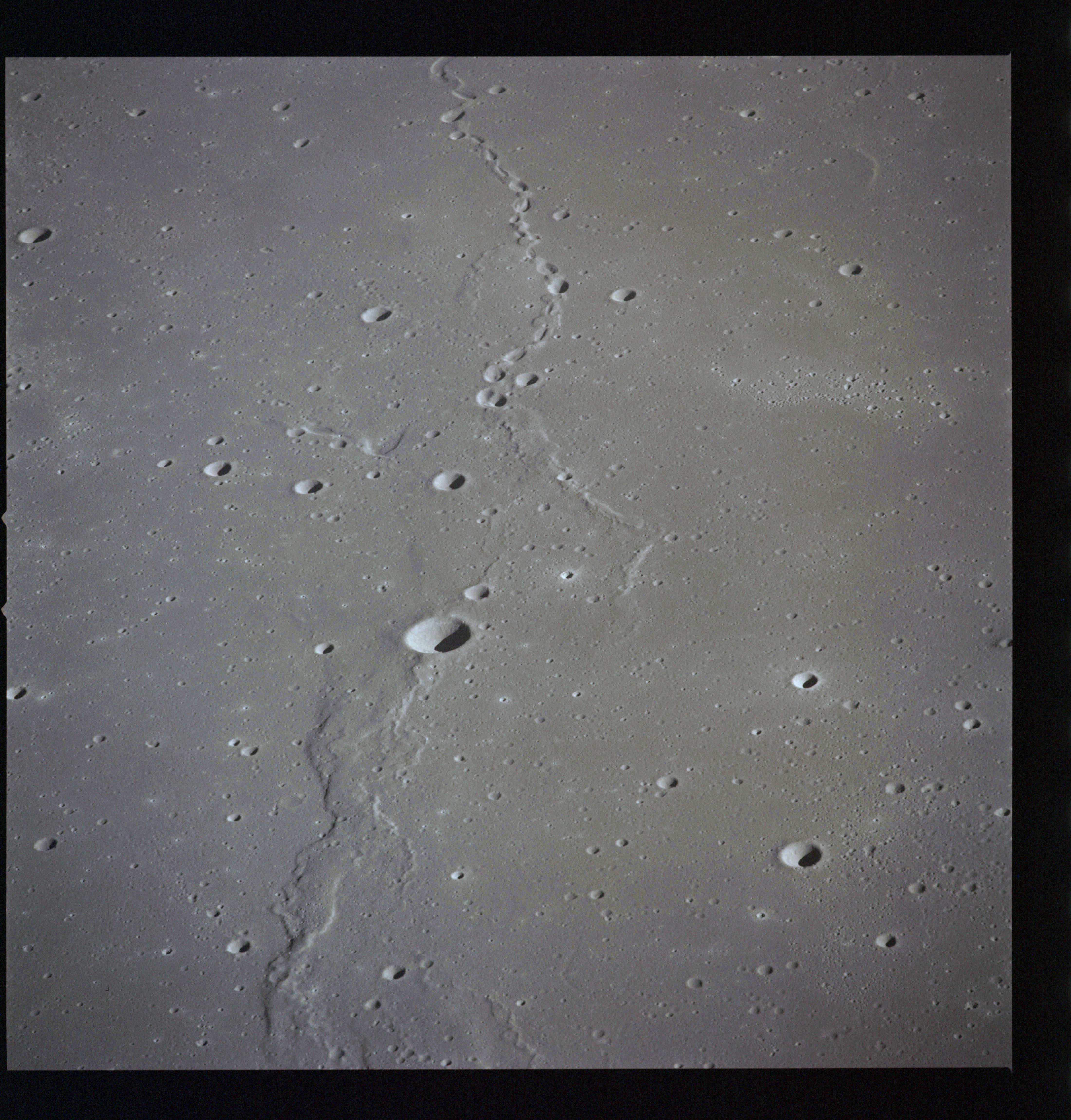 AS15-93-12726 - Wrinkle ridge and collapse pits across Oceanus Procellarum - Image by NASA/Johnson Space Center.