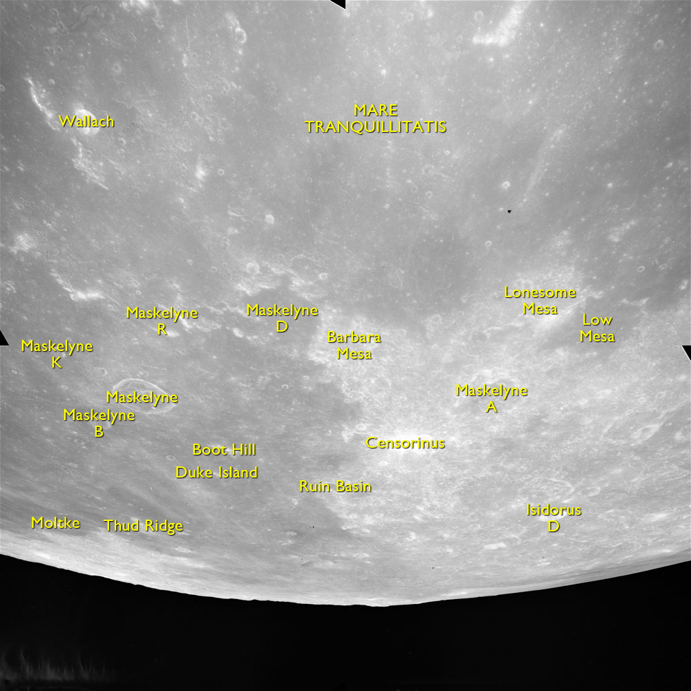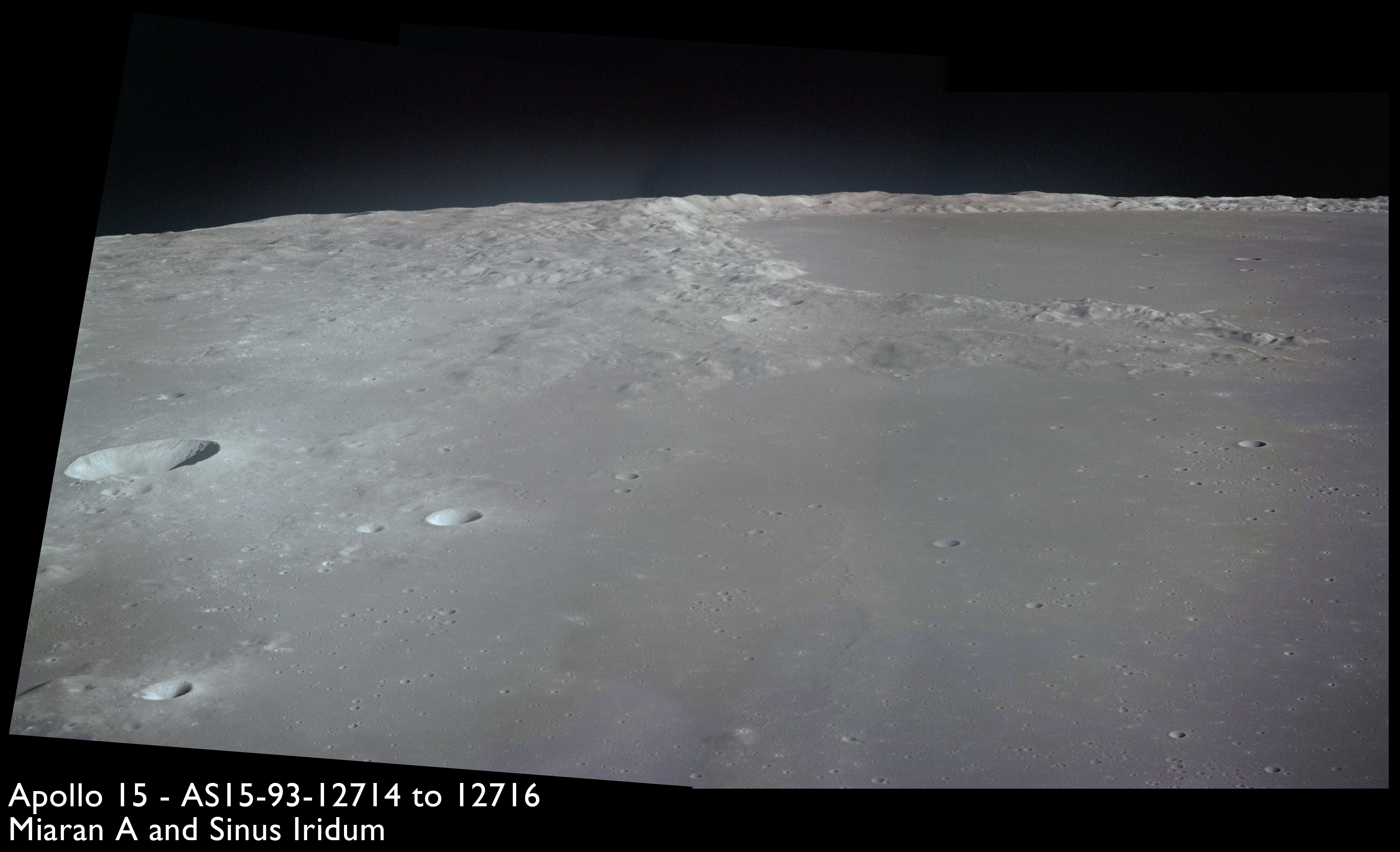 Composition of images AS15-93-12714 to 12716 showing western Sinus Iridum and crater Mairan A - Images by NASA/Johnson Space Center.