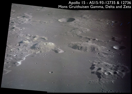 Composition of images AS15-93-12735 and 12736 showing Mons Gruithuisen Gamma, Delta and Zeta - Images by NASA/Johnson Space Center.
