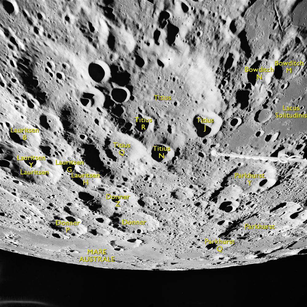 AS15-93-12701 - Craters Caroline Herschel V and Heraclides F - Image by NASA/Johnson Space Center.